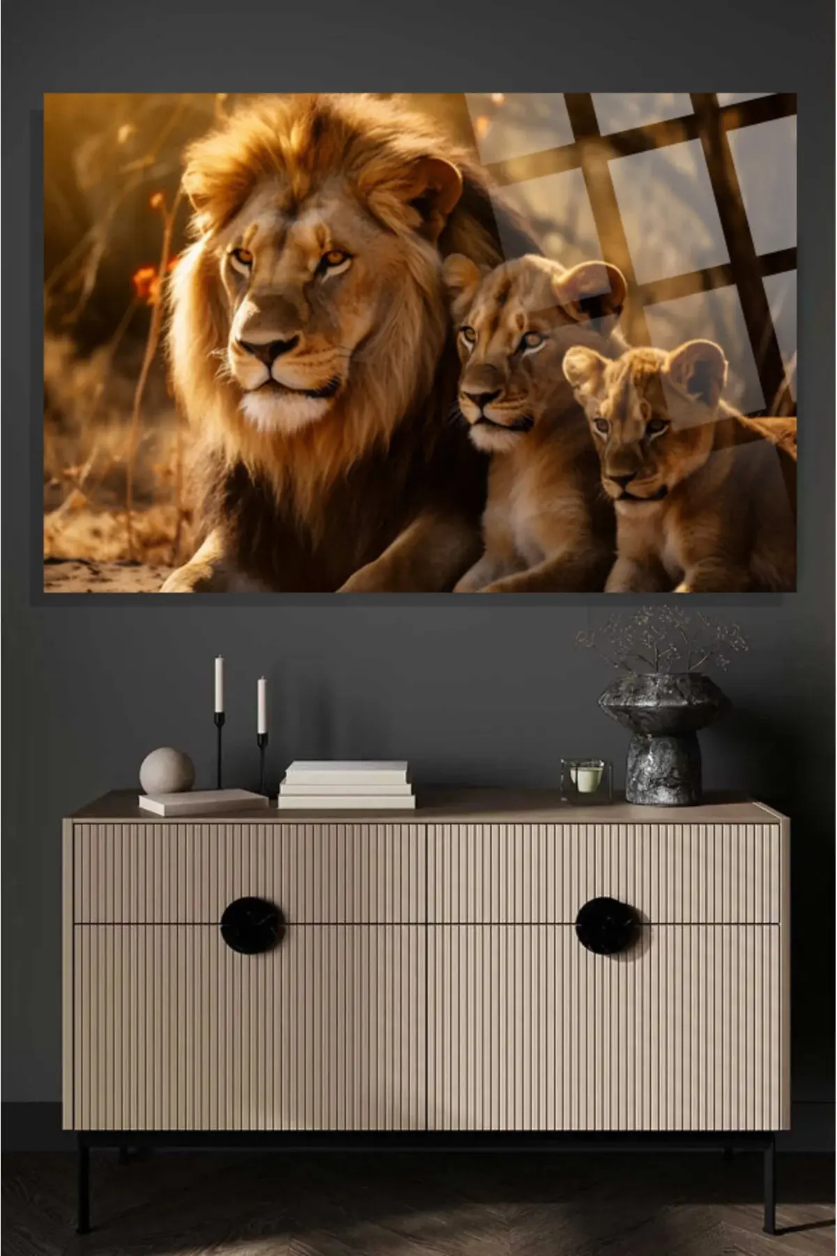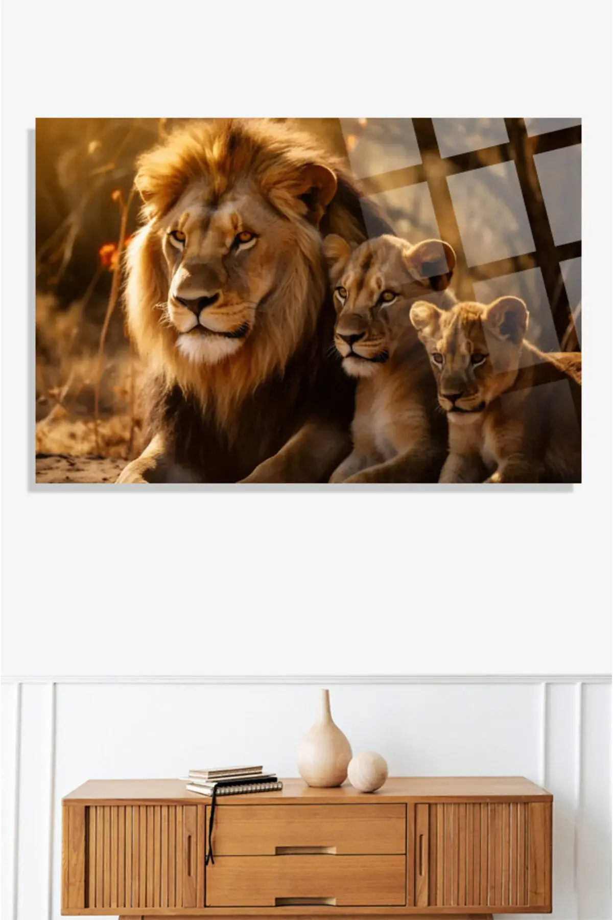 Aslan Ailesi Leo Family 4mm Kırılmaz Temperli Yüksek Çözünürlüklü Cam Tablo