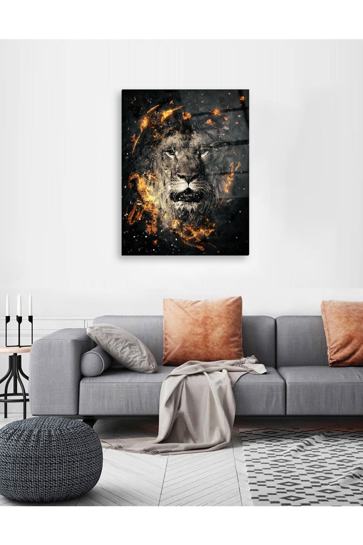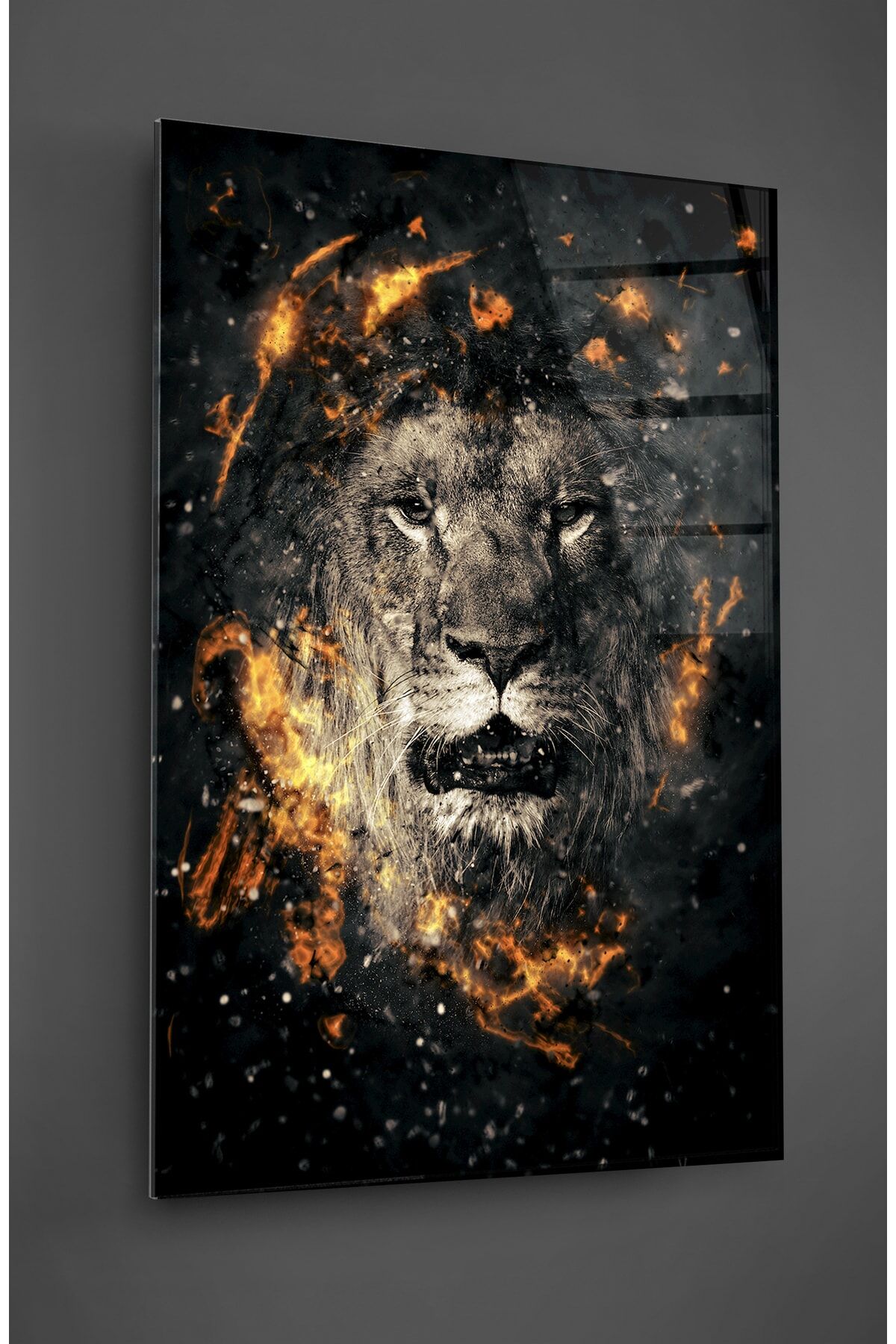 Aslan Ateş Cam Tablo Renkli