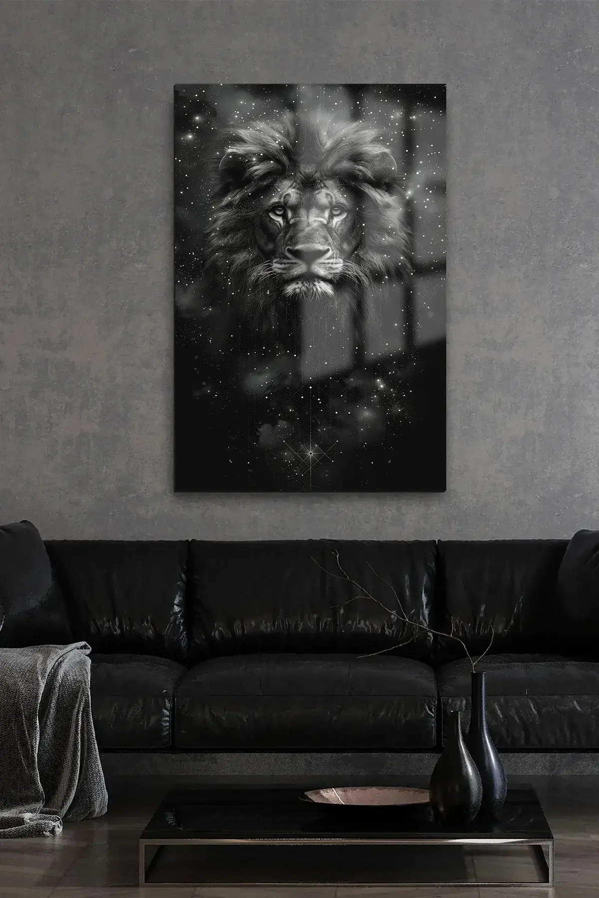 ASLAN BURCU TASARIM CAM TABLO EV HEDİYESİ İŞ YERİ HEDİYESİ KIRILMAZ LÜKS MODERN TABLO Siyah