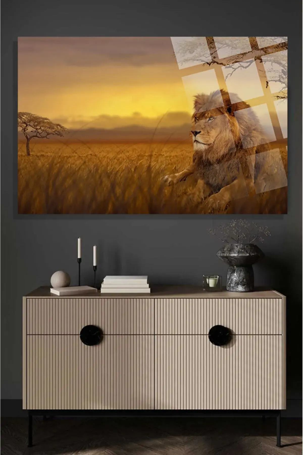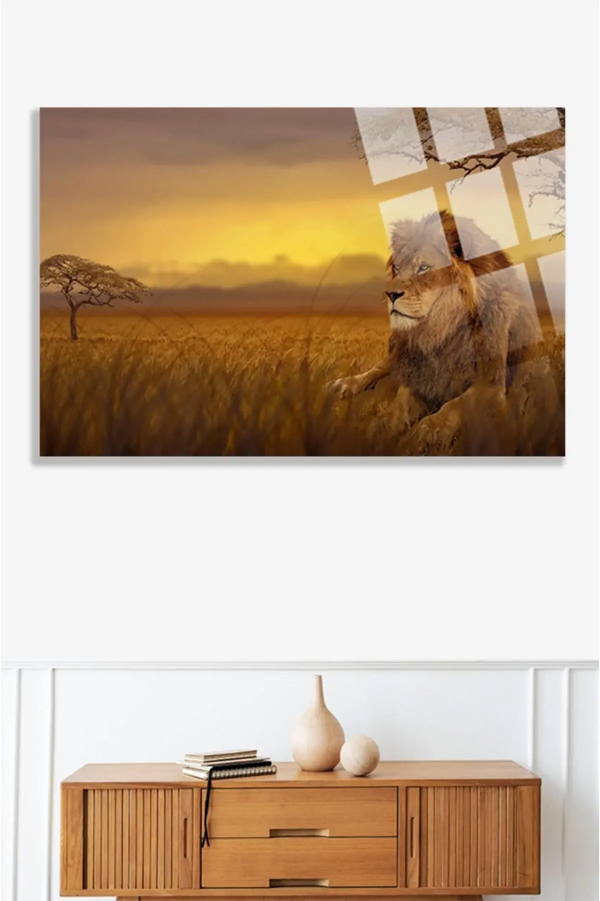 Aslan Hayvan Portre Uv Baskılı Kırılmaz Cam Tablo, Ev Ve Ofis Yüksek Çözünürlüklü 4mm Cam Tablo