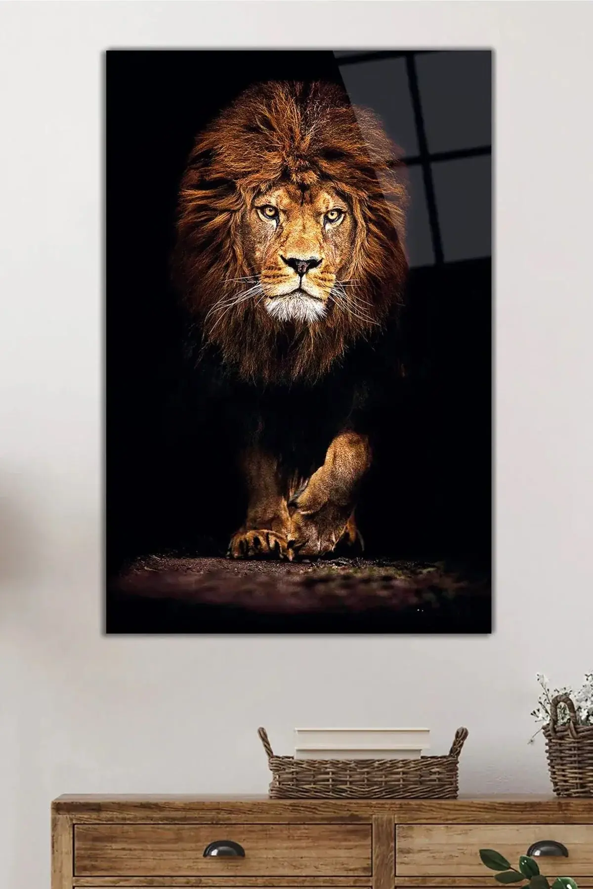 Aslan Hayvan Portresi Uv Baskılı Cam Tablo, Ev Ve Ofis Yüksek Çözünürlüklü 4mm Cam Tablo