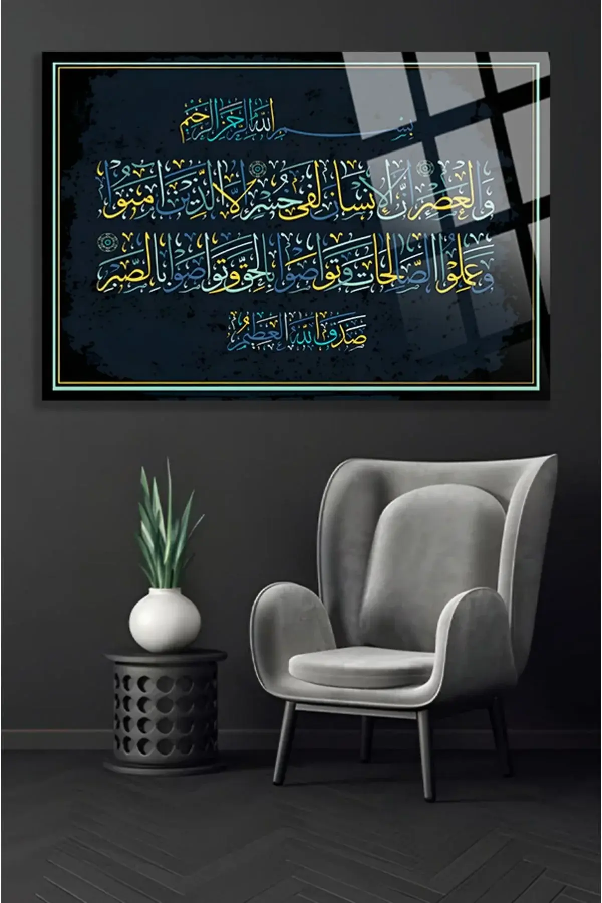 Asr Suresi Dini İslami Kırılmaz Cam Tablo, Ev Hediyesi Yüksek Çözünürlüklü 4mm Cam Tablo