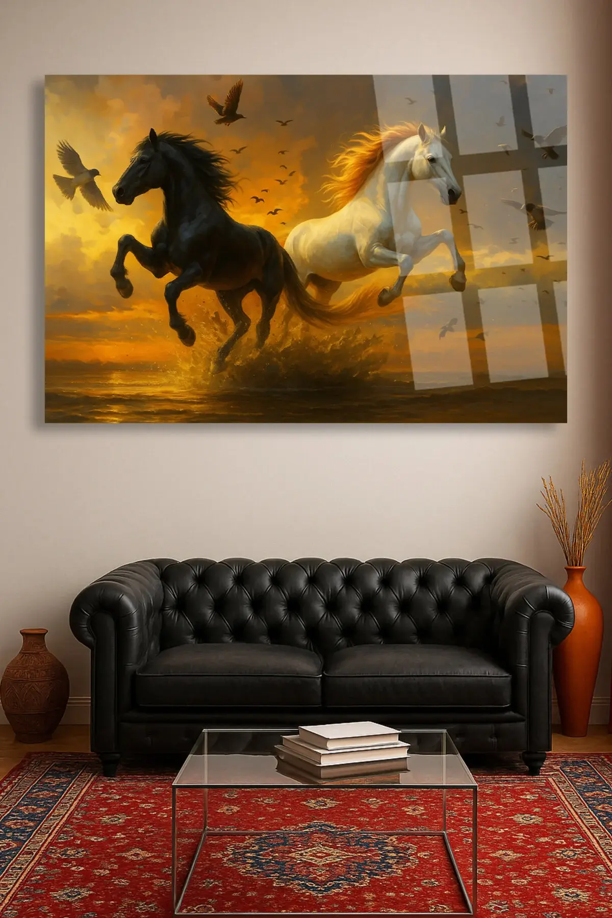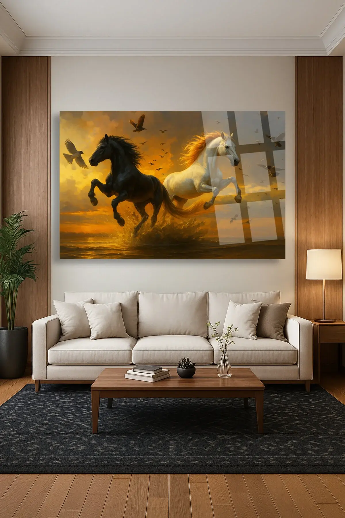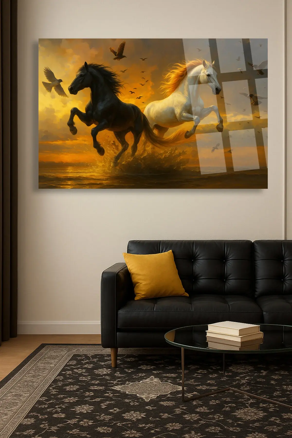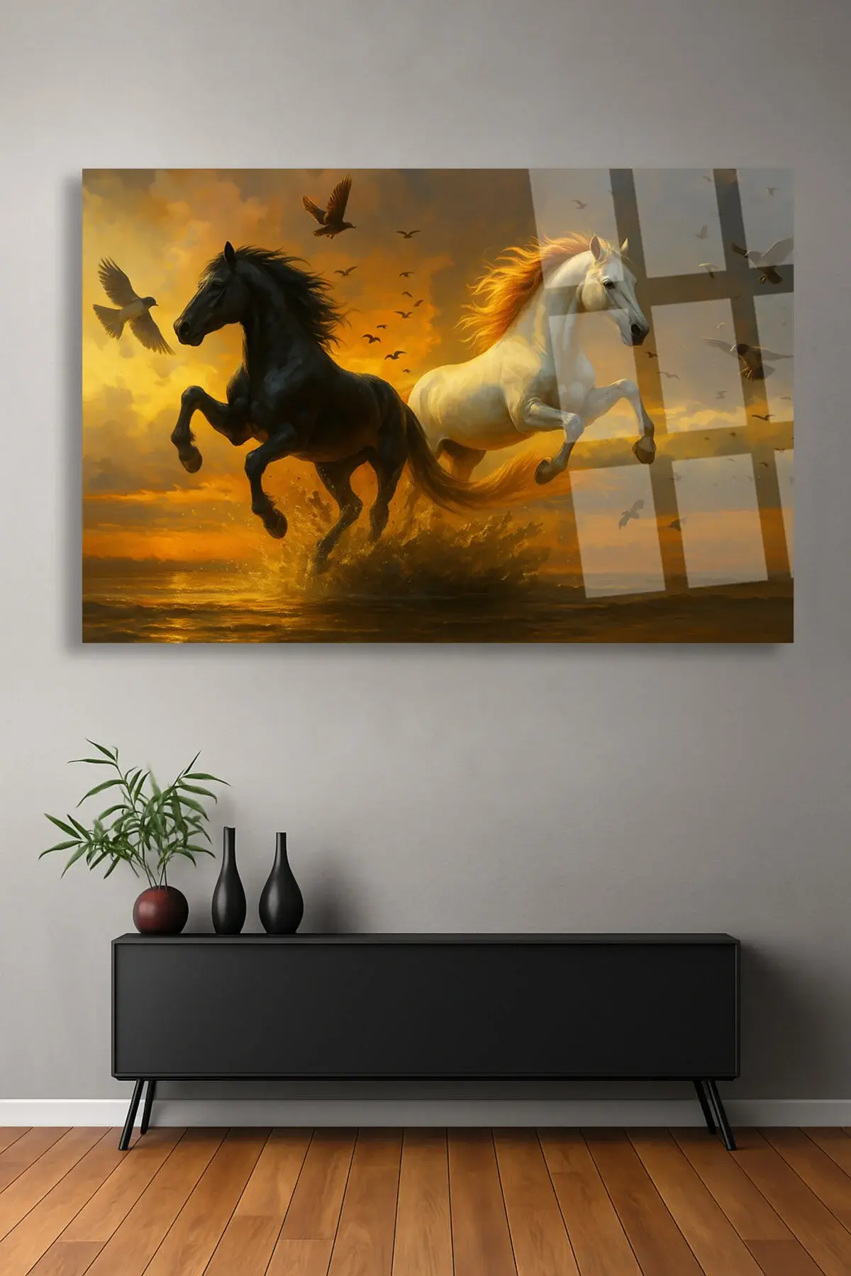 AT AİLESİ YATAY HARİKA TASARIM ULRTA CANLI RENKLER KIRILMAZ LÜKS MODERN CAM TABLO EV HEDİYESİ Kahverengi
