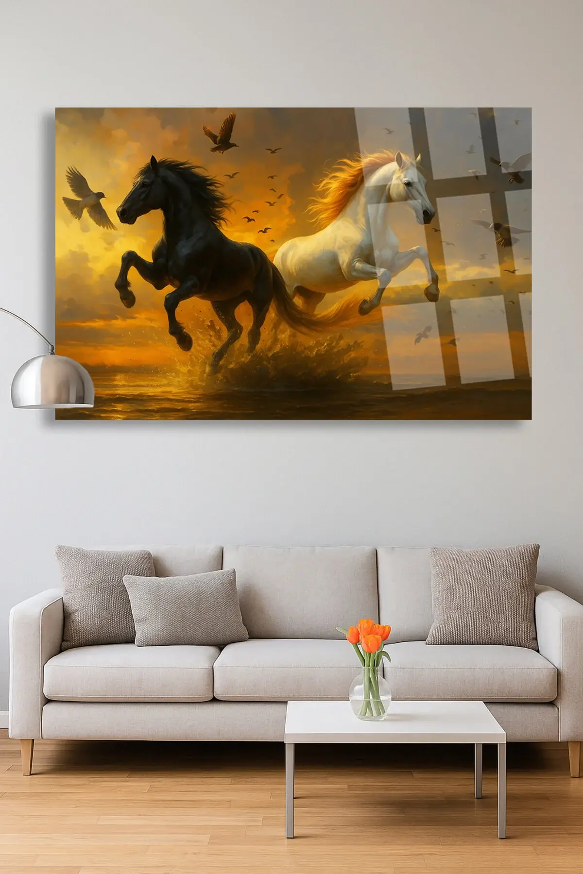 Cam tablolarımız 4 mm kalınlığında temper işlemi (ısıl işlem) görmüştür.; Kenarları rodajlanmış (kesiciliği giderilmiş) yüksek kaliteli düz camlardan oluşmaktadır.; Normal camlara göre kırılmaya 10 kat daha dayanıklıdır.; Gönderilirken özel koruma aparat ve ambalajları ile gönderilmektedir.; ; Tarafımızca hazırlanan özel tasarımlar doğrudan cam yüzeyine uv baskı tekniğiyle yüksek çözünürlüklü makinalarımız tarafından uygulanır.; Bu nedenle yüksek kaliteli,mükemmel bir görüntü derinliği sağlar.; Herhangi bir medyaya(folyo,kağıt v.; b.; ) baskı yapılmış görselin cam yüzeyine yapıştırılması şeklinde değildir.; Görsellerimiz camın arka yüzeyine doğrudan uv cam boyası kullanılarak basılır ve özel koruma boyası ile arka yüzey kapatılır.; Baskı cam ile arka koruma boyası arasında kalır.; Tasarımları ön yüzeyden camın parlaklığı ve şıklığı ile görürsünüz.; Cam tablolar zamanla solmazlar ve renkler canlılığını hiç kaybetmez.; ; Özel tasarım cam tablolar duvar dekorasyonunda yeni bir sayfa açmaktadır.; Özellikle ev ve ofis dekorasyonunda büyük tablolar duvarlarda çok şık bir görünüm sağlarlar.; Dekoratif ve zarif tablolar ev ve ofis duvarlarınıza estetik bir hava katar.; ; Tablolarımız sizler için özel olarak tasarlanmıştır.; ; Temizliği son derece kolay olan cam tablolarımızı,herhangi bir kimyasal ürünle veya nemli bez ile gönül rahatlığıyla silebilirsiniz.; Özel askı aparatı sayesinde ürünlerimizin duvardan kazara düşme olasılığı çok düşüktür.; Tek çivi ile kolayca duvara monte edebilirsiniz.; Ürün asıldığında duvardan 2 cm önde durmaktadır.; ; Kargo esnasında yaşanacak her türlü olumsuzluk(kırılma v.; b.; ) firmamıza aittir.; Kırılma olasılığı %1 in altındadır.; Özel çerçeveli kargo metodumuz Türkiyede yalnızca tarafımıza aittir bu sayede kırılma yaşanmamaktadır.; En ufak bir sorunda ise sizlere sağlam şekilde ulaşıncaya kadar tekrar gönderilir.; ; Üretici firma olarak özel tasarımlarıyla camı birleştirerek yaşam alanlarınıza şık bir görünüm ve modern bir hava katmayı amaç edinilmiştir.Kişiye özel Tablo seçeneğimiz de mevcuttur kişiye özel cam tablolalar için iletişime geçiniz.