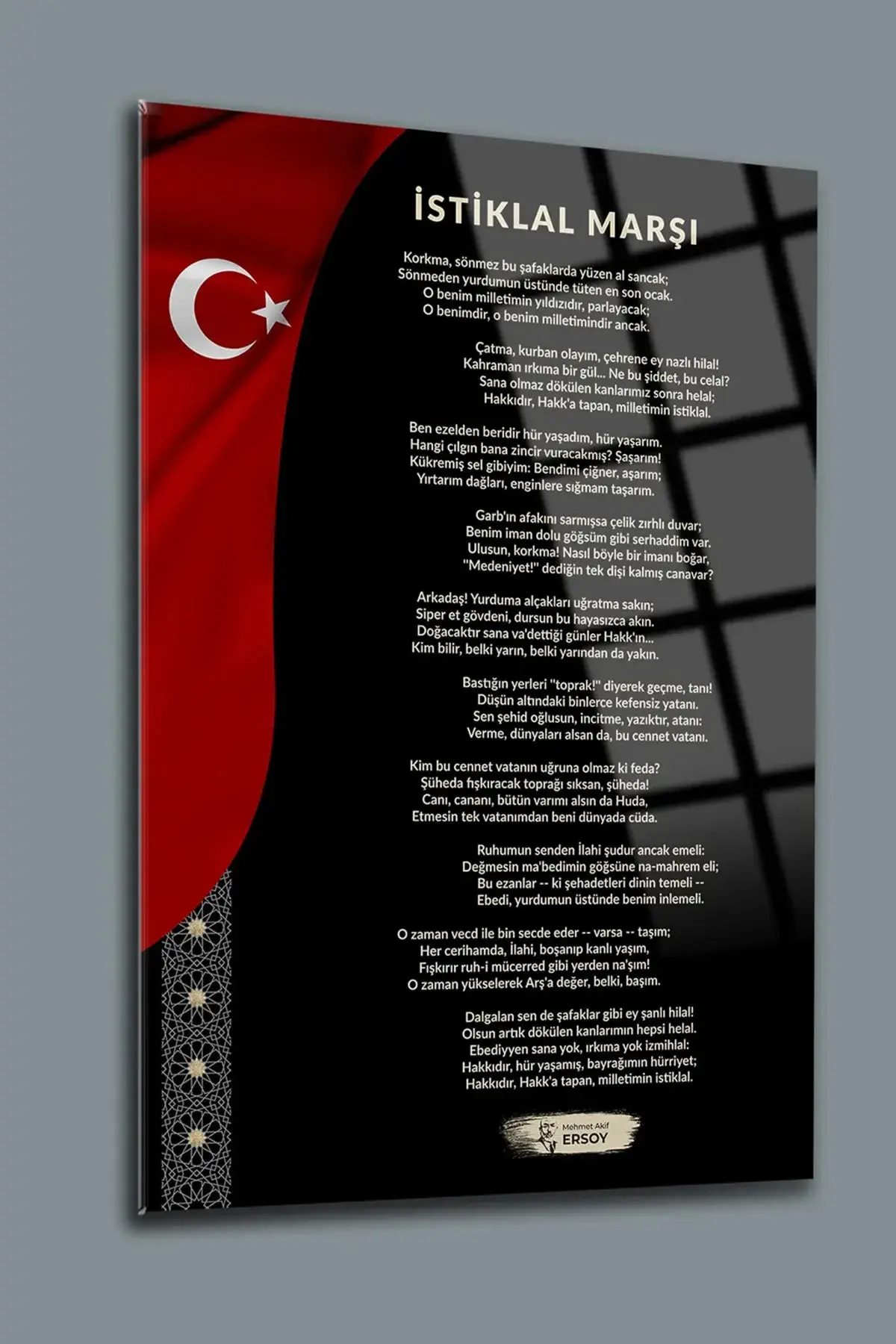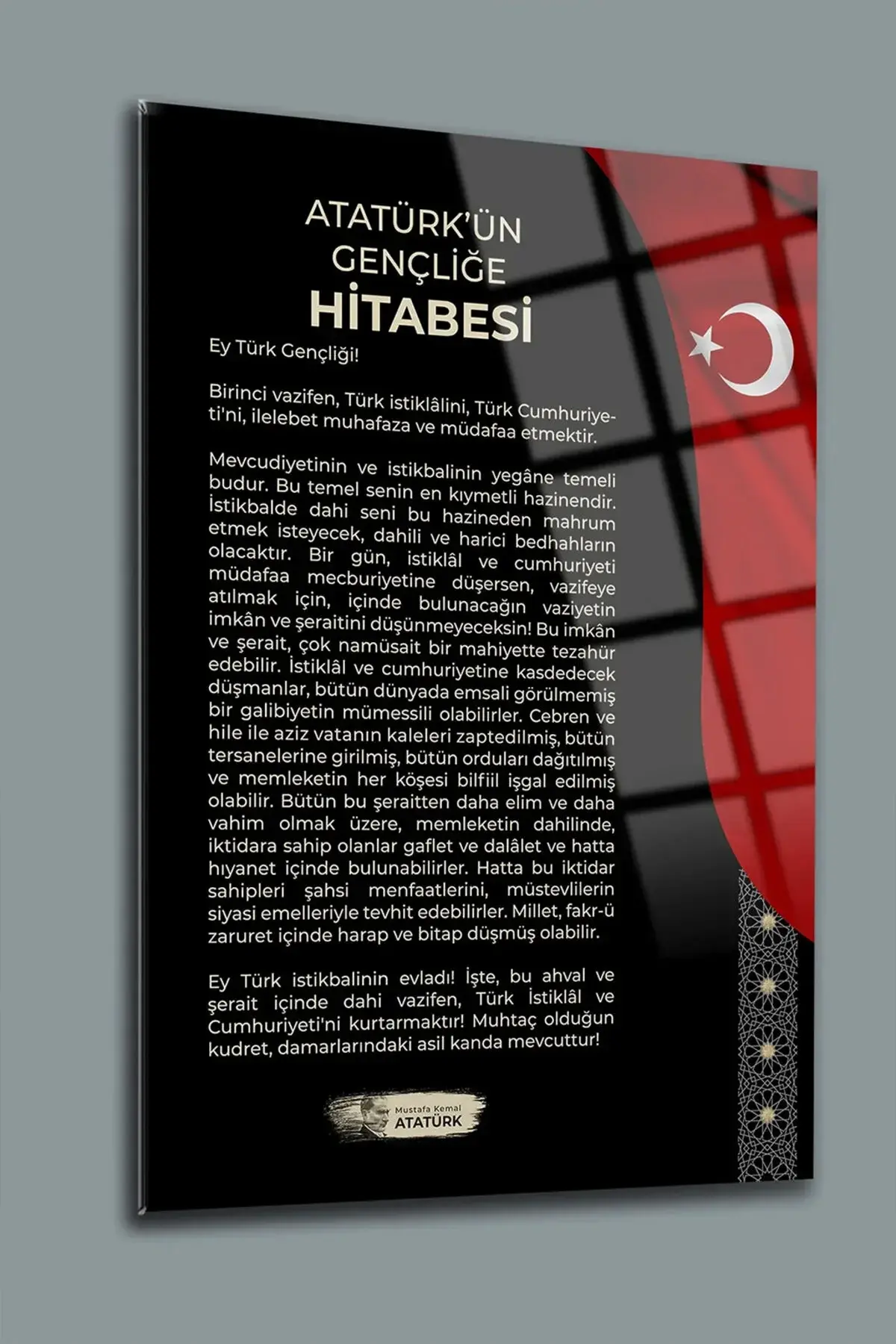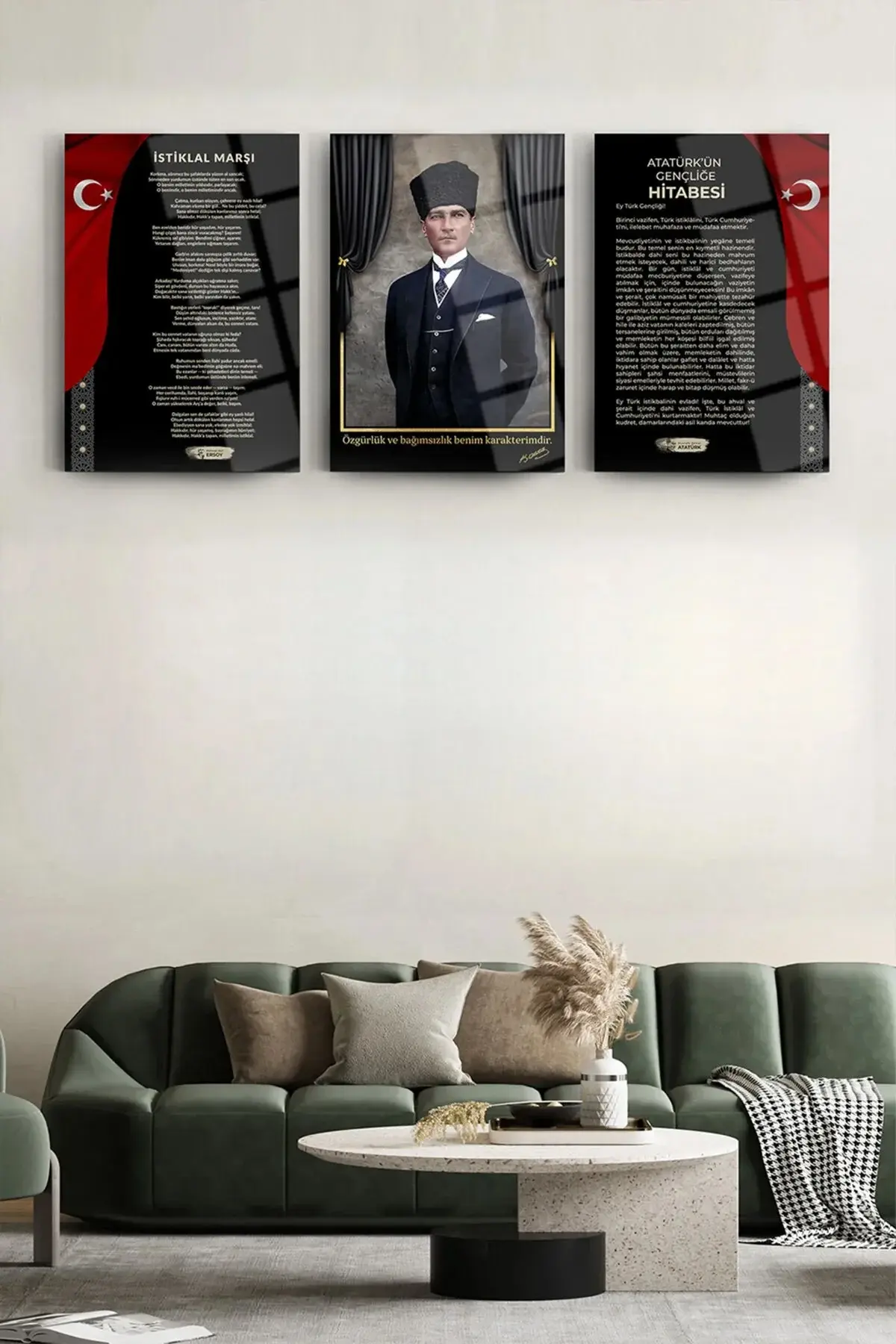 Atatürk 3'lü Set Cam Tablo- Atatürk Tablosu - İstiklal Marşı Tablosu - Gençliğe Hitabe Tablosu SİYAH