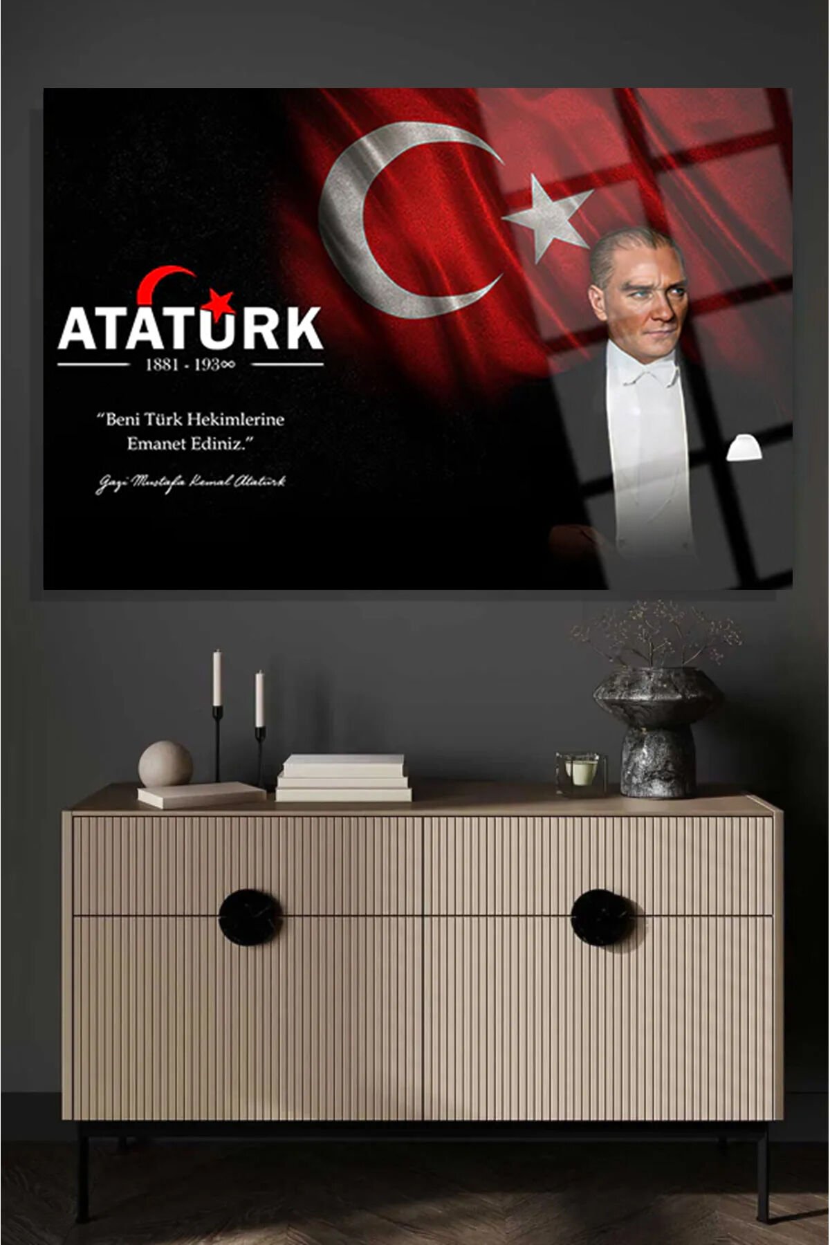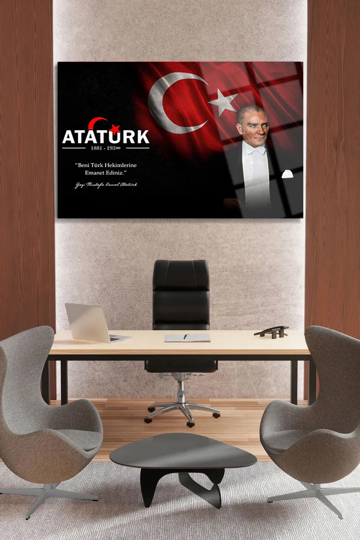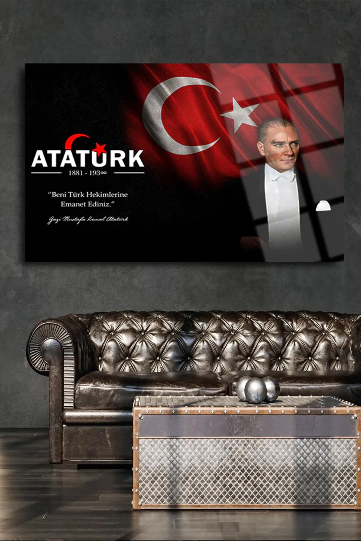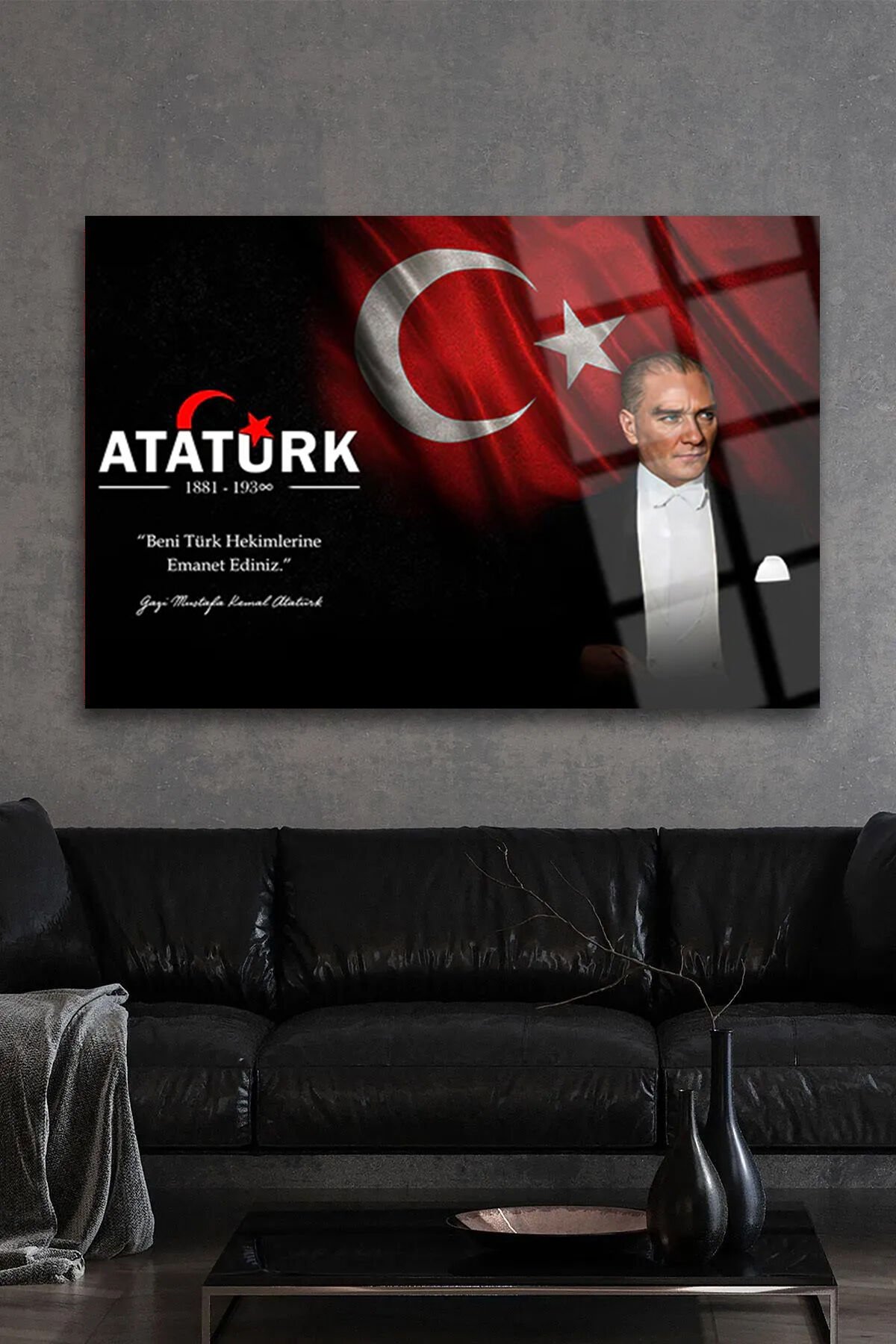 ATATÜRK BENİ TÜRK HEKİMLERİNE EMANET EDİNİZ KIRILMAZ CAM TABLO DOKTORA HEDİYE DOKTORLAR İÇİN TABLO Siyah