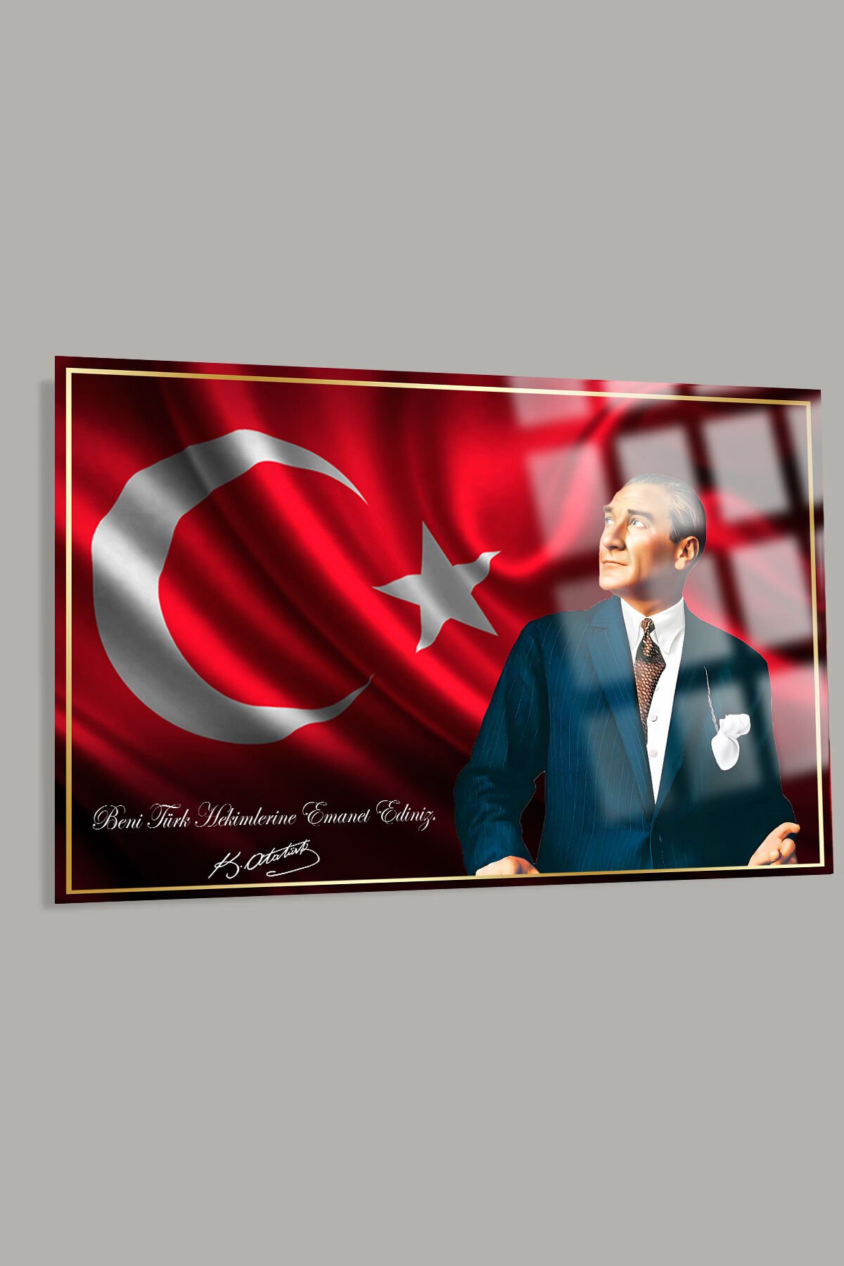ATATÜRK BENİ TÜRK HEKİMLERİNE EMANET EDİNİZ KIRILMAZ CAM TABLO DOKTORA HEDİYE DOKTORLAR İÇİN TABLO Kırmızı