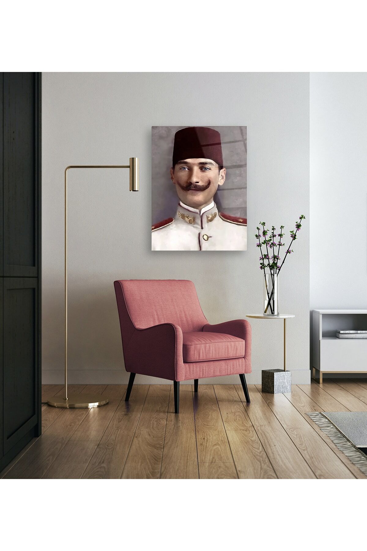 Tek parça halinde sunulan bu Atatürk eski cam tablo, kolay ve pratik bir şekilde sergilenmek üzere tasarlanmıştır; Çerçeveli yapısı ile modern ve şık bir görünüm sunar, mekanınıza estetik bir dokunuş katar; Yüksek kaliteli cam materyali sayesinde uzun ömürlü kullanım ve net görüntüler sağlar;