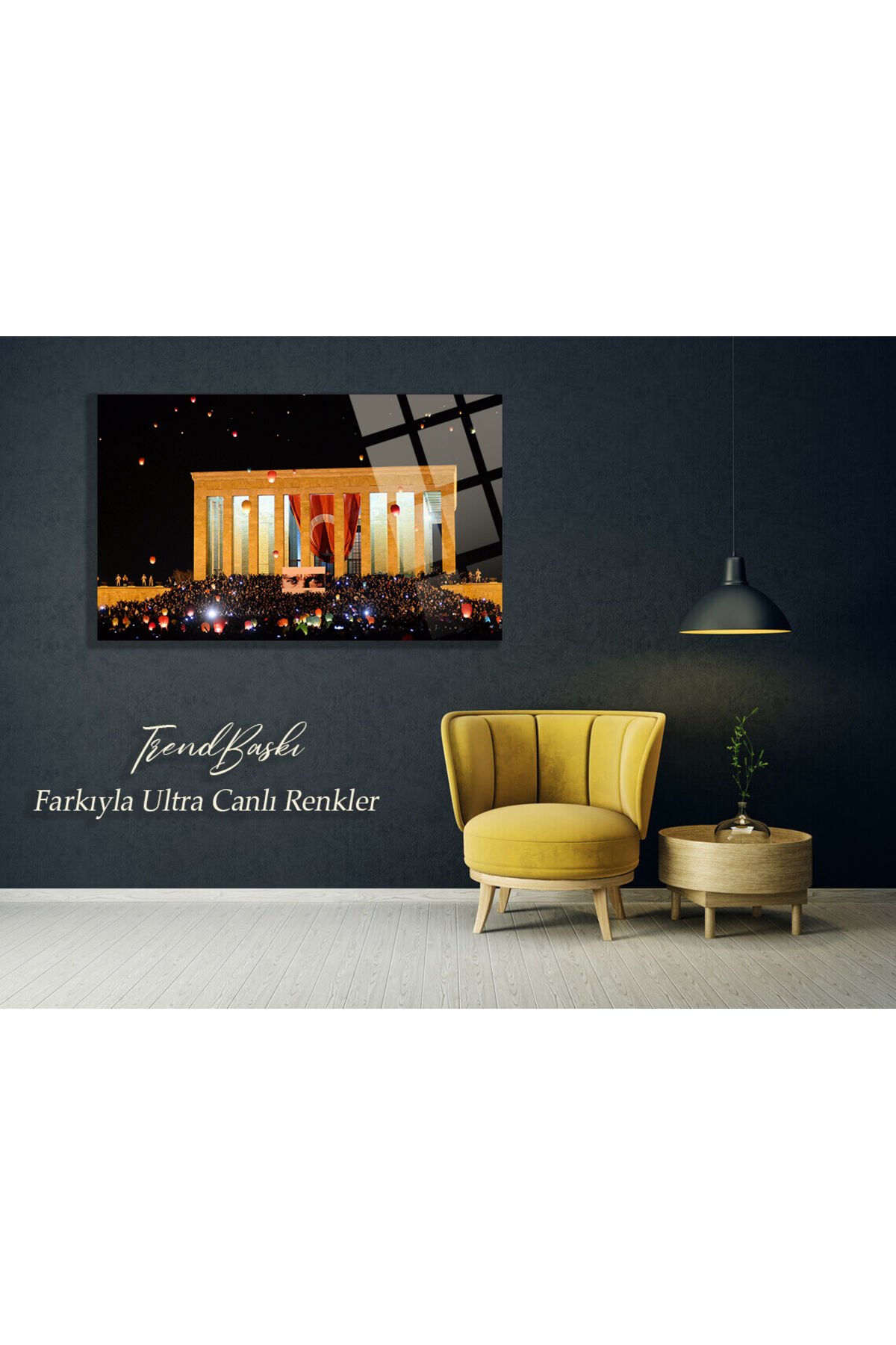 Atatürk Gece Anıtkabir 4mm Kırılmaz Temperli Yüksek Çözünürlüklü Cam Tablo siyah 3