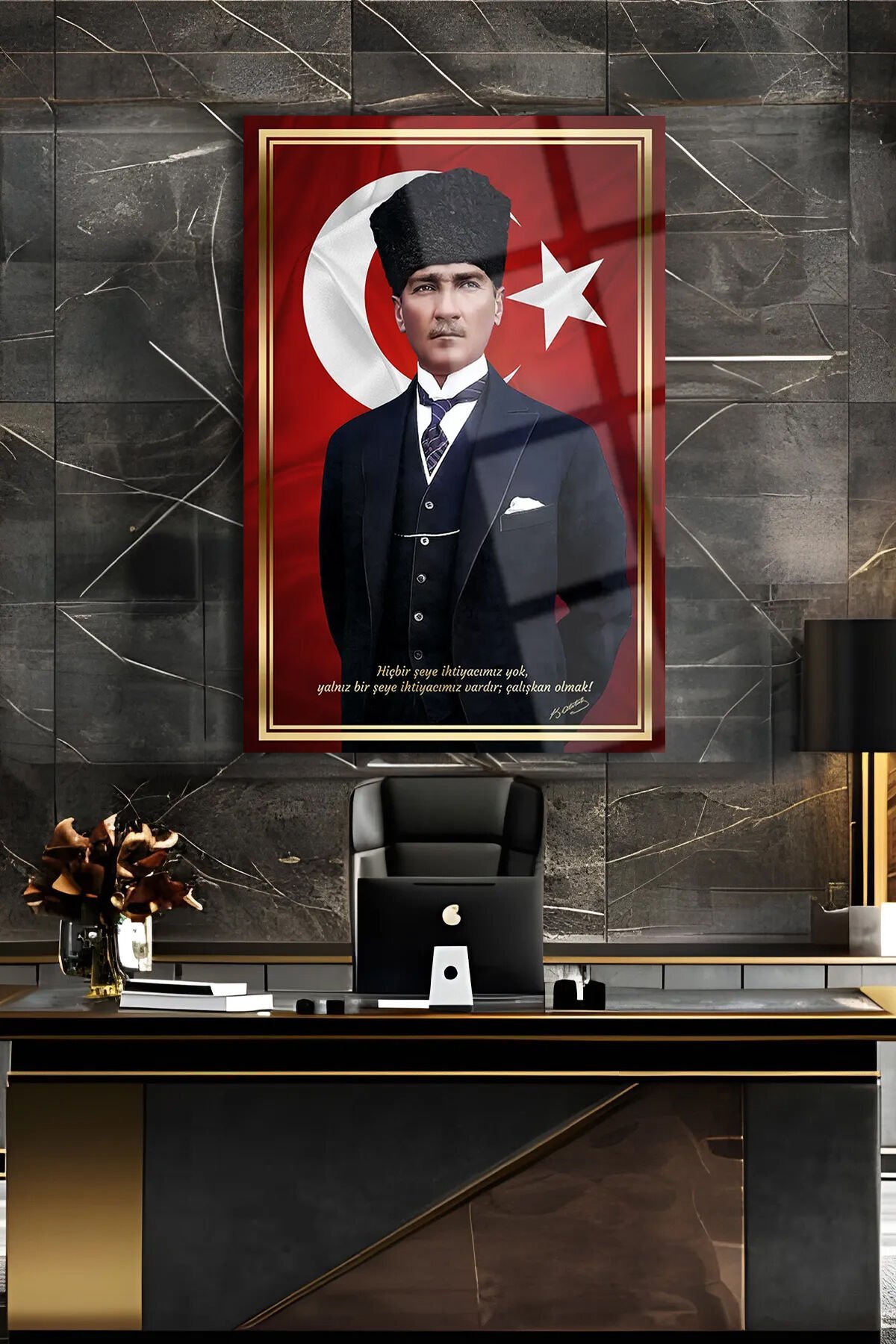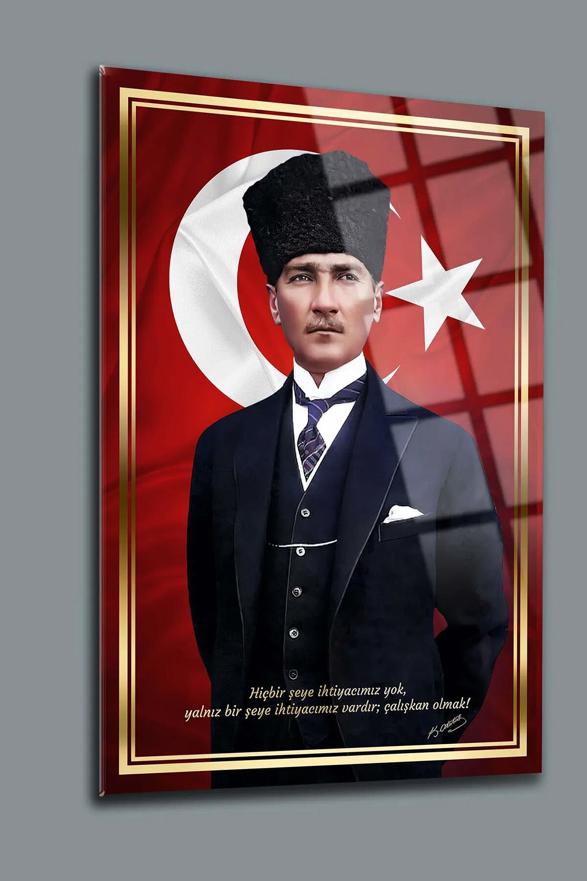 ATATÜRK KIRILMAZ LÜKS CAM TABLO OFİS İÇİN OFİS HEDİYESİ İŞ YERİ HEDİYELİK TABLO