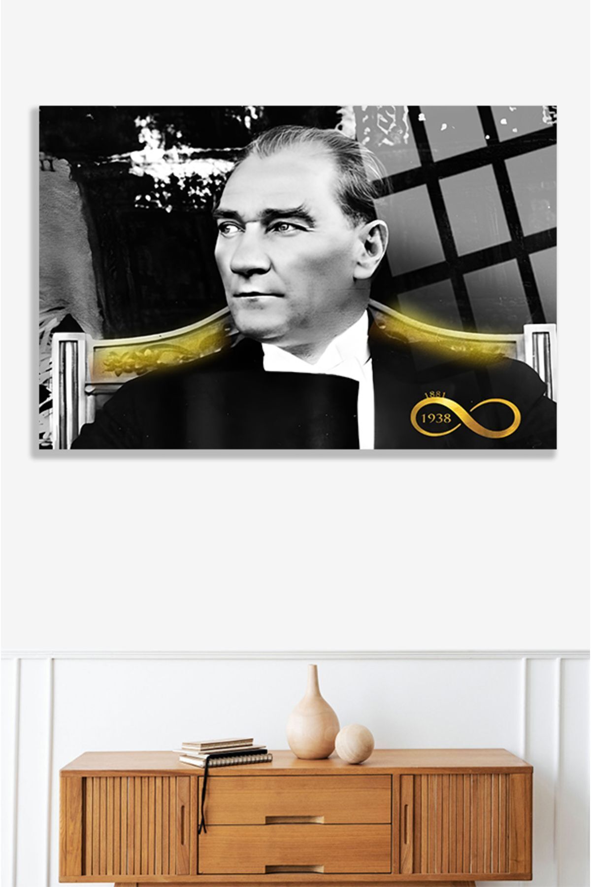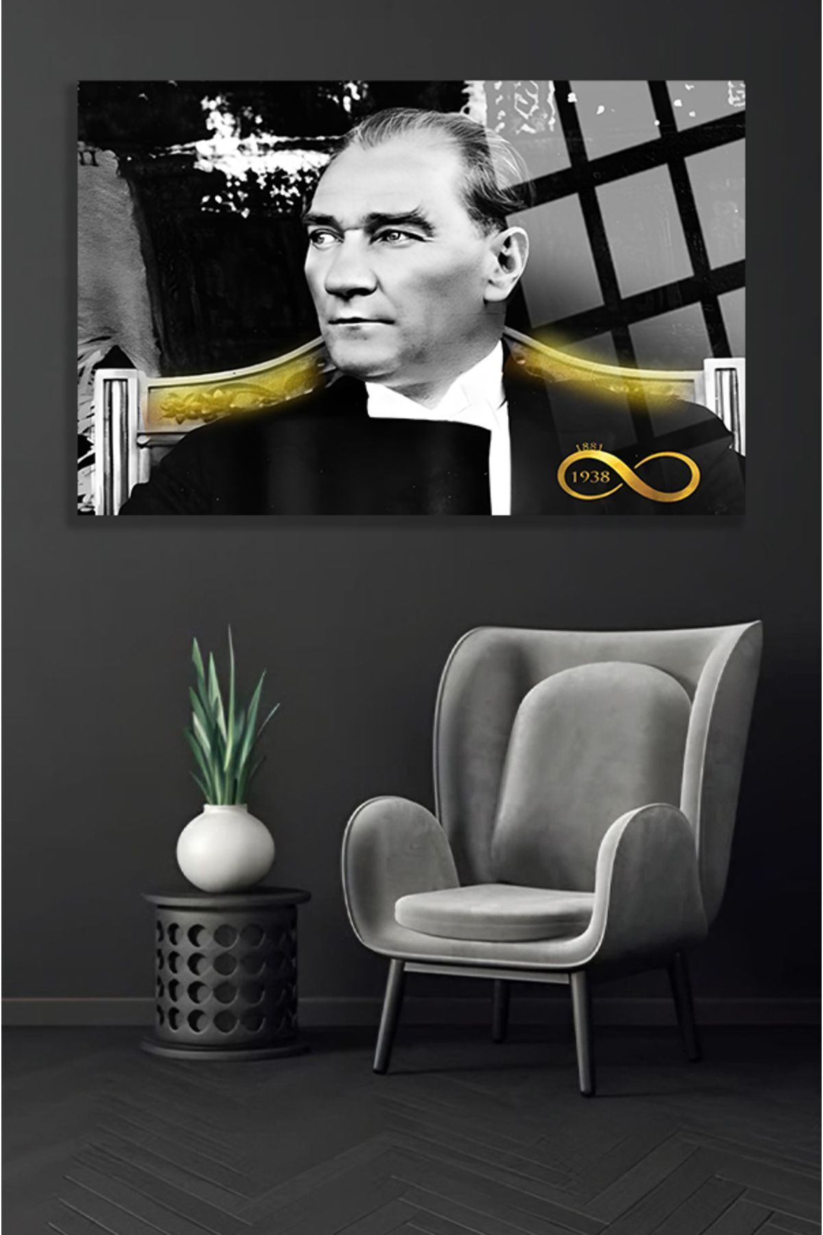 Atatürk Lüks Kırılmaz Cam Tablo, Ev Ve Ofis Hediyesi Yüksek Çözünürlüklü 4mm Lüks Tablo siyah 772