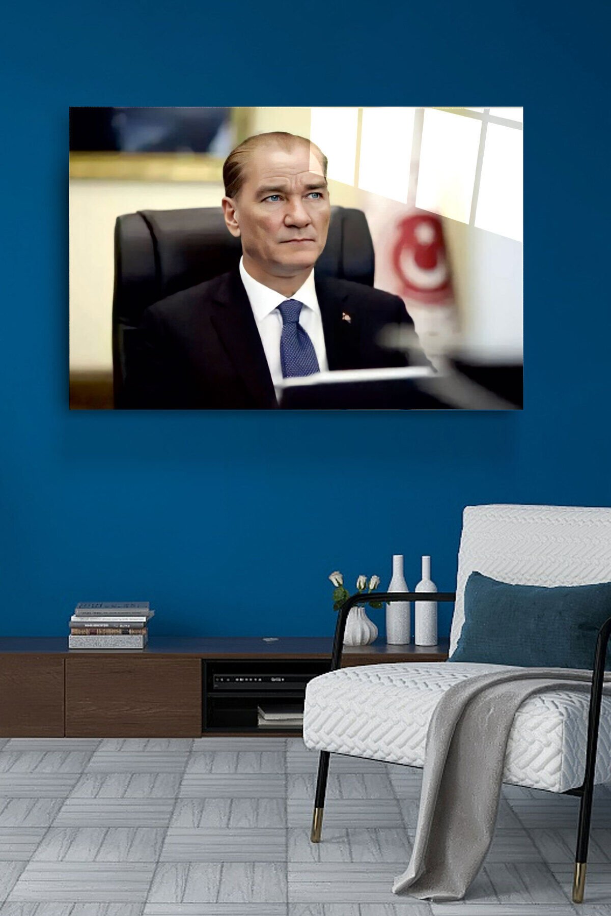 Atatürk Portresi - Yapay Zeka Tasarımlı Cam Tablo, Dekoratif Cam Tablo