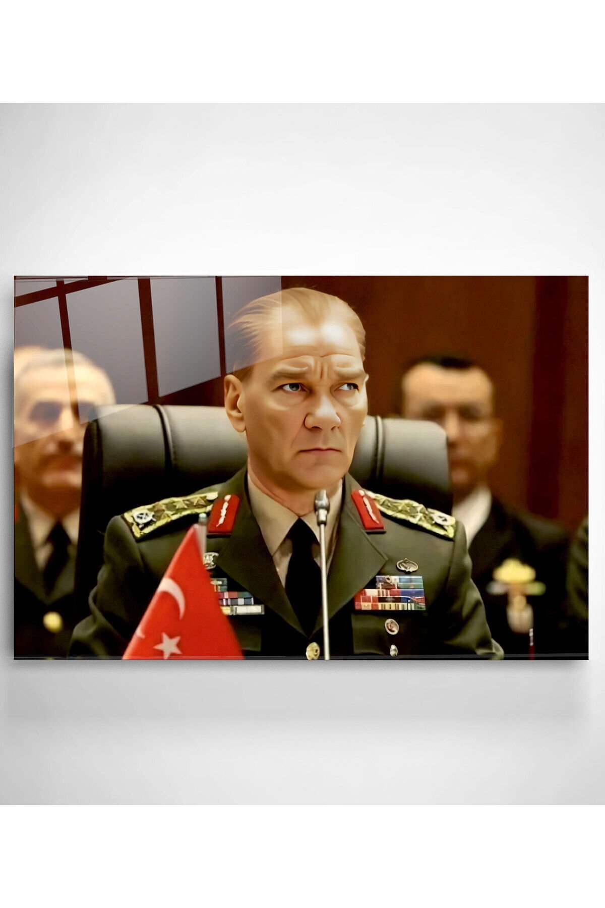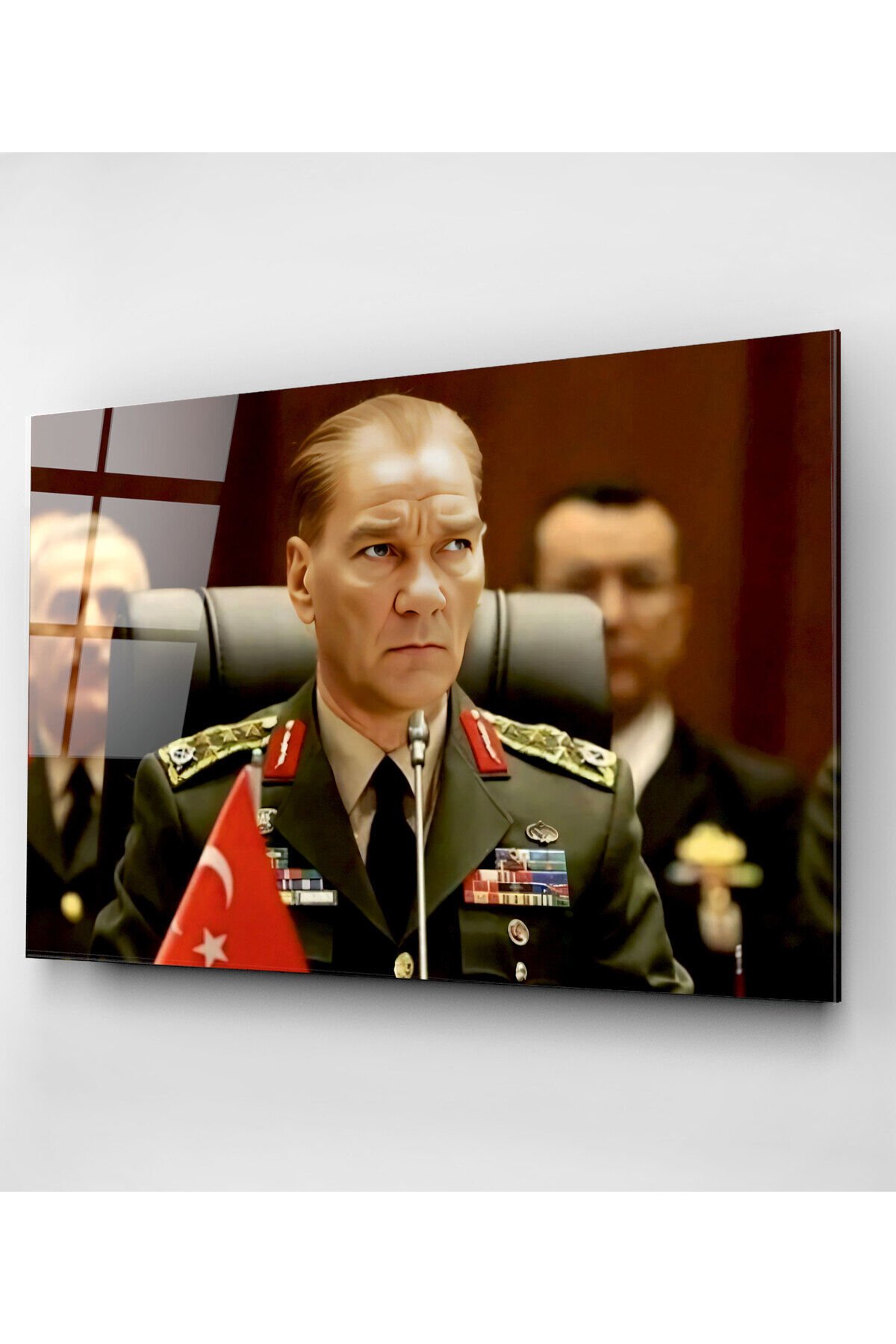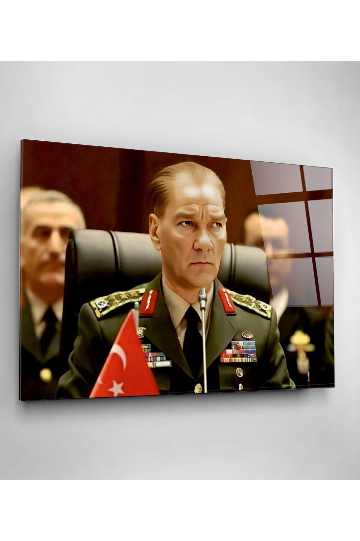 Atatürk Portresi - Yapay Zeka Tasarımlı Cam Tablo, Dekoratif Cam Tablo HNR01047