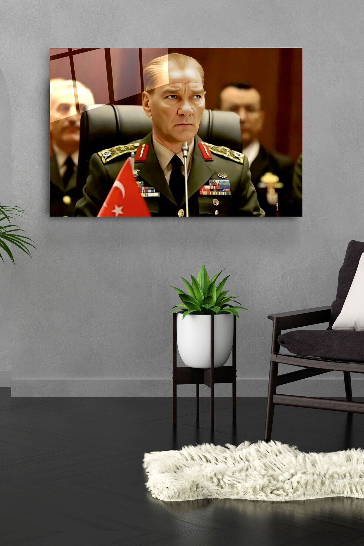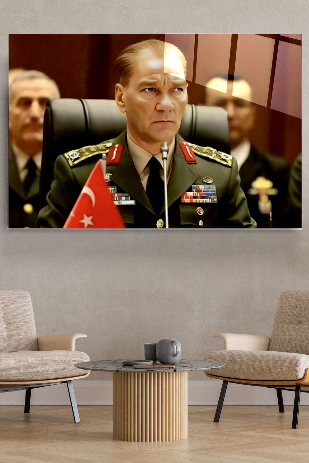 Atatürk Portresi - Yapay Zeka Tasarımlı Cam Tablo, Dekoratif Cam Tablo