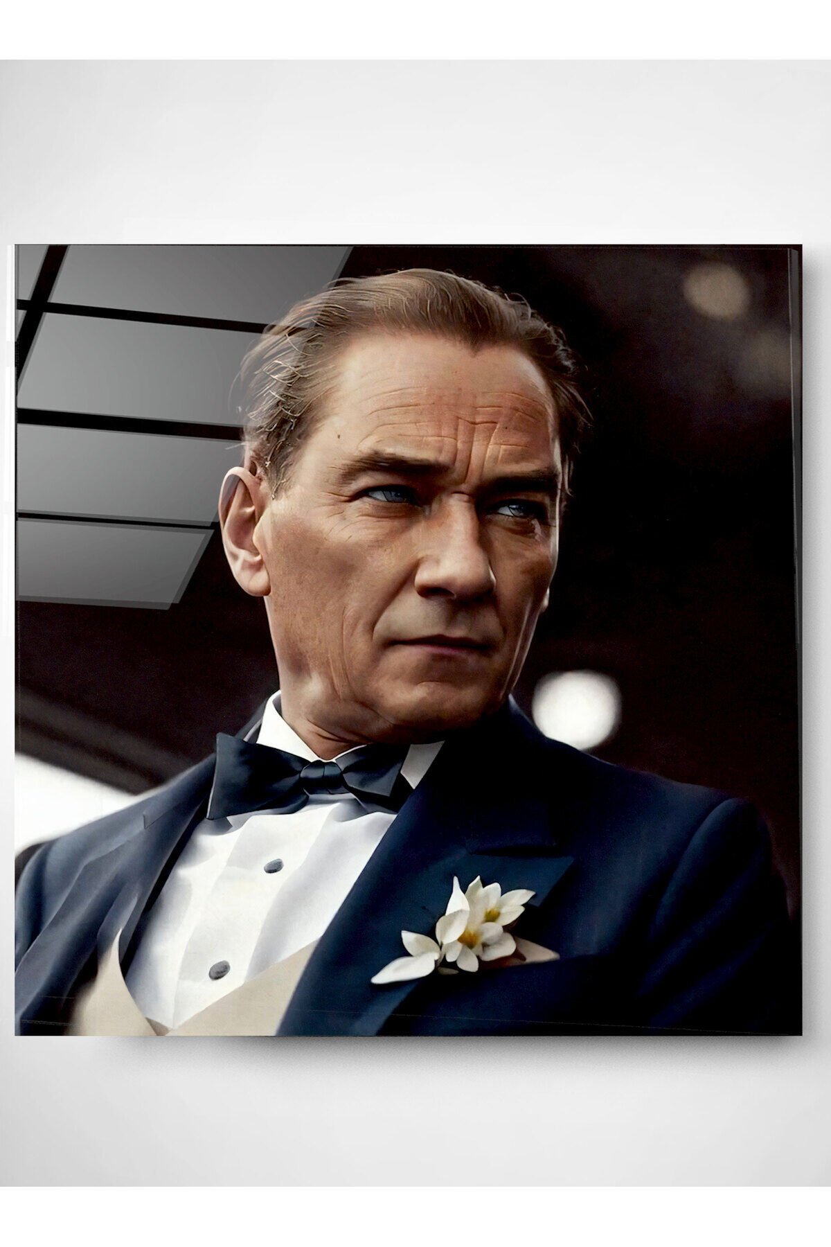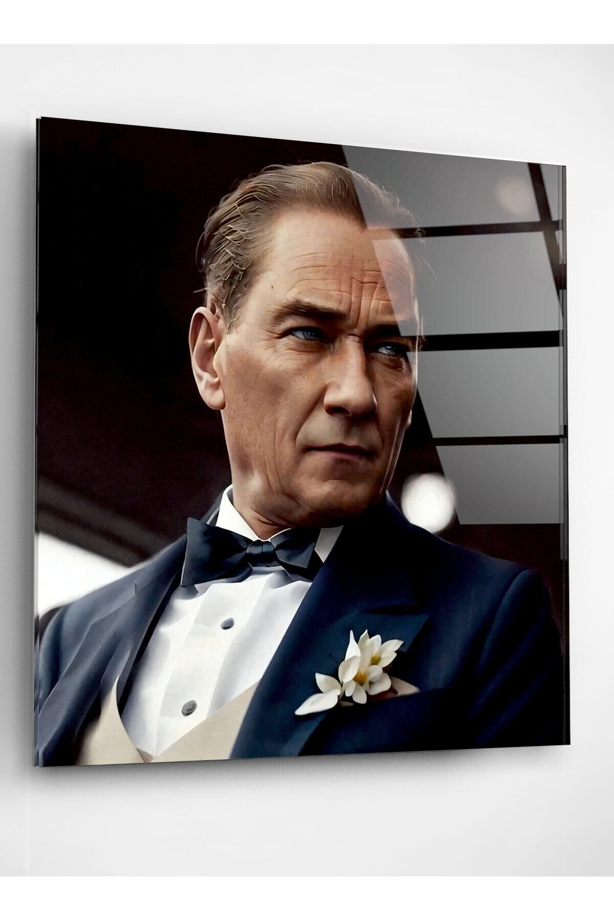 Atatürk Portresi - Yapay Zeka Tasarımlı Cam Tablo, Dekoratif Cam Tablo HNR01048