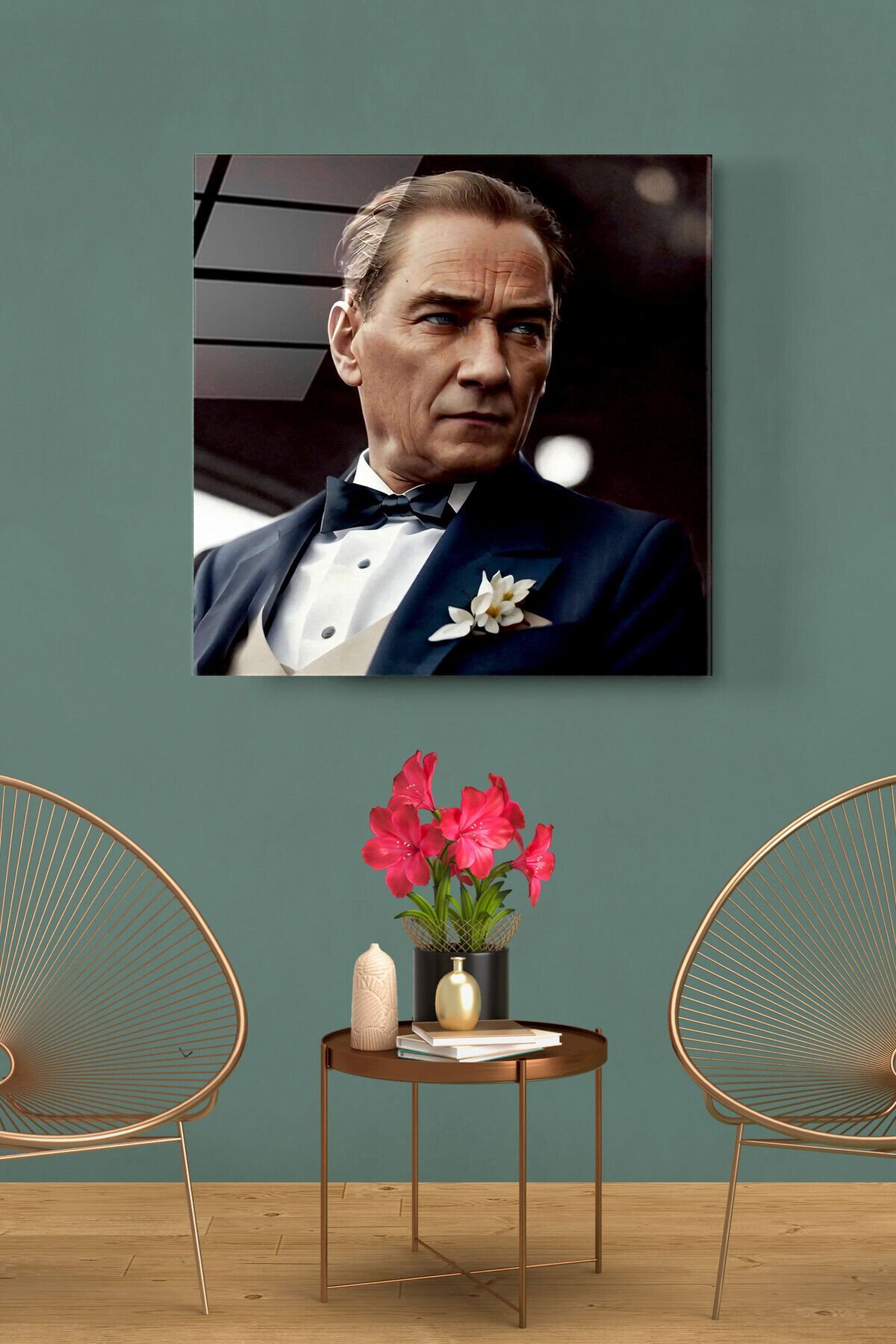 Atatürk Portresi - Yapay Zeka Tasarımlı Cam Tablo, Dekoratif Cam Tablo