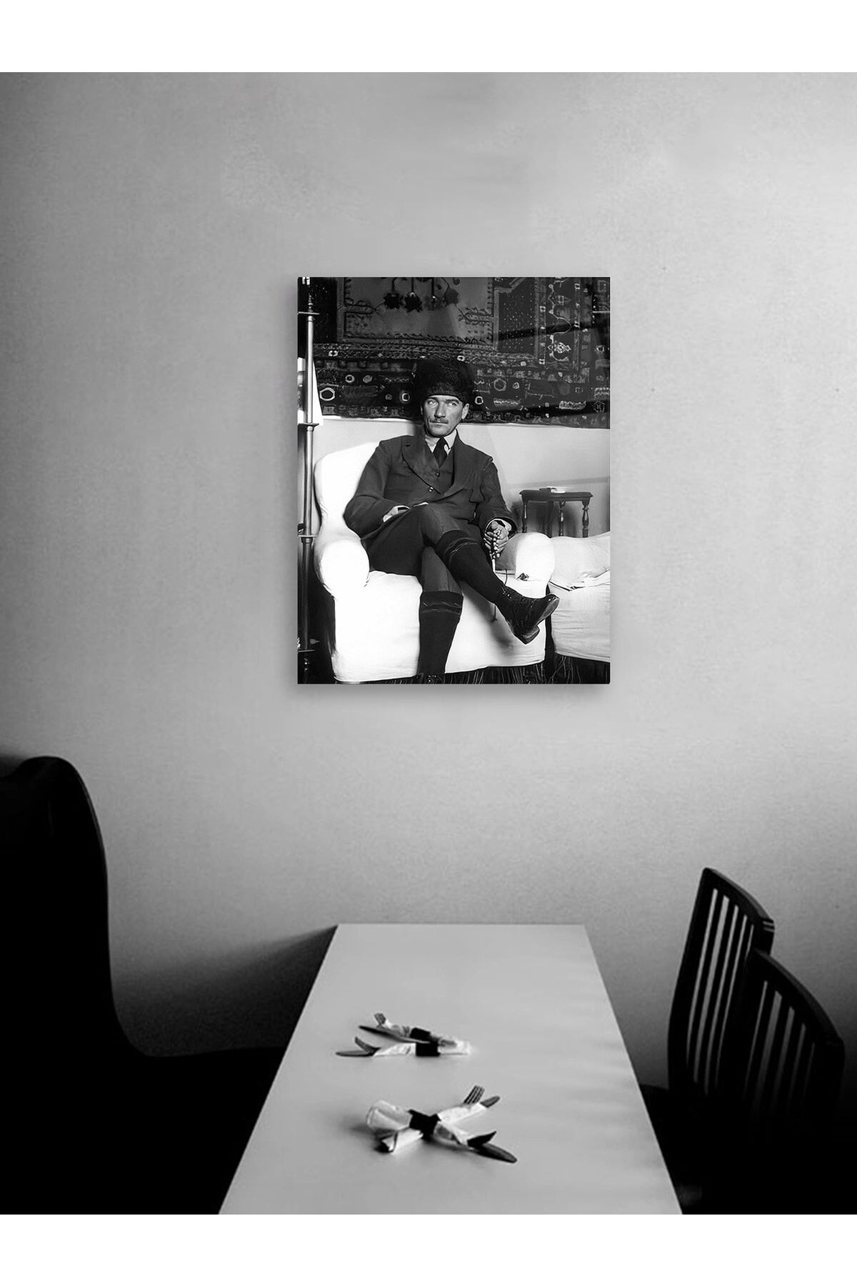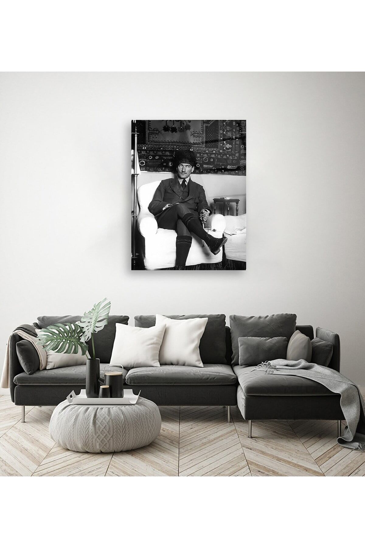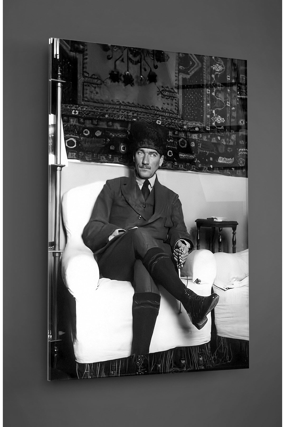 Atatürk Siyah Beyaz Cam Tablo Renkli