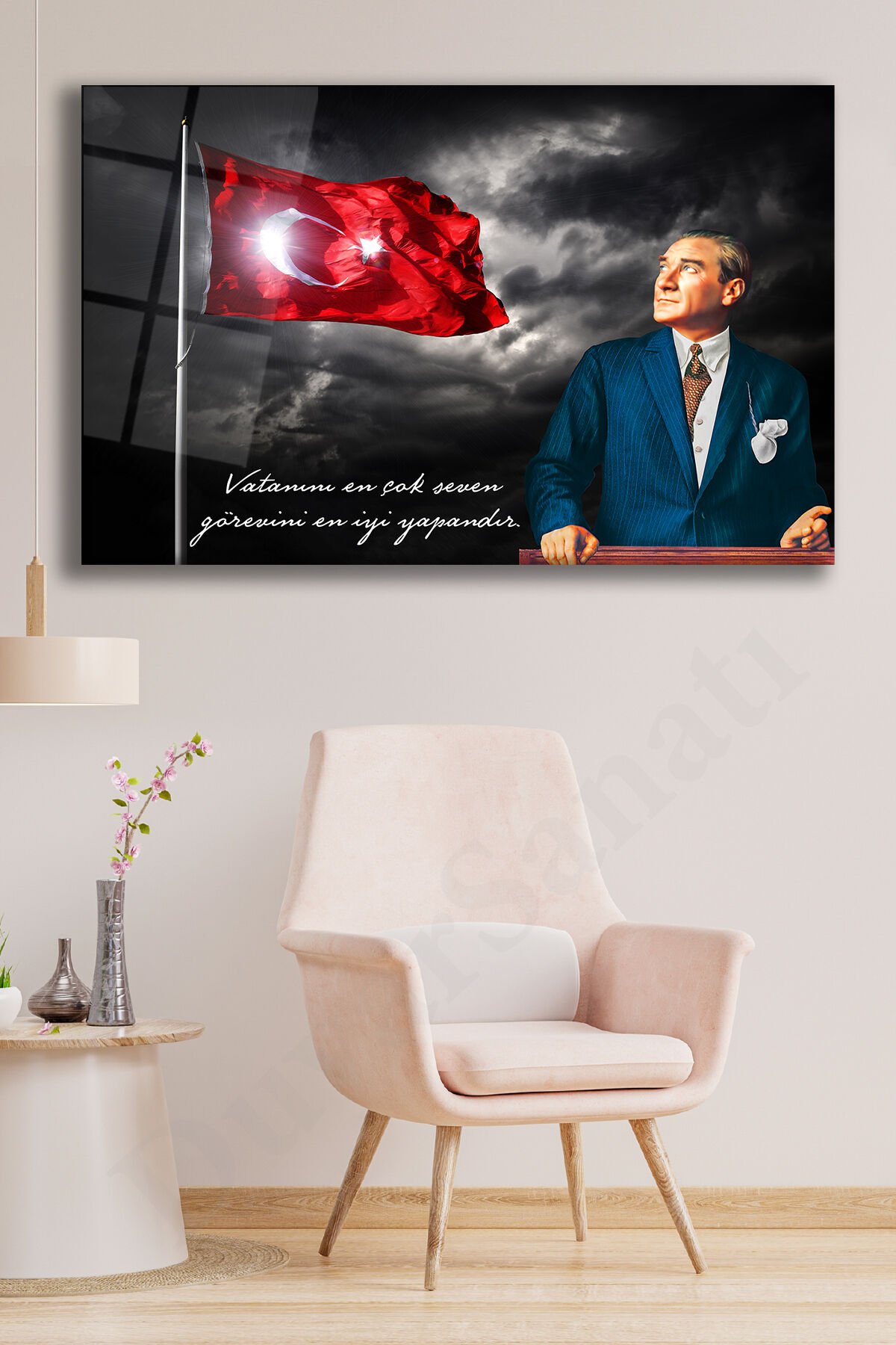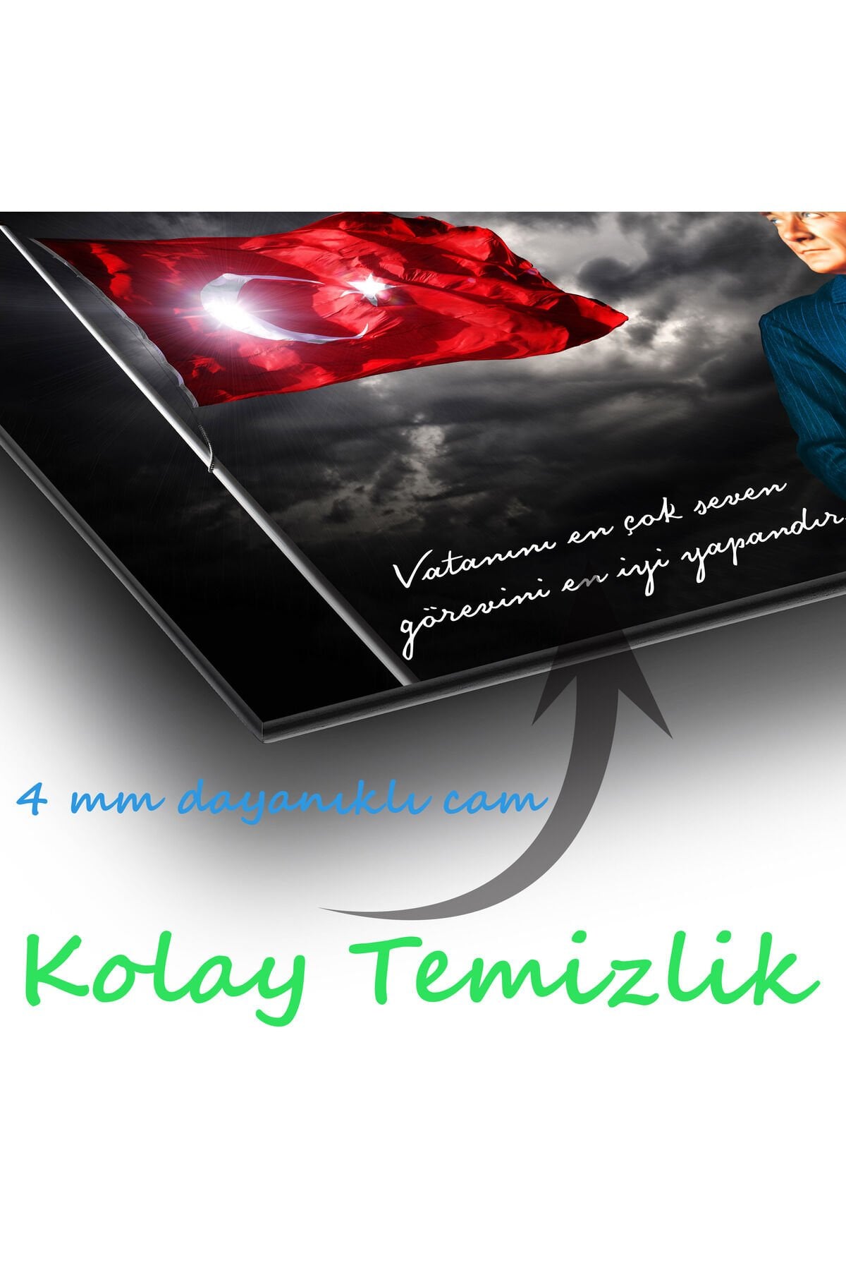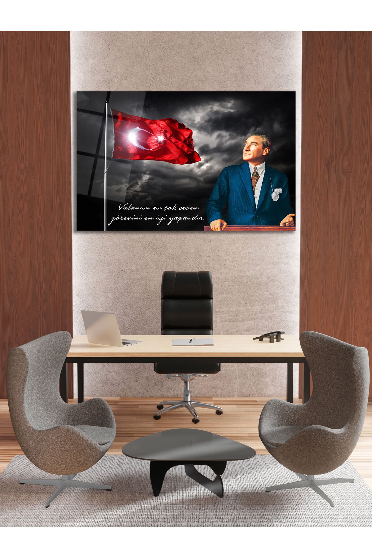 Atatürk Vatanını En Çok Seven Cam Tablo , Modern Ev İş Ofis Salon Duvar Dekoru , Hediyelik Tablo Siyah Kırmızı