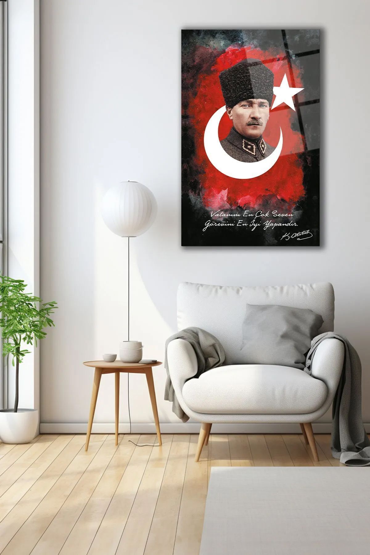 Atatürk ve Vatanını En Çok Seven Görevini En İyi Yapandır Yüksek Çözünürlüklü Dikey Cam Tablo siyah 1
