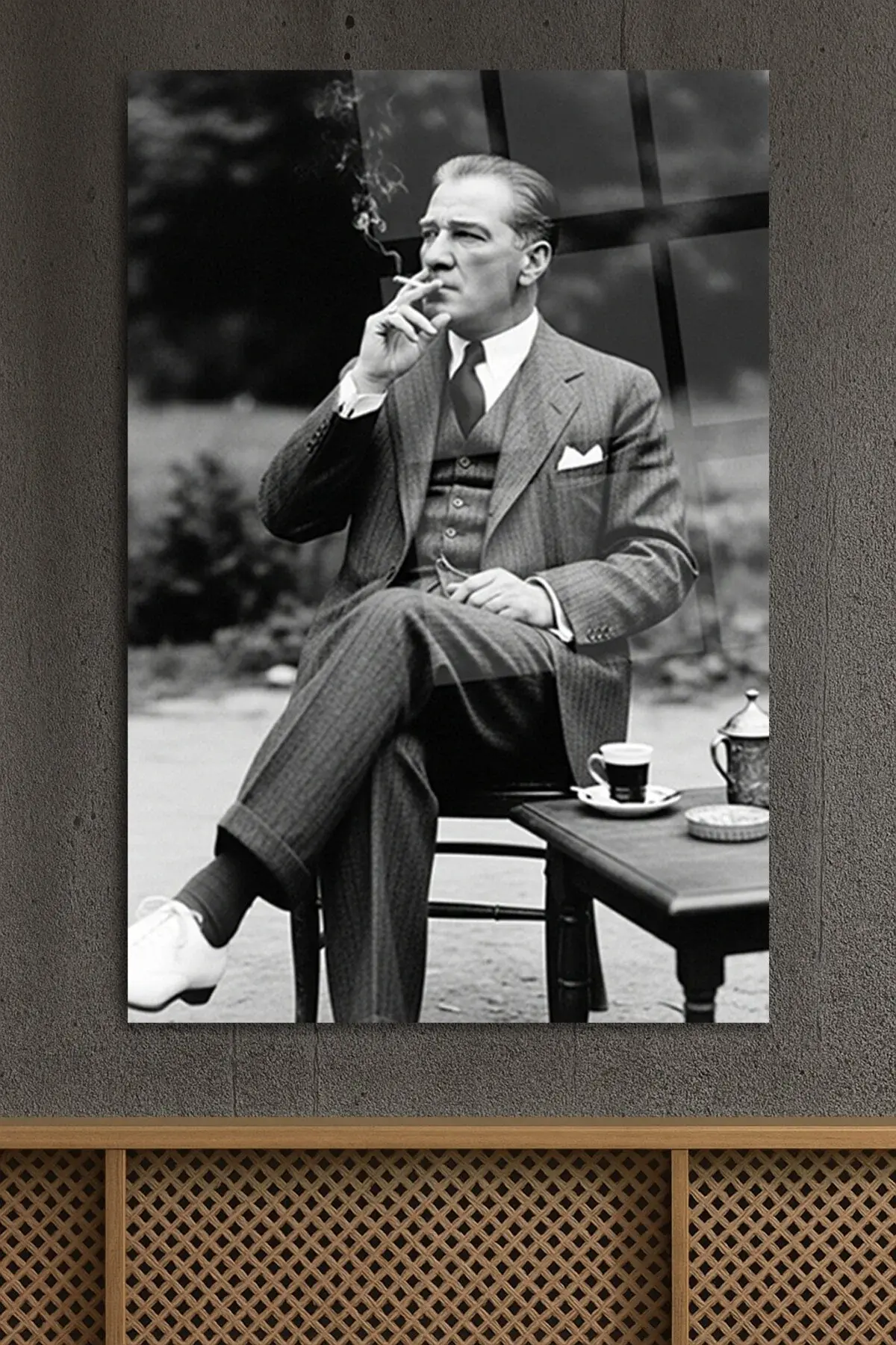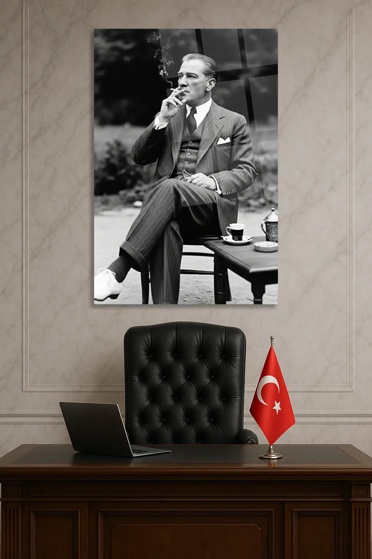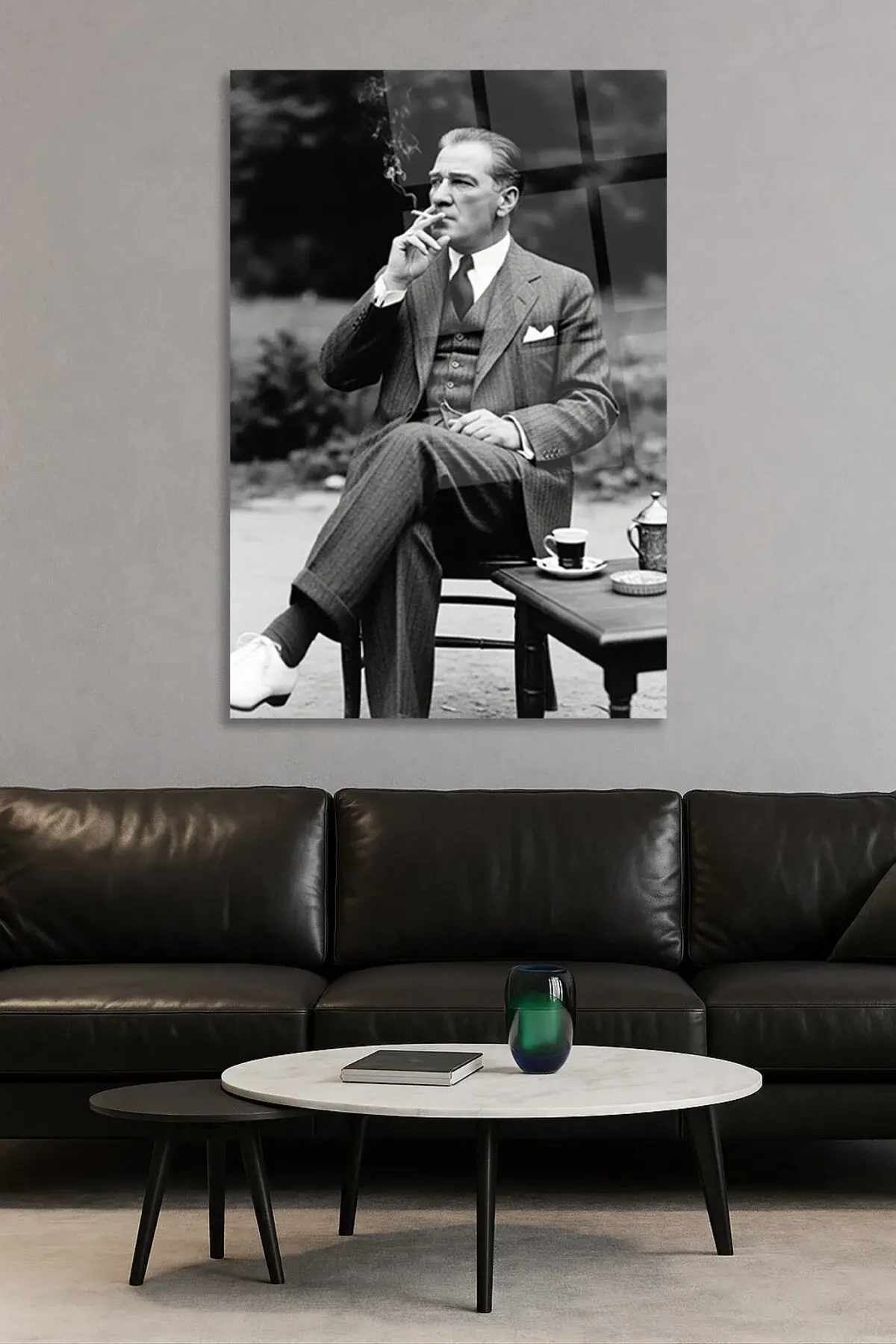 ATATÜRK YAPAY ZEKA CAM TABLO ATATÜRK KARİZMATİK ATATÜRK TABLOSU OFİS HEDİYESİ Siyah