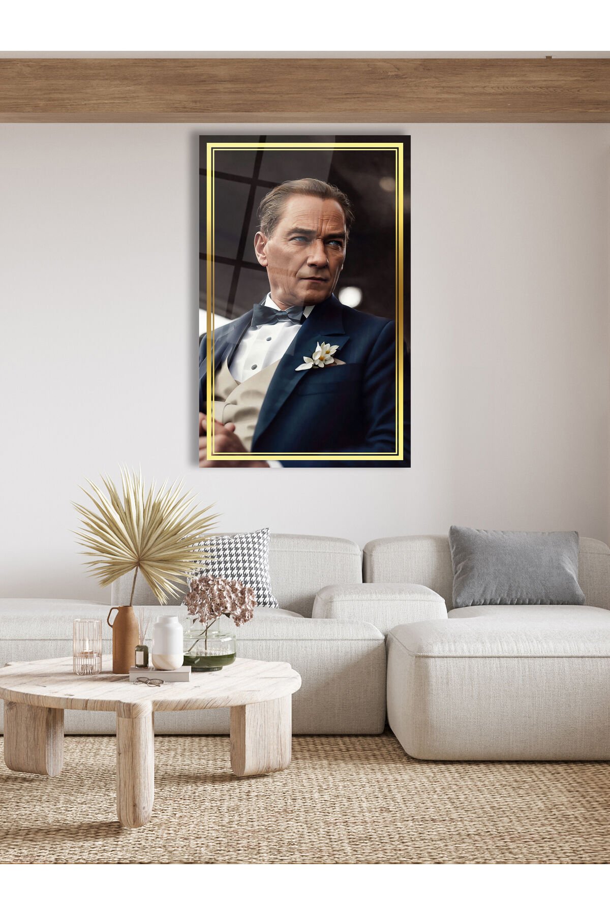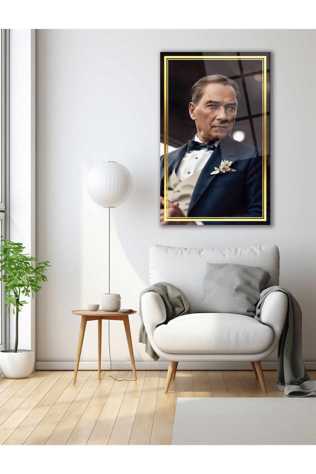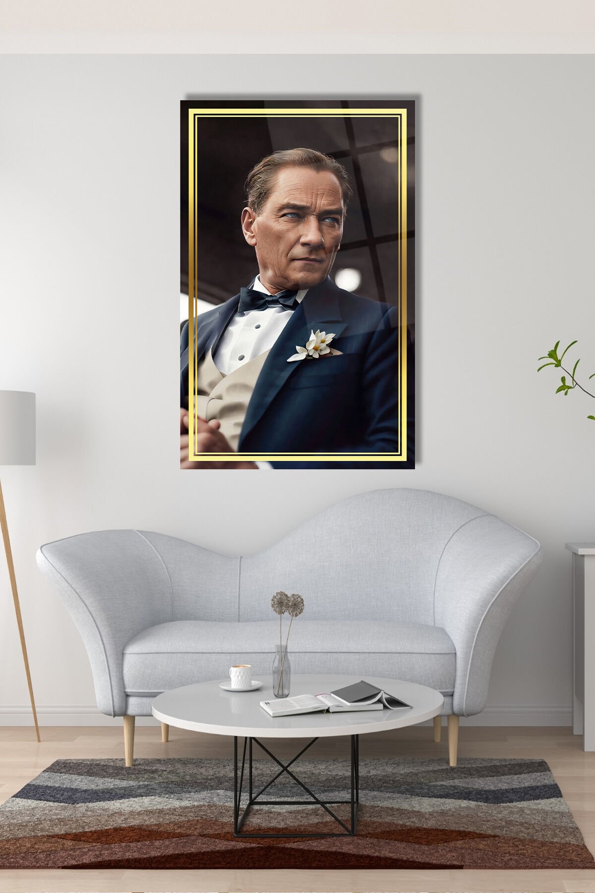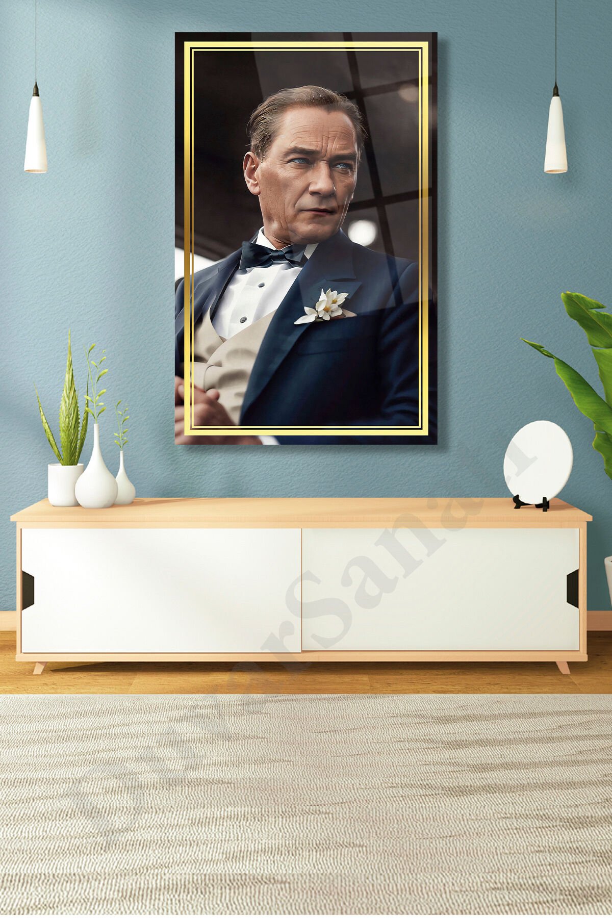 Atatürk Yapay Zeka Gerçek Cam Tablo , Modern Ev Ofis Salon Duvar Dekoru , Hediyelik Tablo Mavi