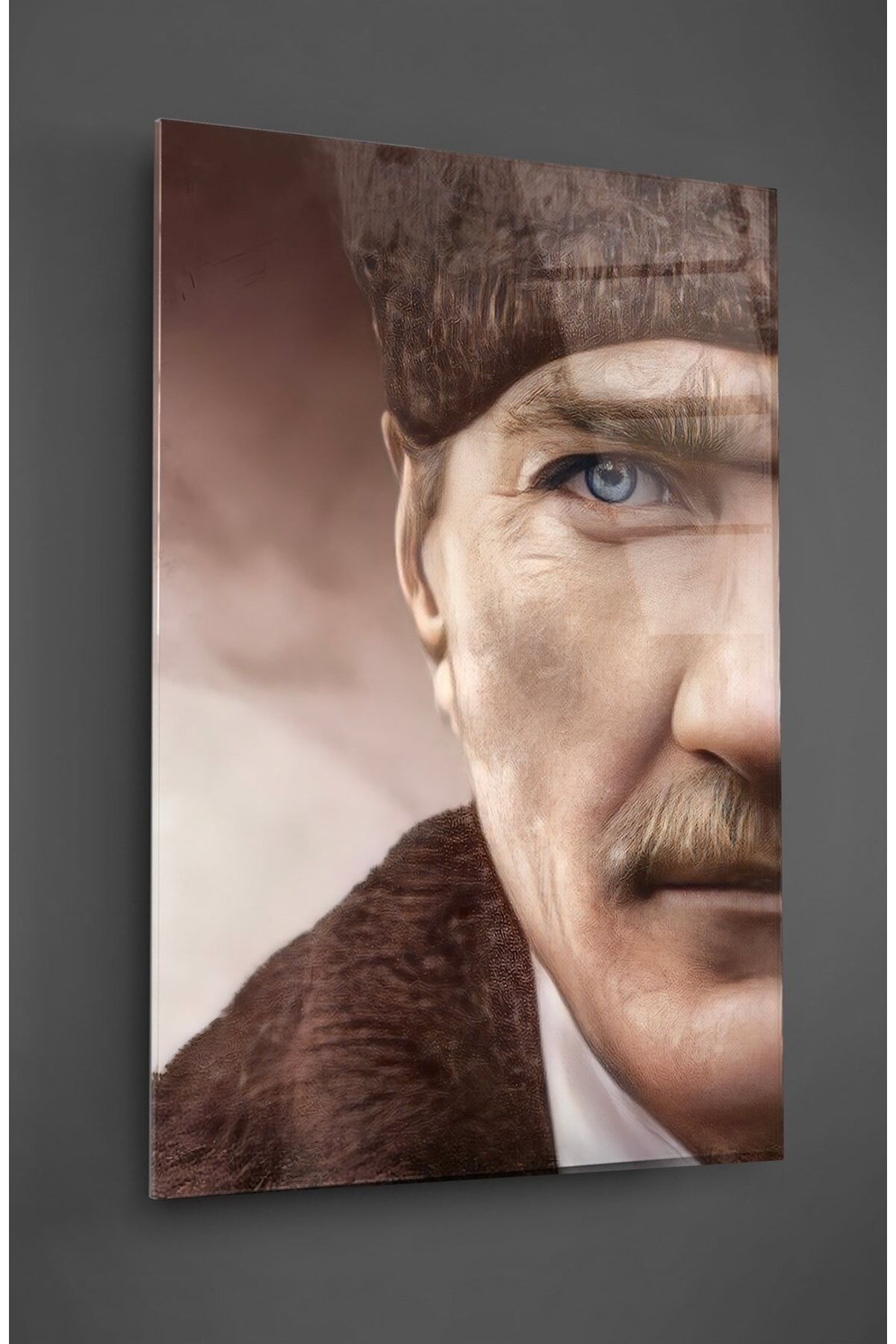Manevi ve dini temalarıyla dikkat çeken bu Atatürk yarı portre cam tablo, evinizin veya ofisinizin dekorasyonuna derinlik katar; Tek parça halinde gelen bu eser, kolay montaj avantajı sunar ve duvarınızda şık bir görünüm oluşturur; Yüksek kaliteli cam materyali sayesinde ışığı mükemmel bir şekilde yansıtarak, mekanınıza aydınlık ve ferah bir atmosfer kazandırır;