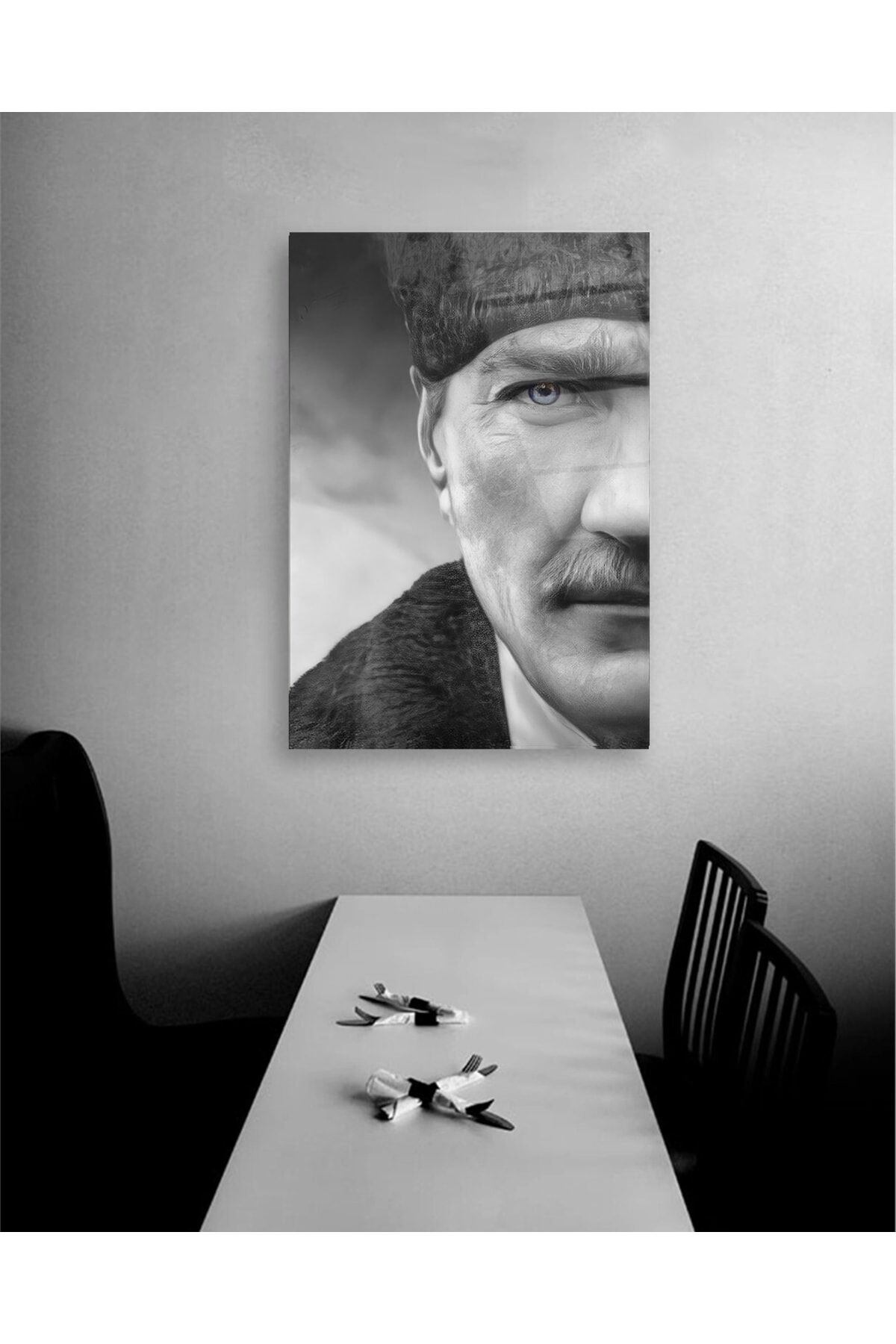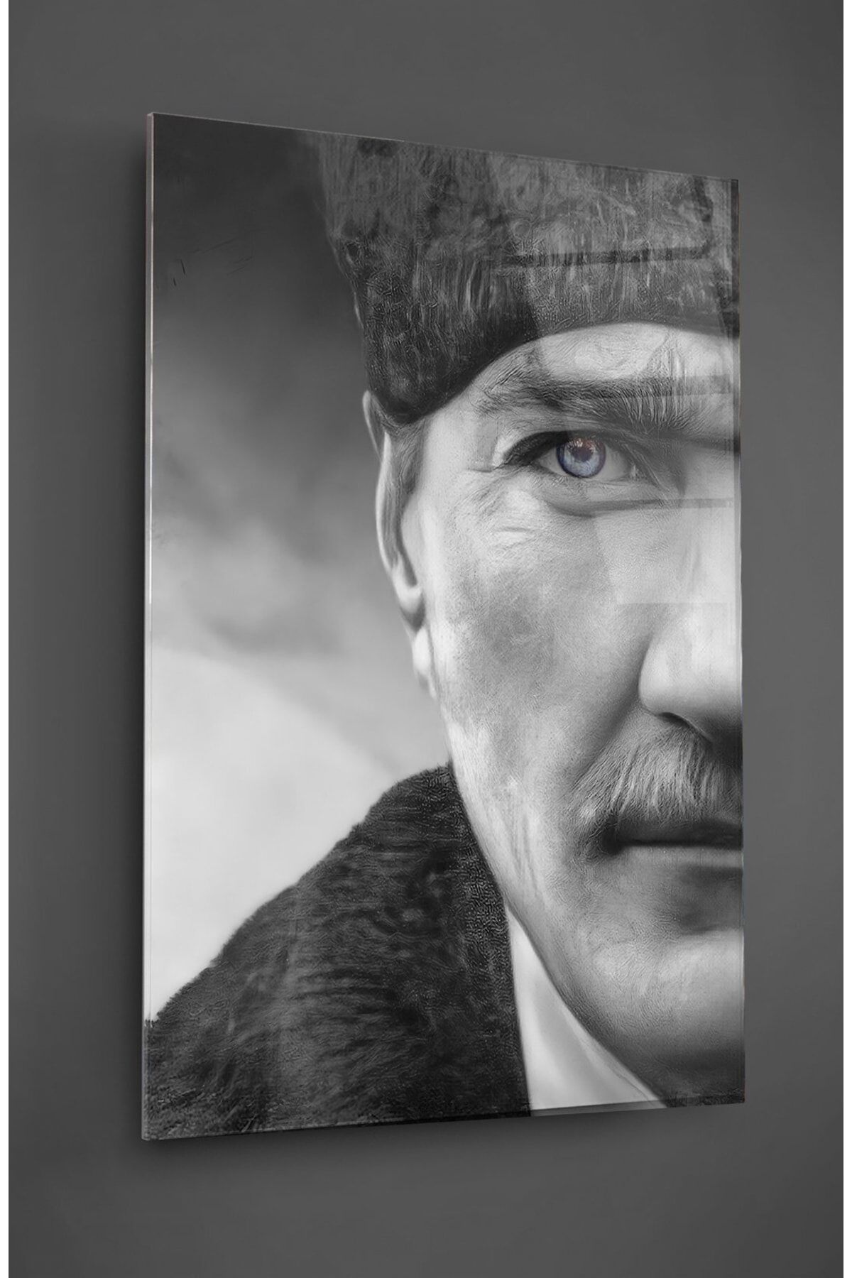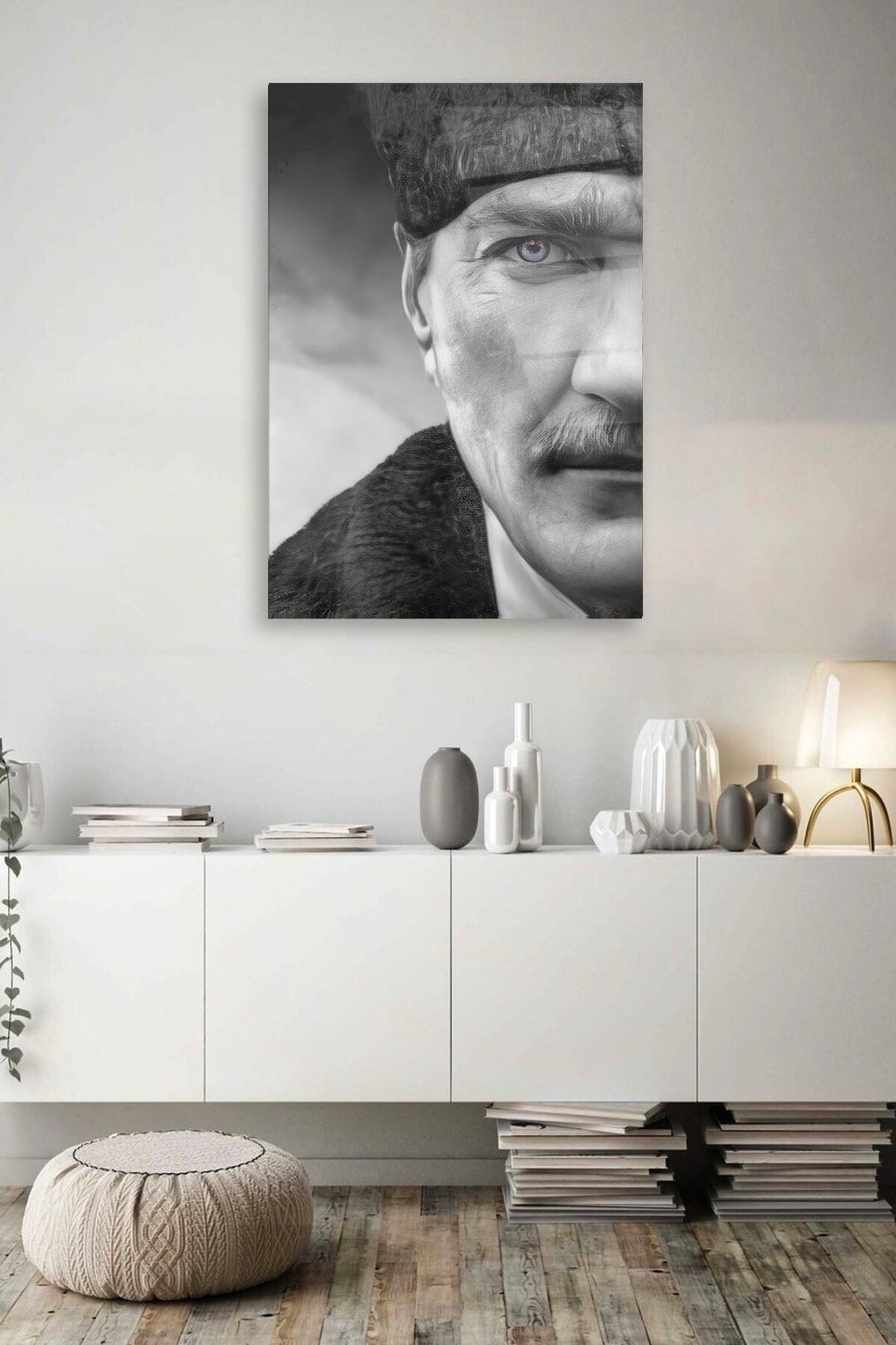 Atatürk Yarı Portre Siyah Beyaz Cam Tablo Renkli