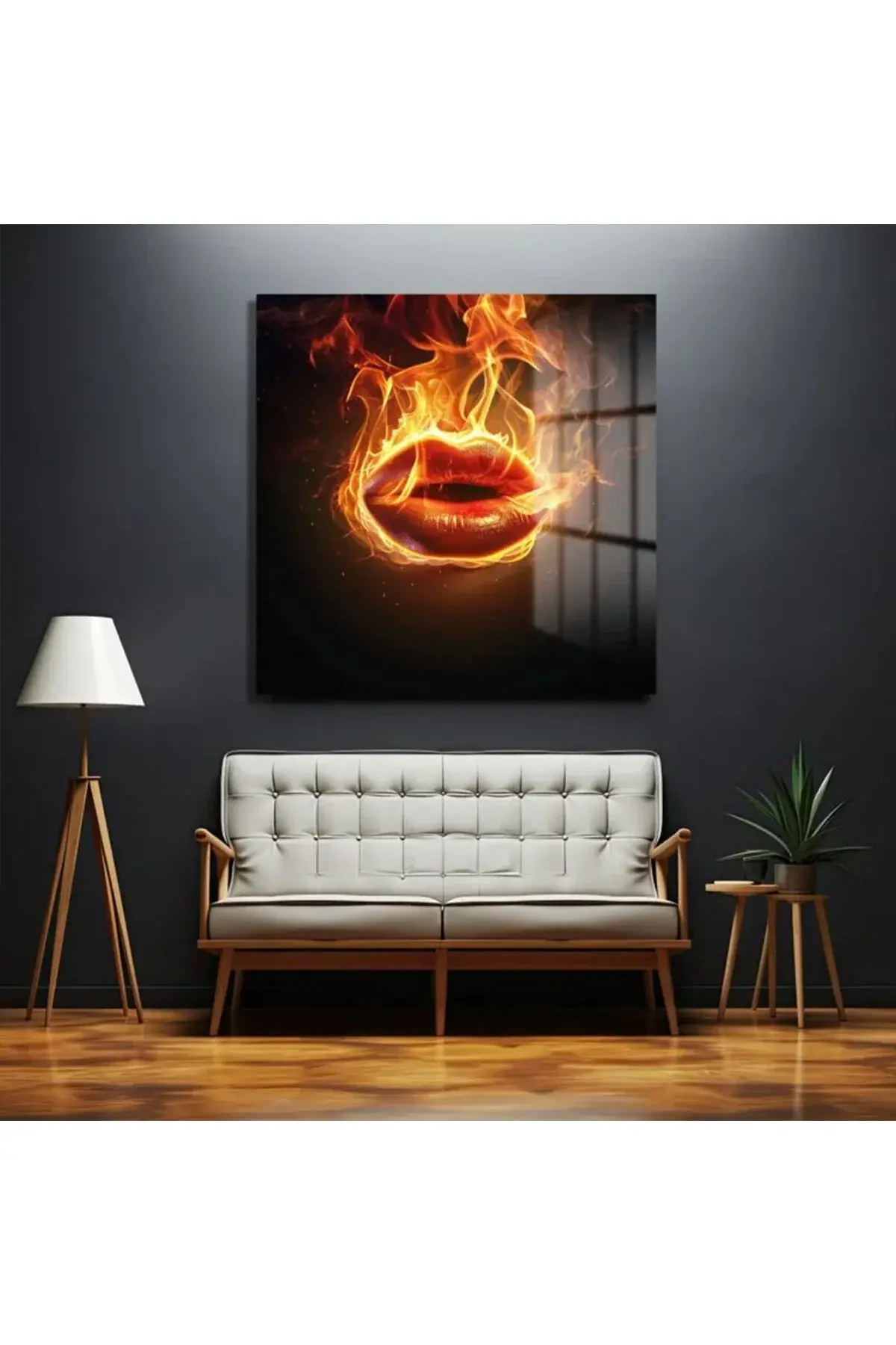 ATEŞ KADIN DUDAĞI ULTRA YÜKSEK ÇÖZÜNÜRLÜK KARE CAM TABLO EV İŞ YERİ OFİS HEDİYESİ TABLO Siyah