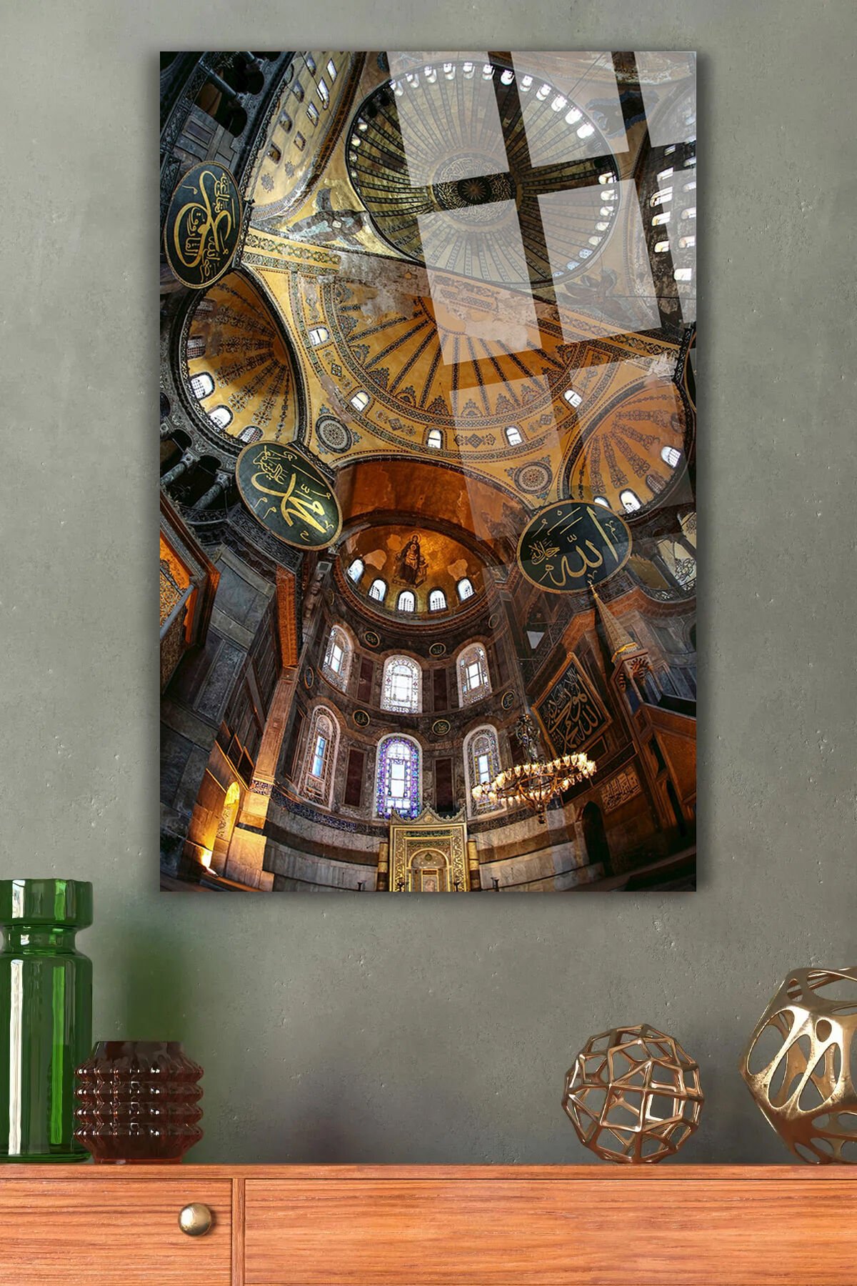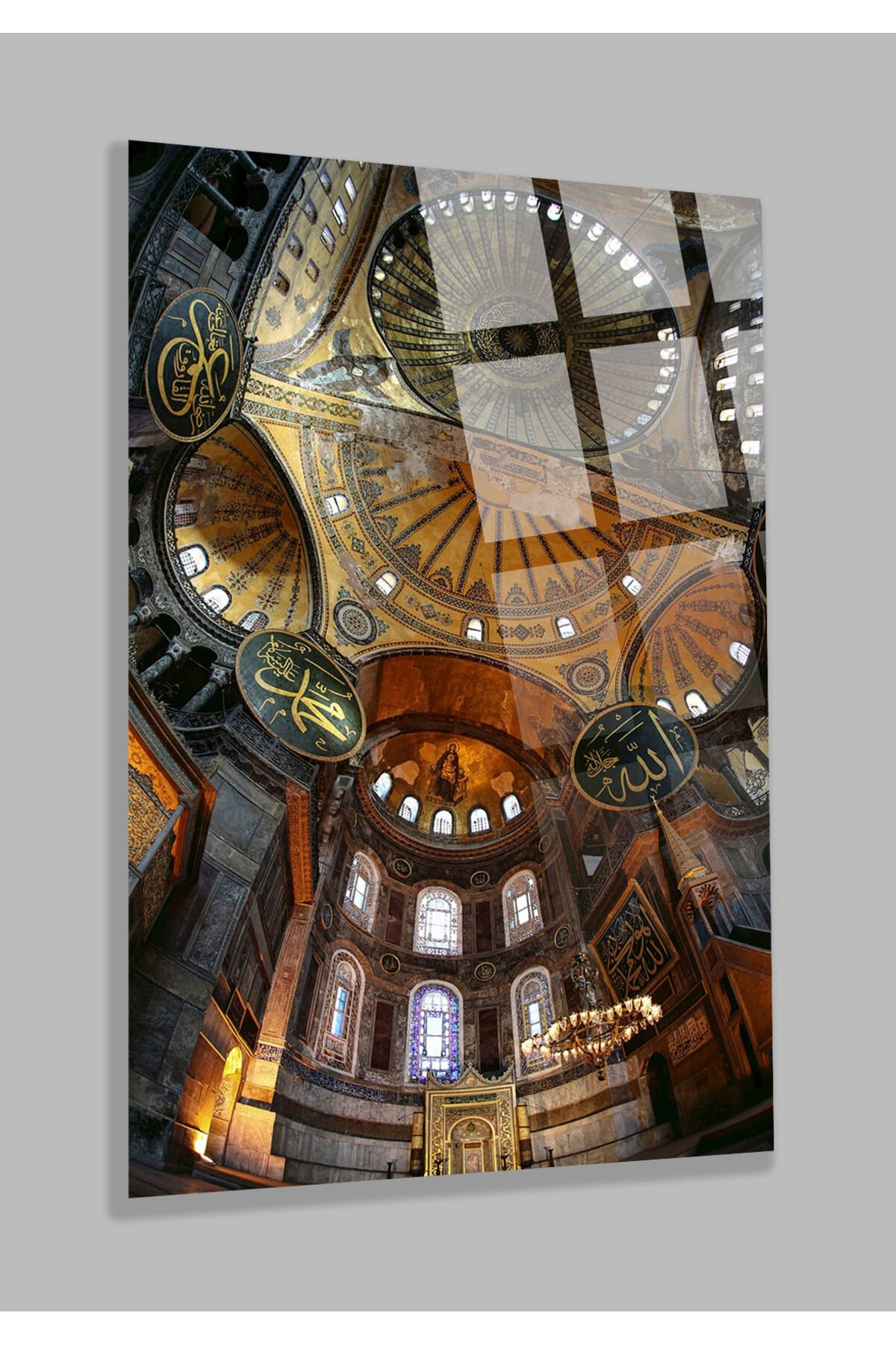 AYASOFYA CAMİİ İÇİ DİNİ İSLAMİ KIRILMAZ LÜKS CAM TABLO EV, İŞ YERİ, OFİS HEDİYESİ Kahverengi