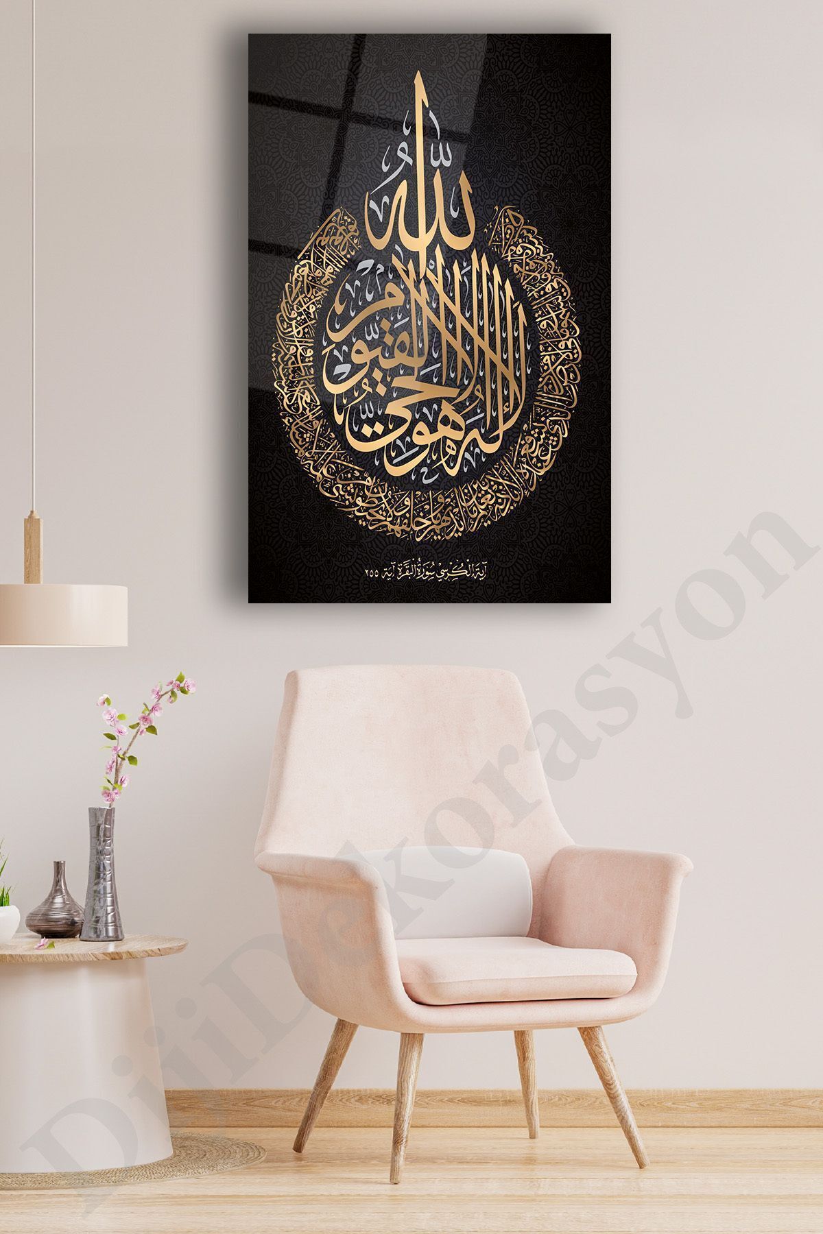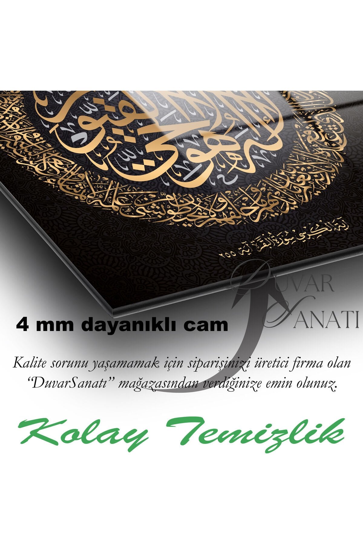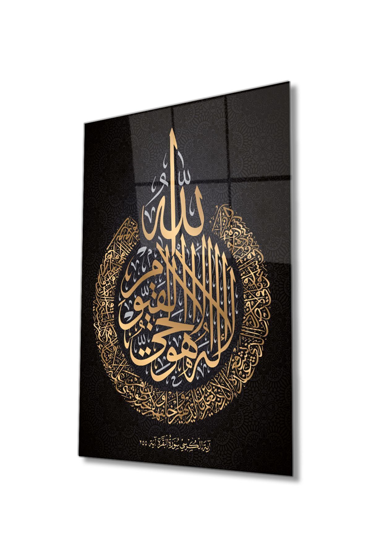 Ayetel Kürsi Ayet Cam Tablo Dini İslami Ev Ofis Salon İçin Hediyelik Duvar Dekoru Büyük Tablo Siyah Gold