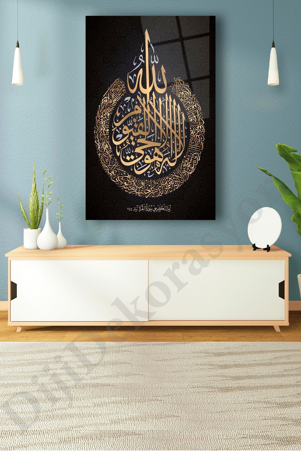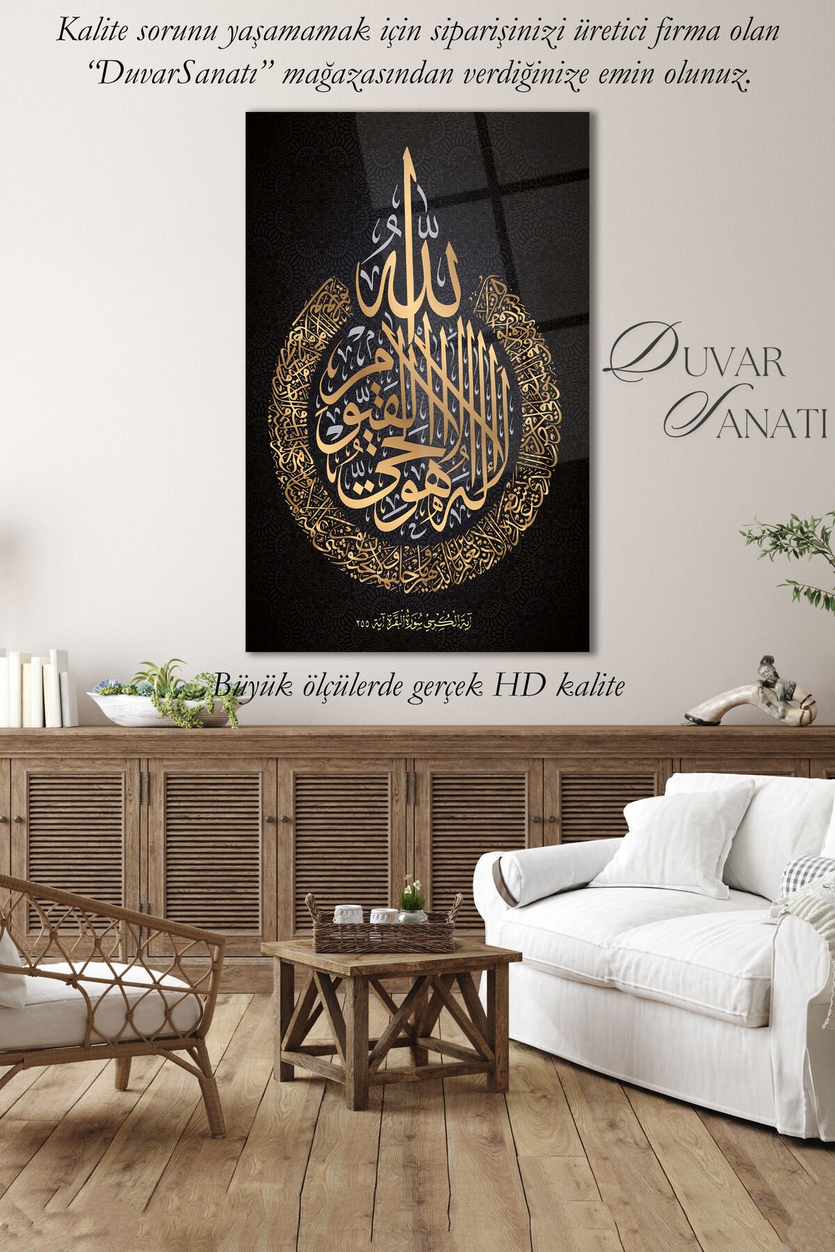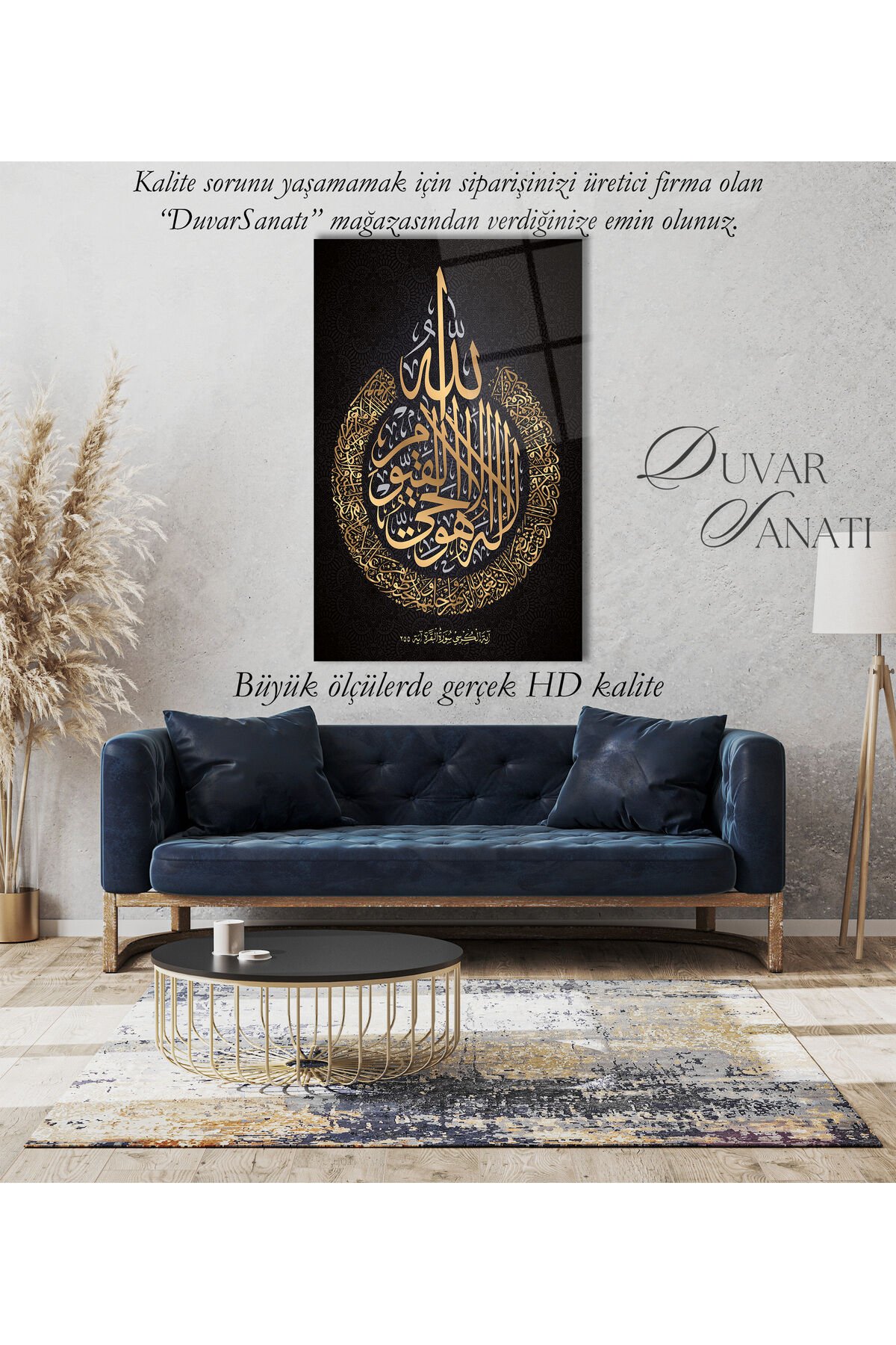 Ayetel Kürsi Ayet Cam Tablo Dini İslami Ev Ofis Salon İçin Hediyelik Duvar Dekoru Büyük Tablo Siyah Gold