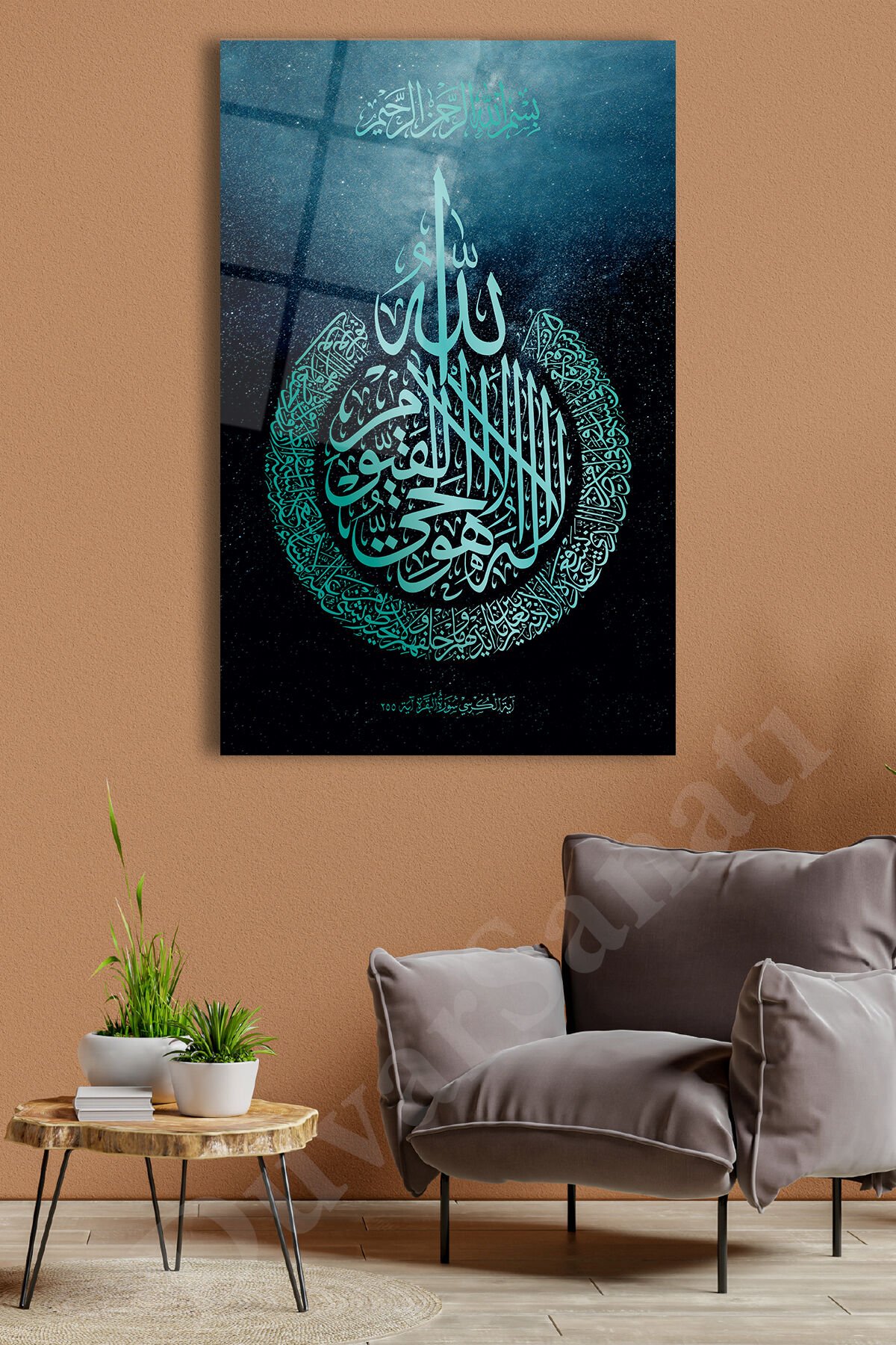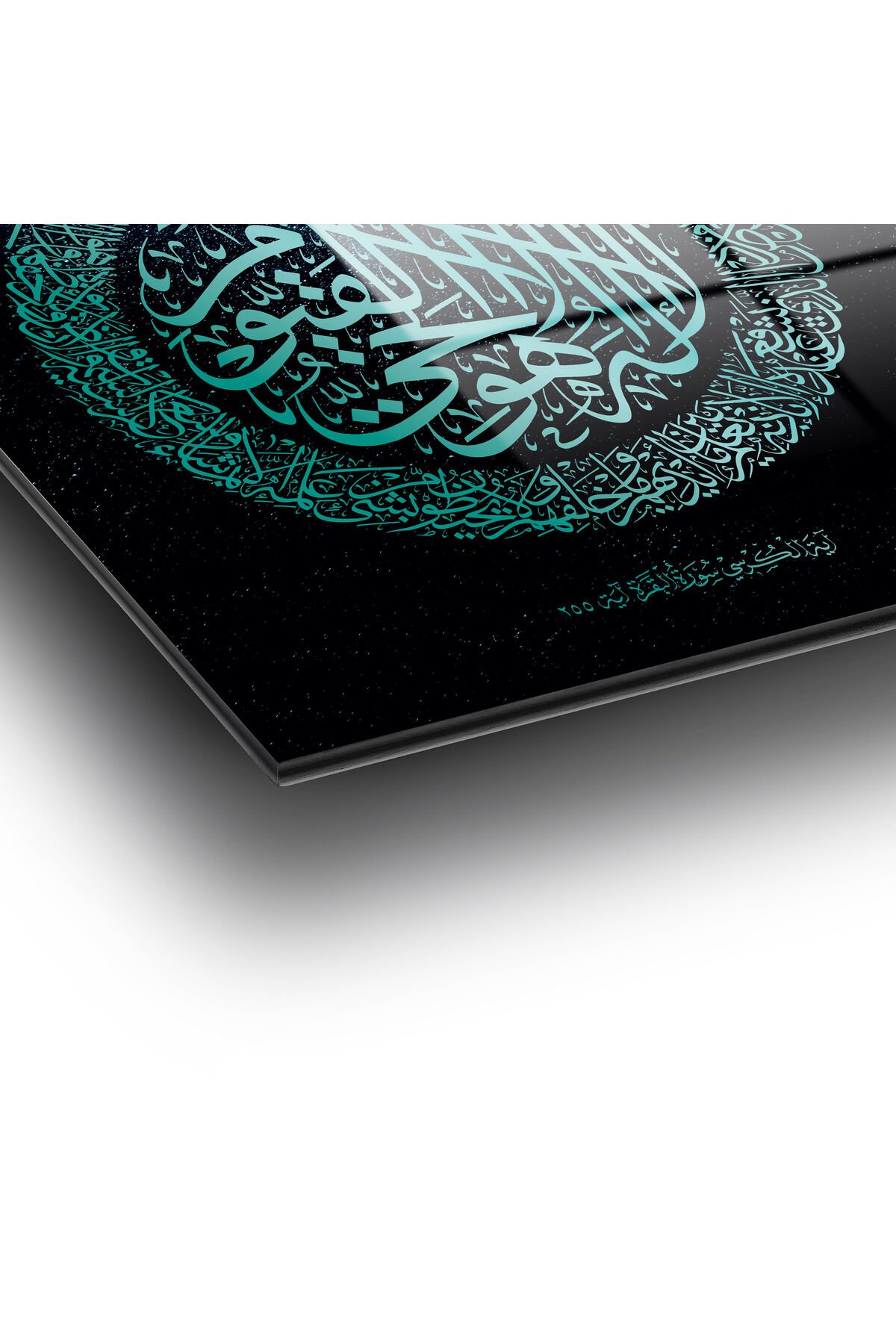 Ayetel Kürsi Cam Tablo Turkuaz Renk Dini İslami Modern Ev Ofis Salon Hediyelik Büyük Tablo Turkuaz