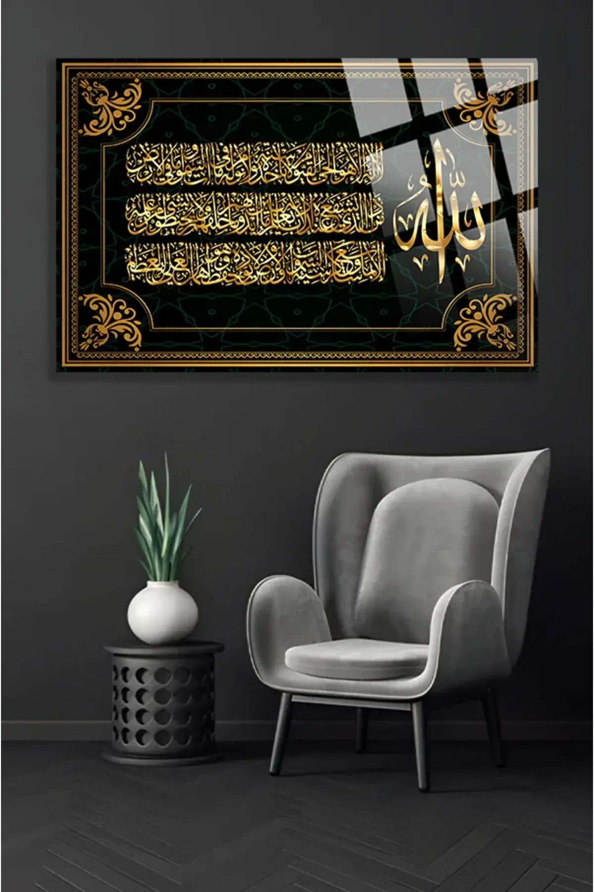 Ayetel Kürsi Dini İslami Kırılmaz Cam Tablo, Ev Ve Ofis Hediyesi Yüksek Çözünürlüklü 4mm Lüks Tablo