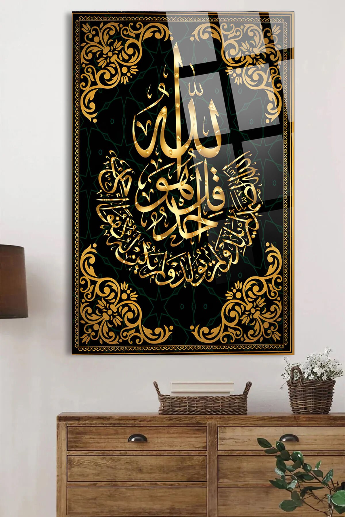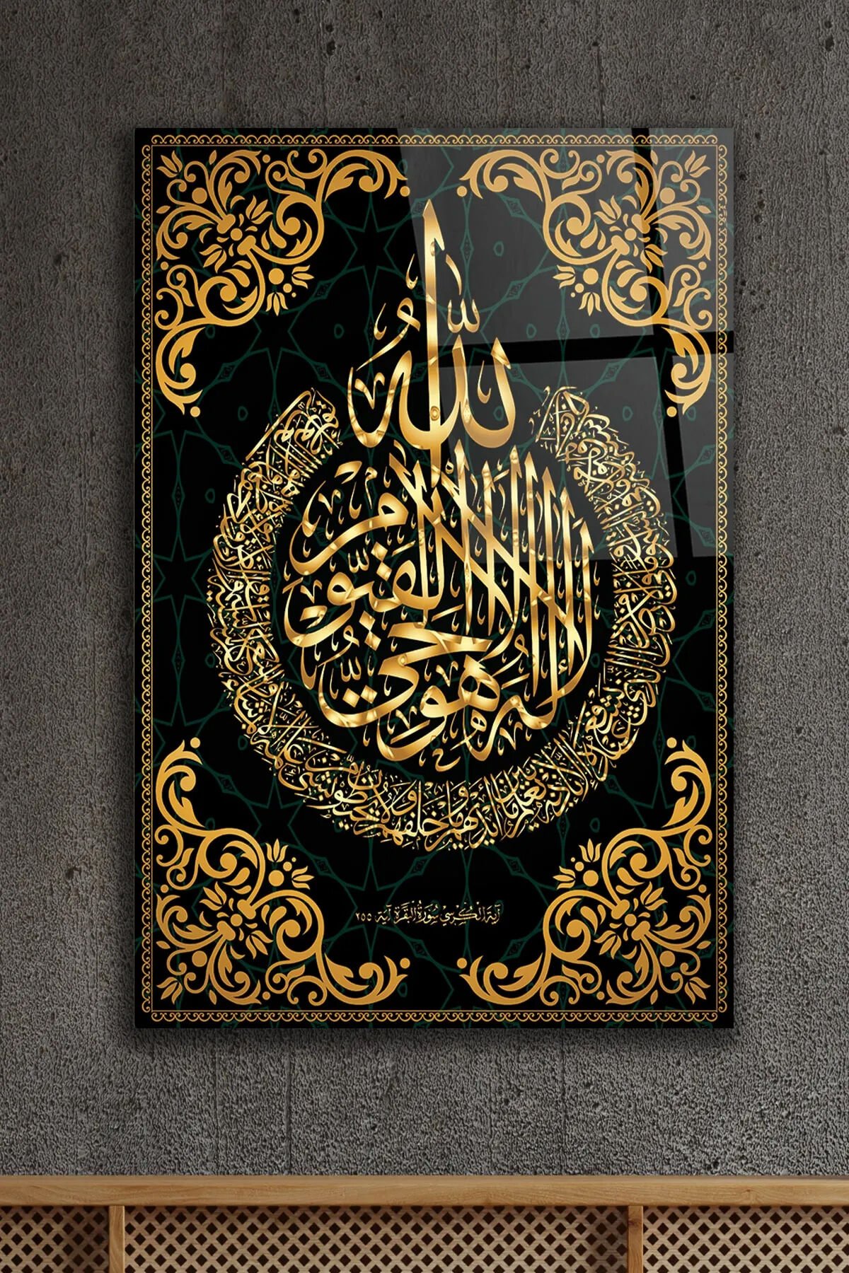 AYETEL KÜRSİ DİNİ İSLAMİ KIRILMAZ LÜKS CAM TABLO EV İŞ YERİ HEDİYESİ CAM TABLO Siyah