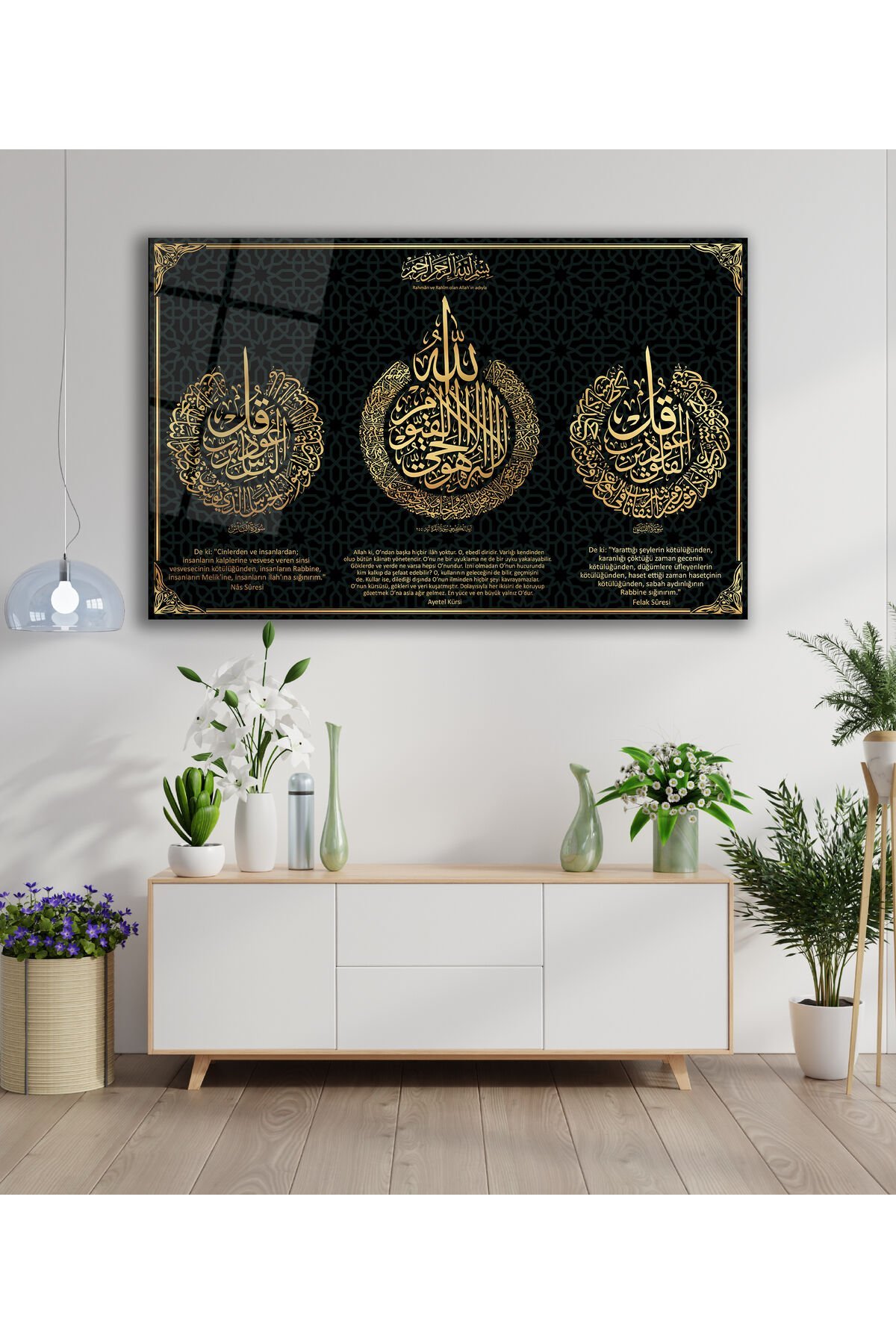 Ayetel Kürsi Felak Nas Cam Tablo,Dini İslami Modern Ev Ofis Salon Duvar Dekoru,Hediyelik Tablo Dekor