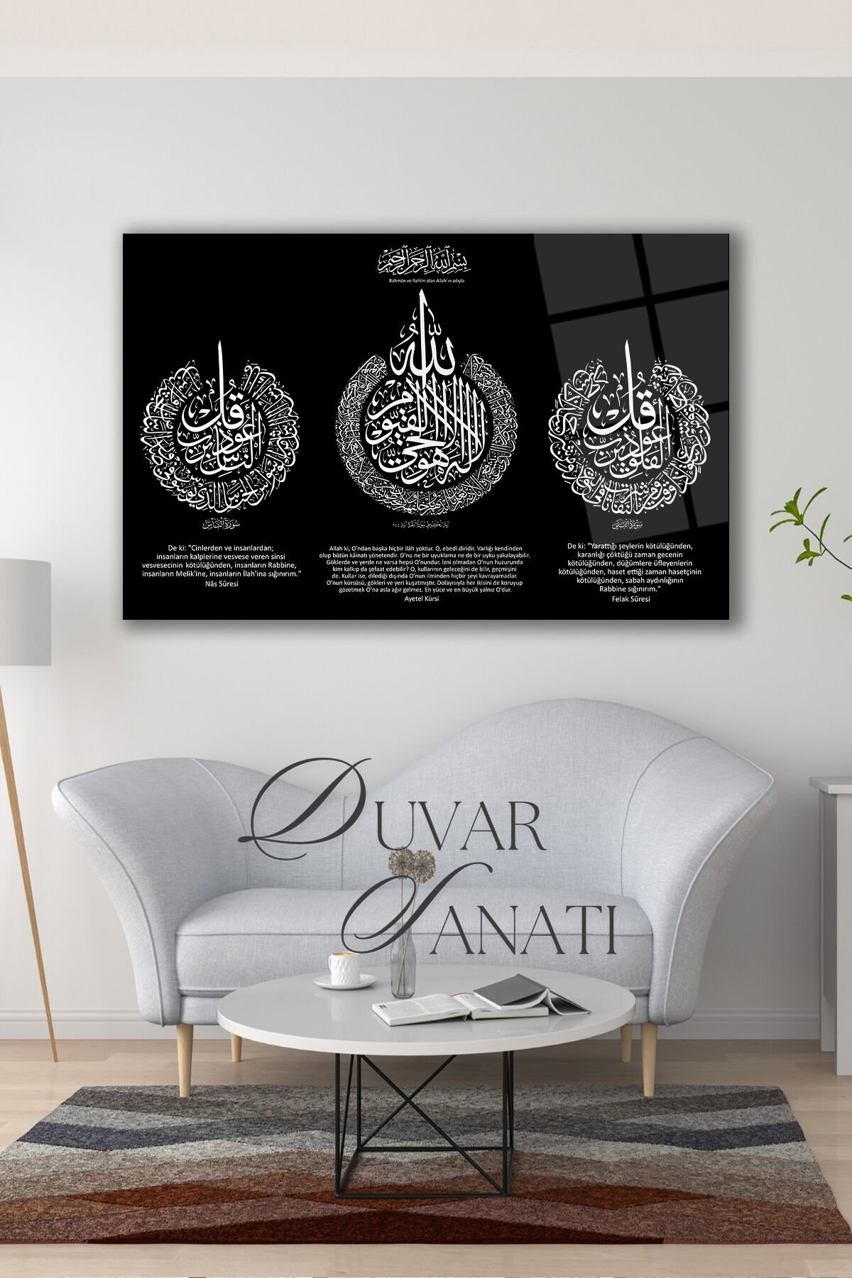 Ayetel Kürsi Felak Nas ve Türkçe Meali Cam Tablo,Dini İslami Modern Ev Ofis Duvar Dekoru , Hediyelik