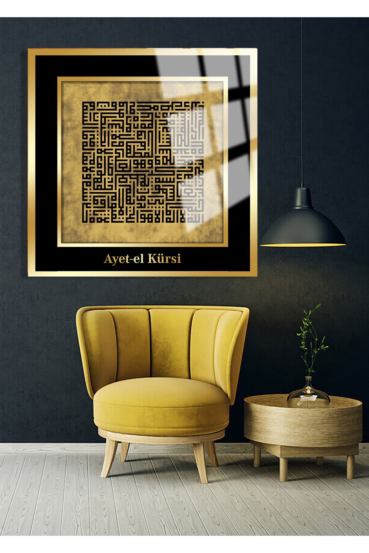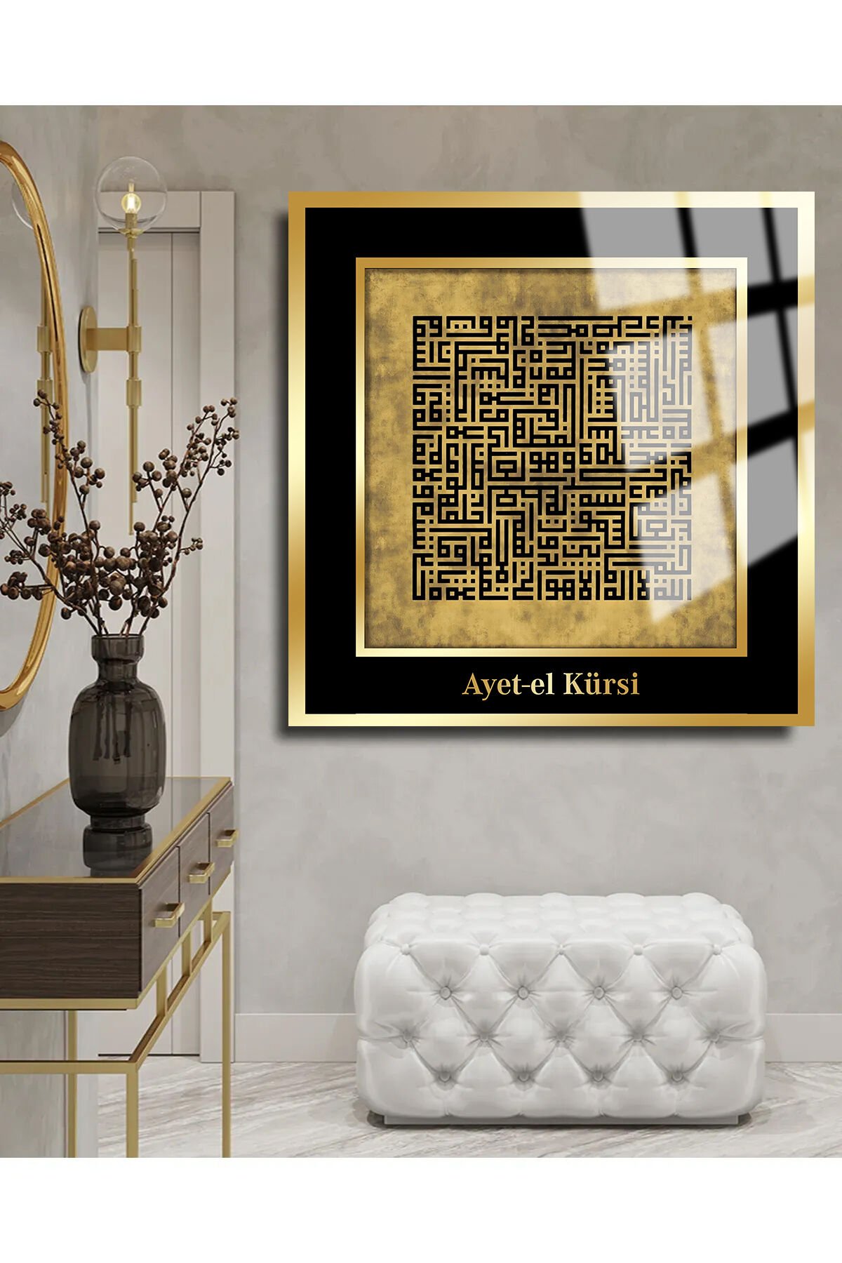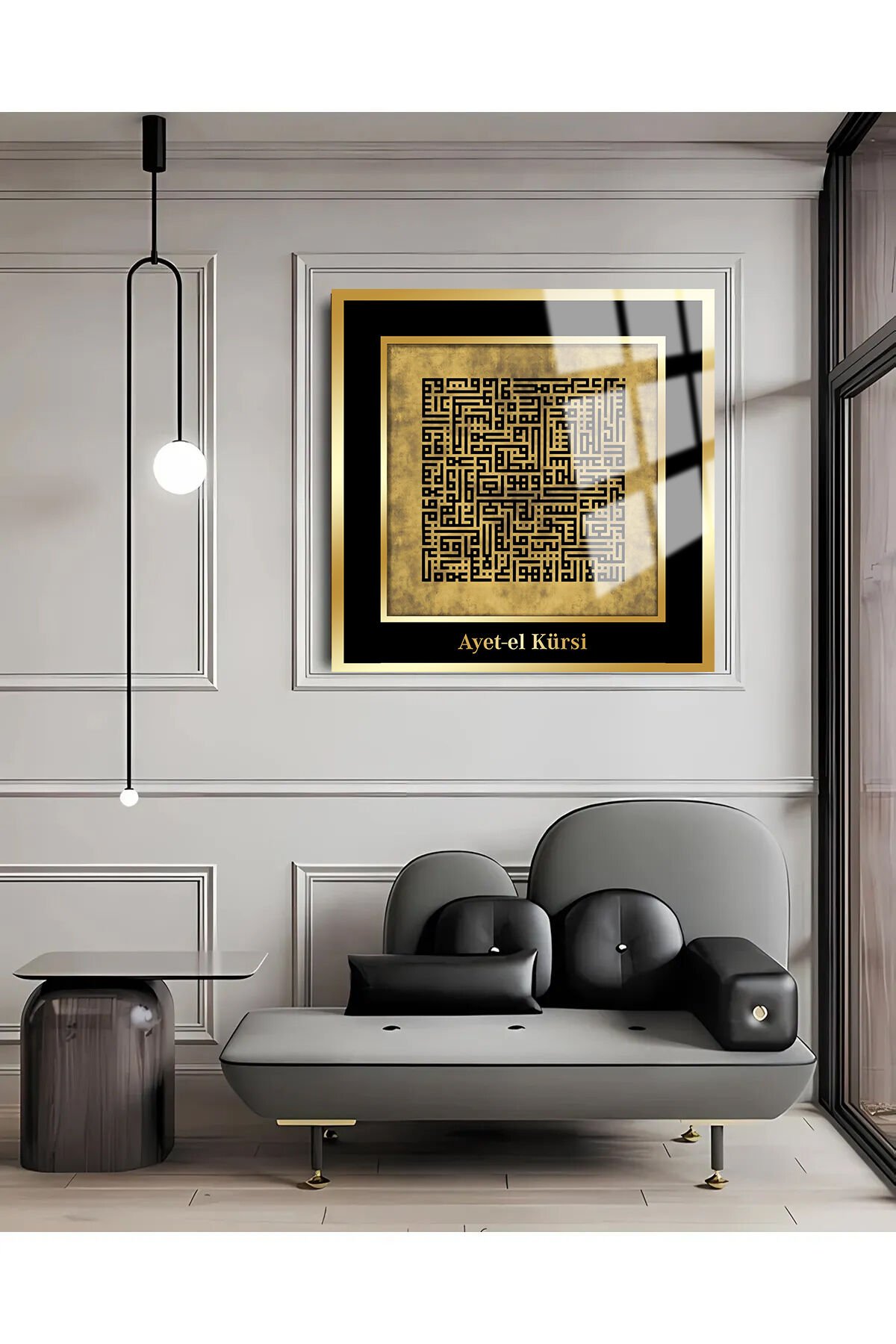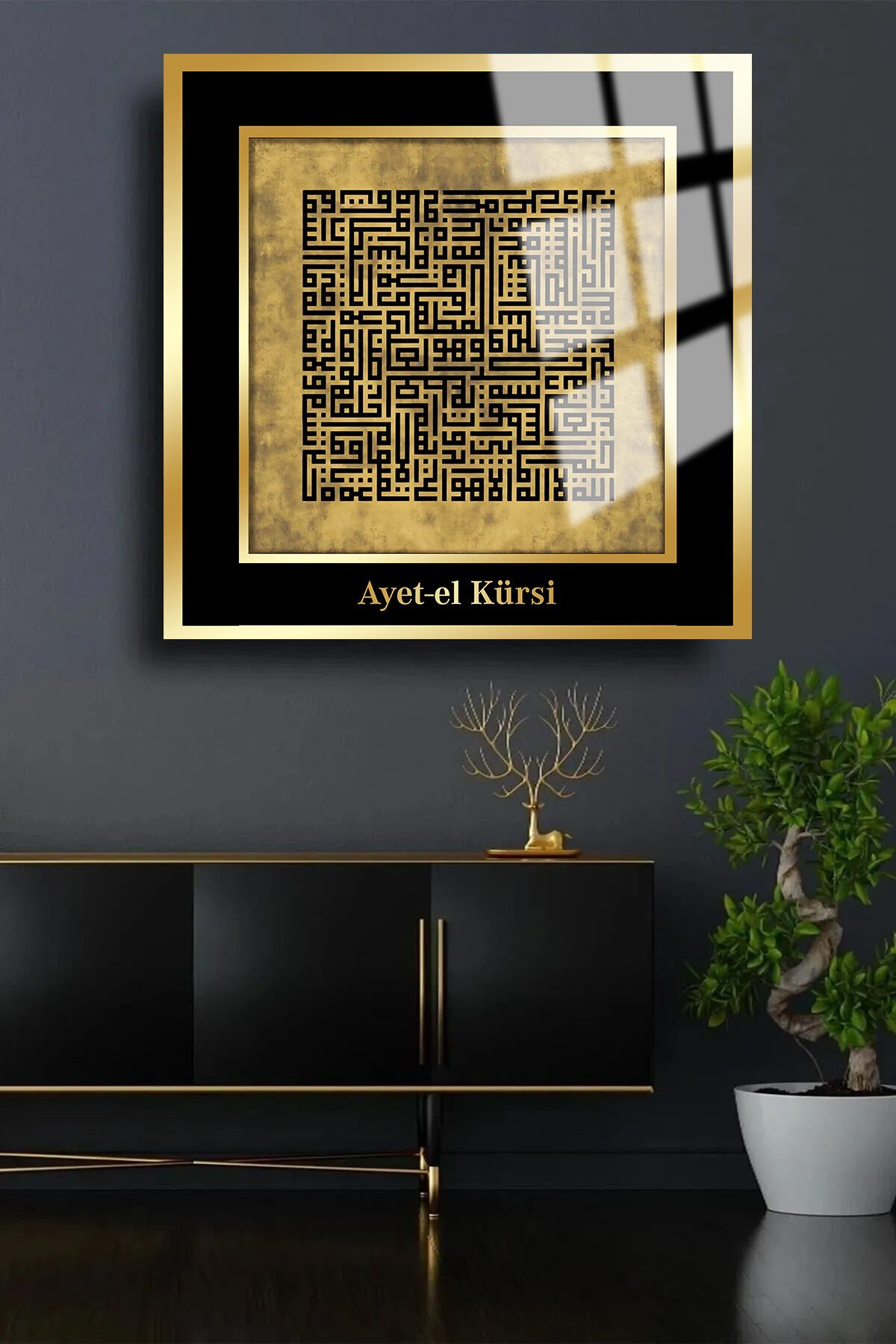 Ayetel Kürsi Kufi Sanatı Dini Islami Kırılmaz Cam Tablo,Ev Ofis Hediyesi Yüksek Çözünürlüklü 4mm Siyah