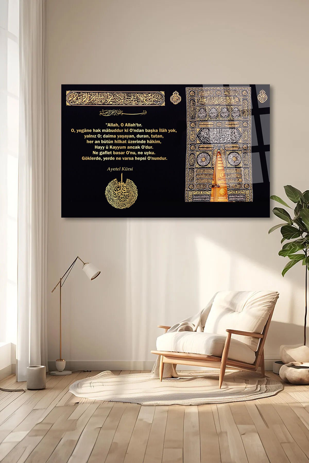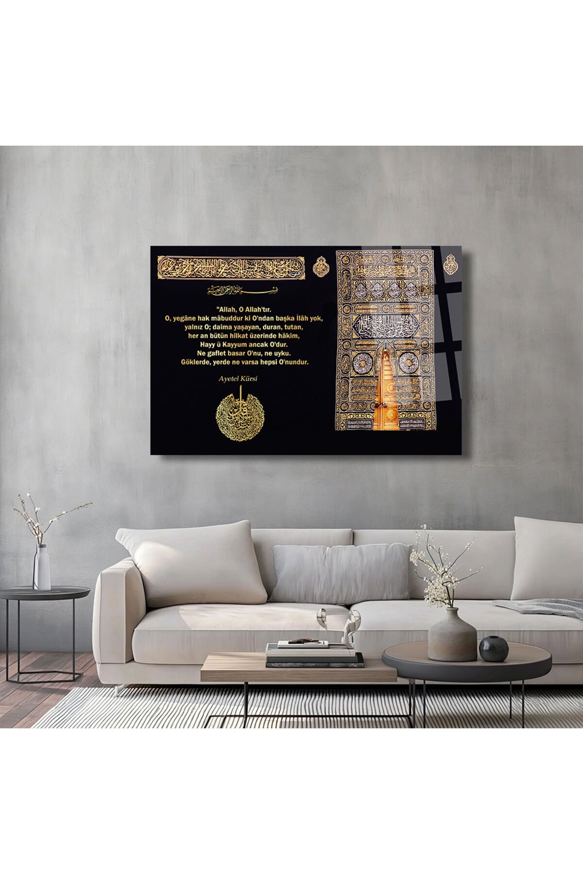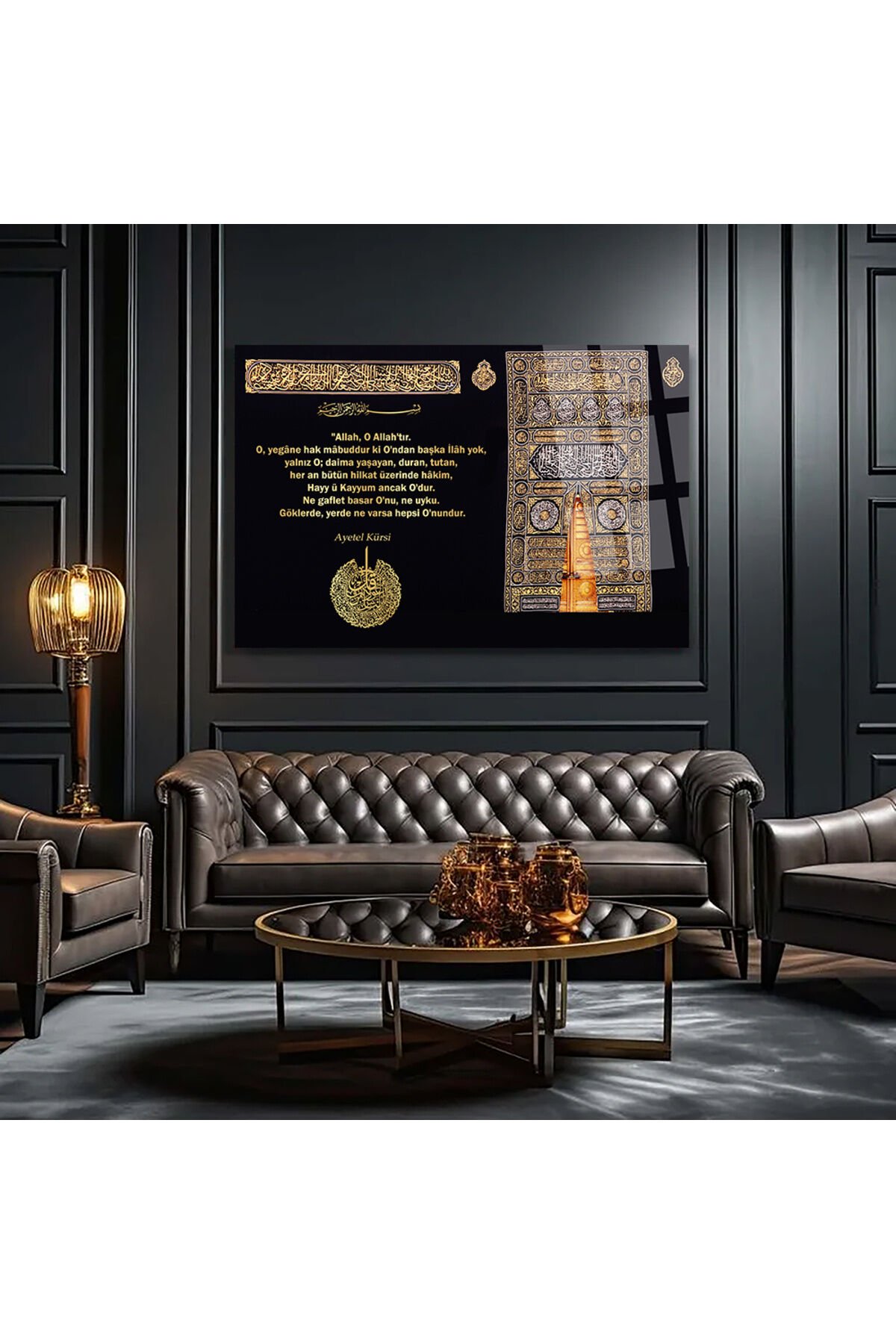 AYETEL KÜRSİ SURESİ MEALİ KEBA ÜZERİNE GOLD YAZILI DİNİ İSLAMİ KIRILMAZ CAM TABLO EV HEDİYESİ