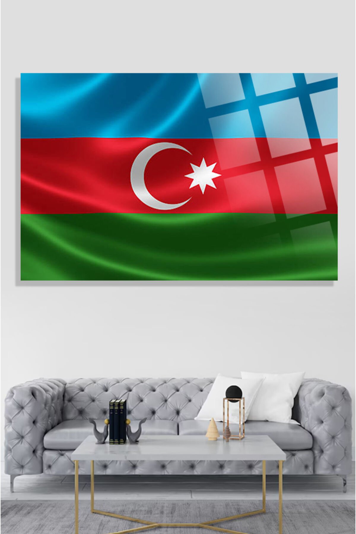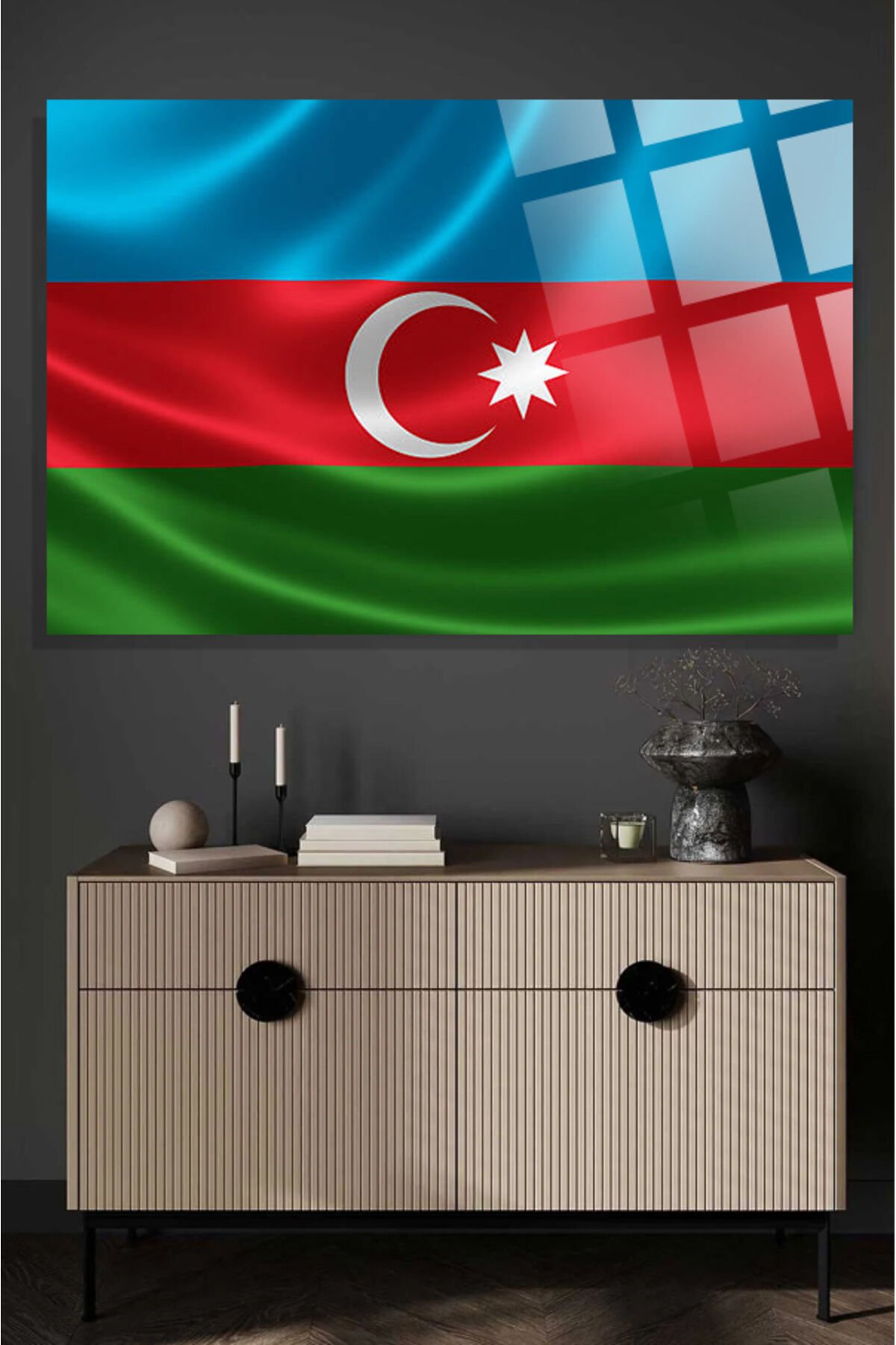 Azerbeycan Bayrağı Lüks 4mm Kırılmaz Temperli Yüksek Çözünürlüklü Cam Tablo kırmızı 1