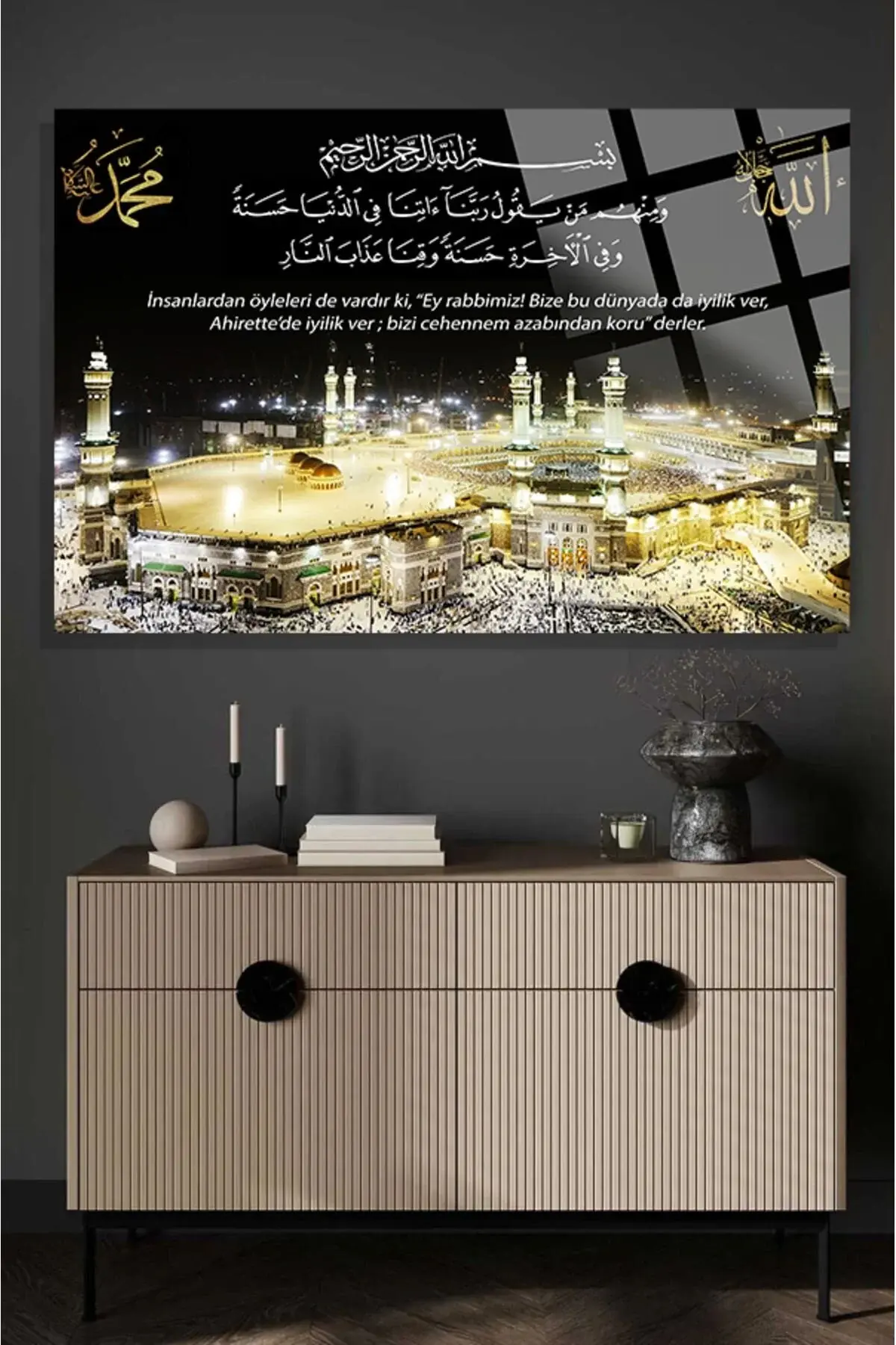 Bakara 201. Ayet Kabe Manzaralı 4mm Lüks Kırılmaz Temperli Yüksek Çözünürlüklü Cam Tablo