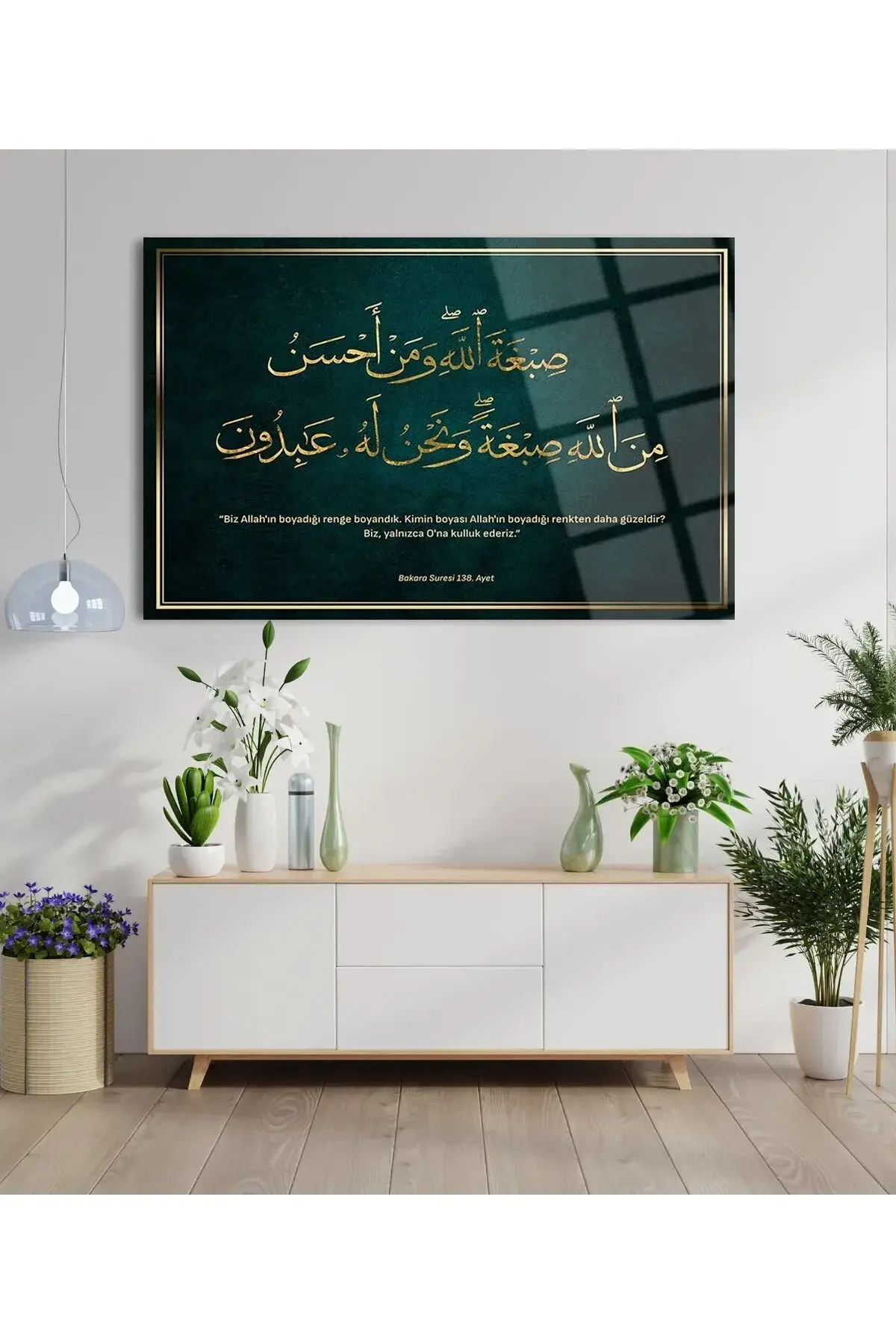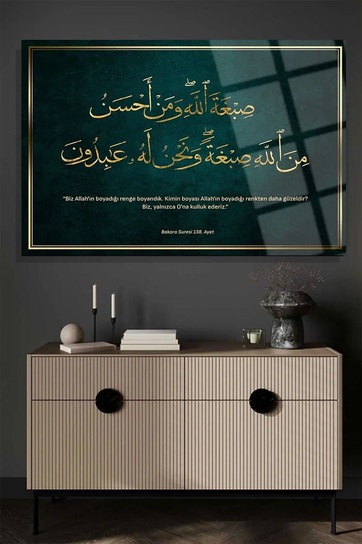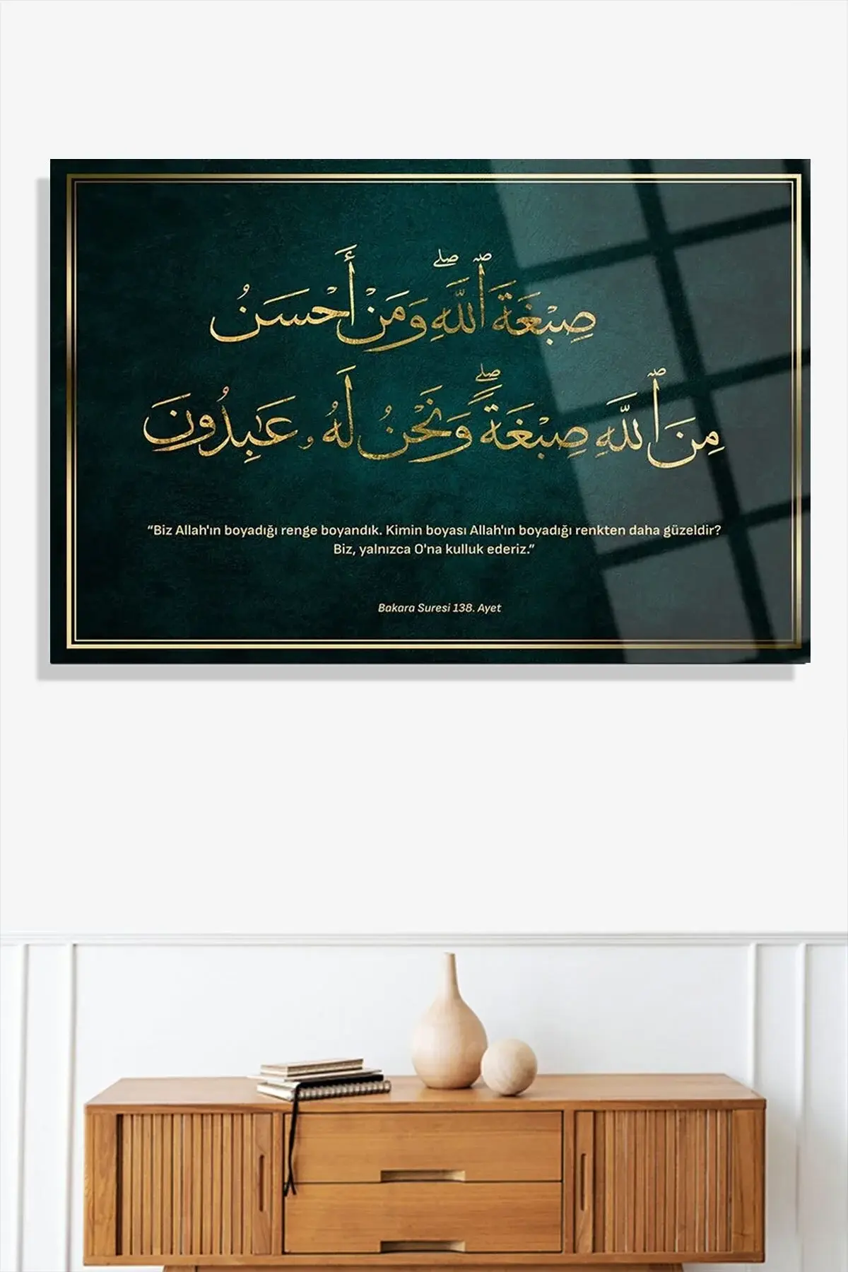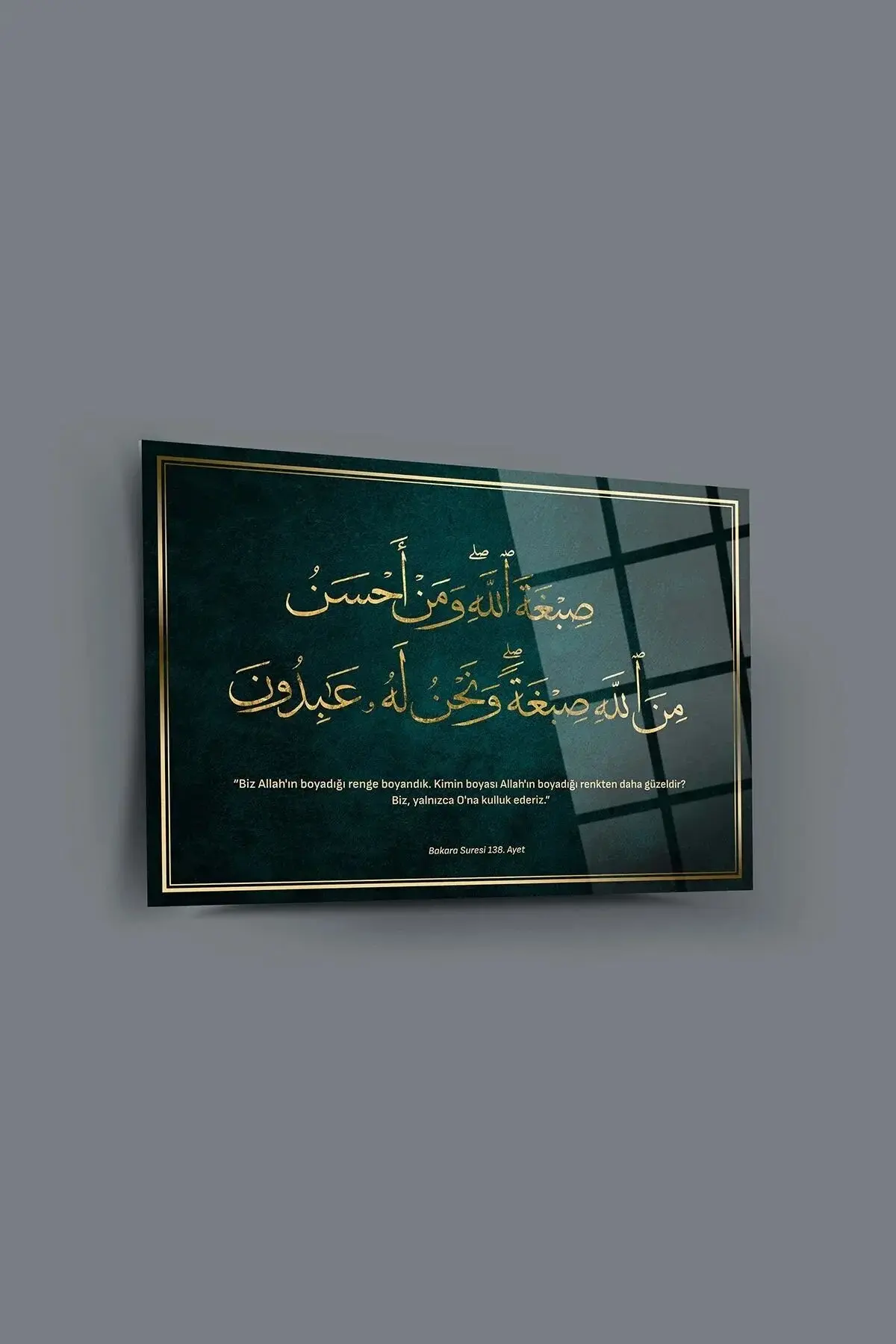 Bakara Suresi 138.Ayet 4mm Lüks Kırılmaz Temperli Yüksek Çözünürlüklü Cam Tablo