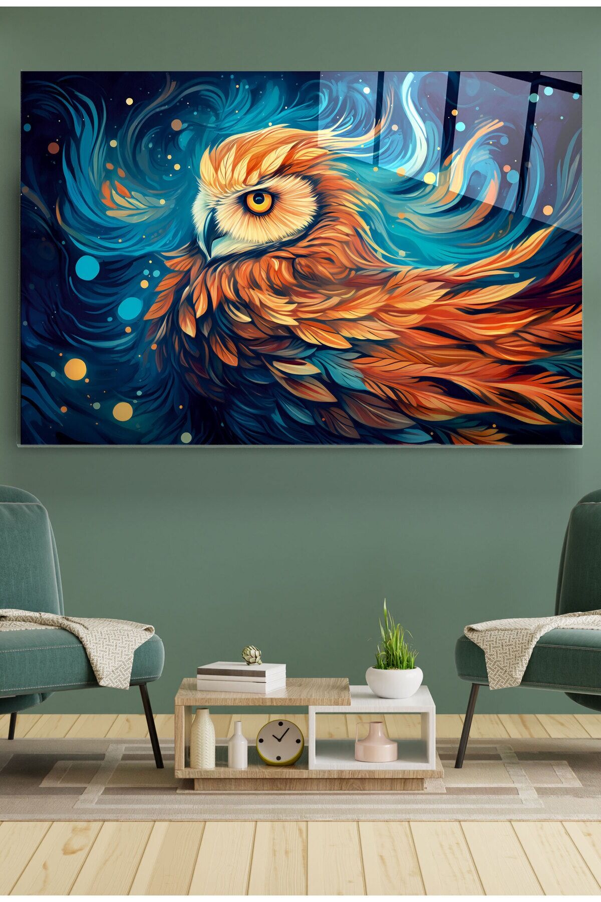 Baykuş Cam Tablo, Dekoratif Cam Tablo