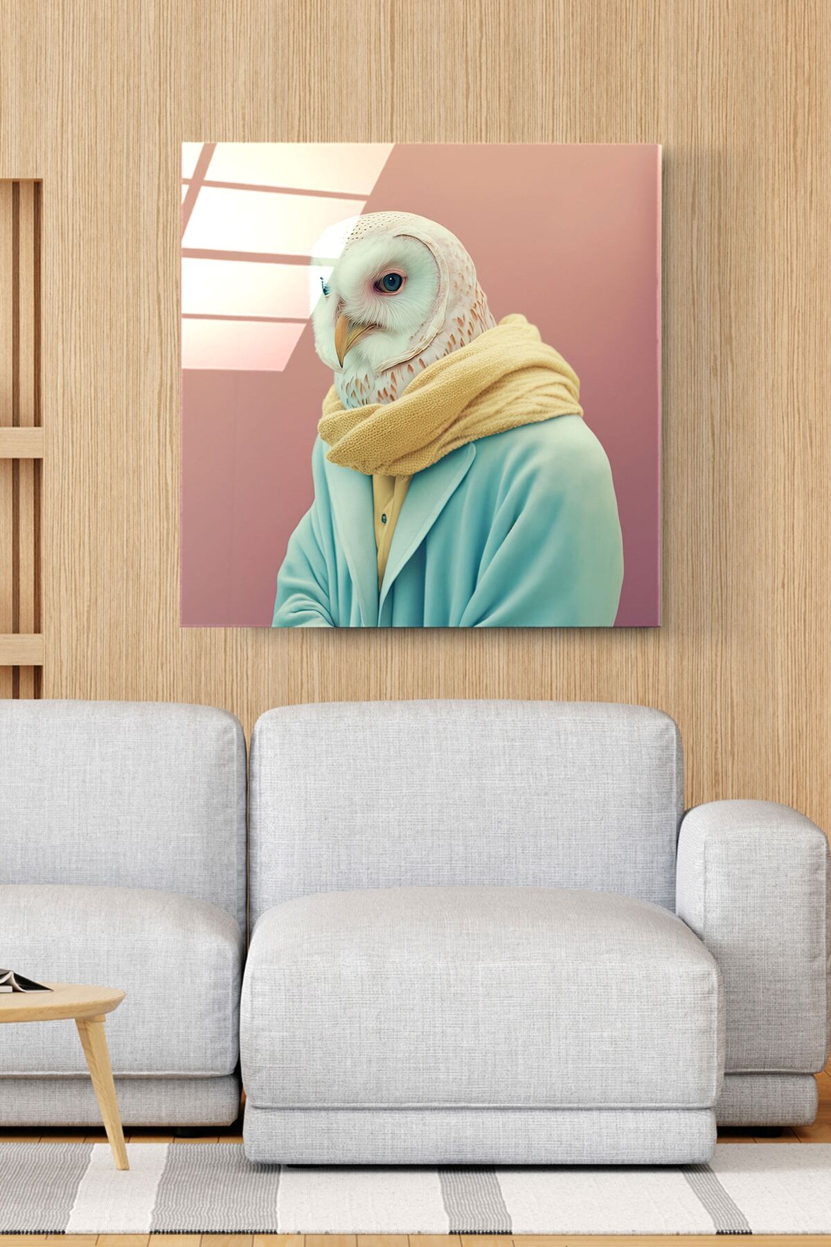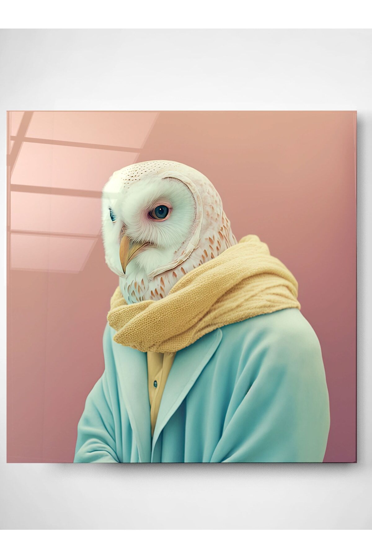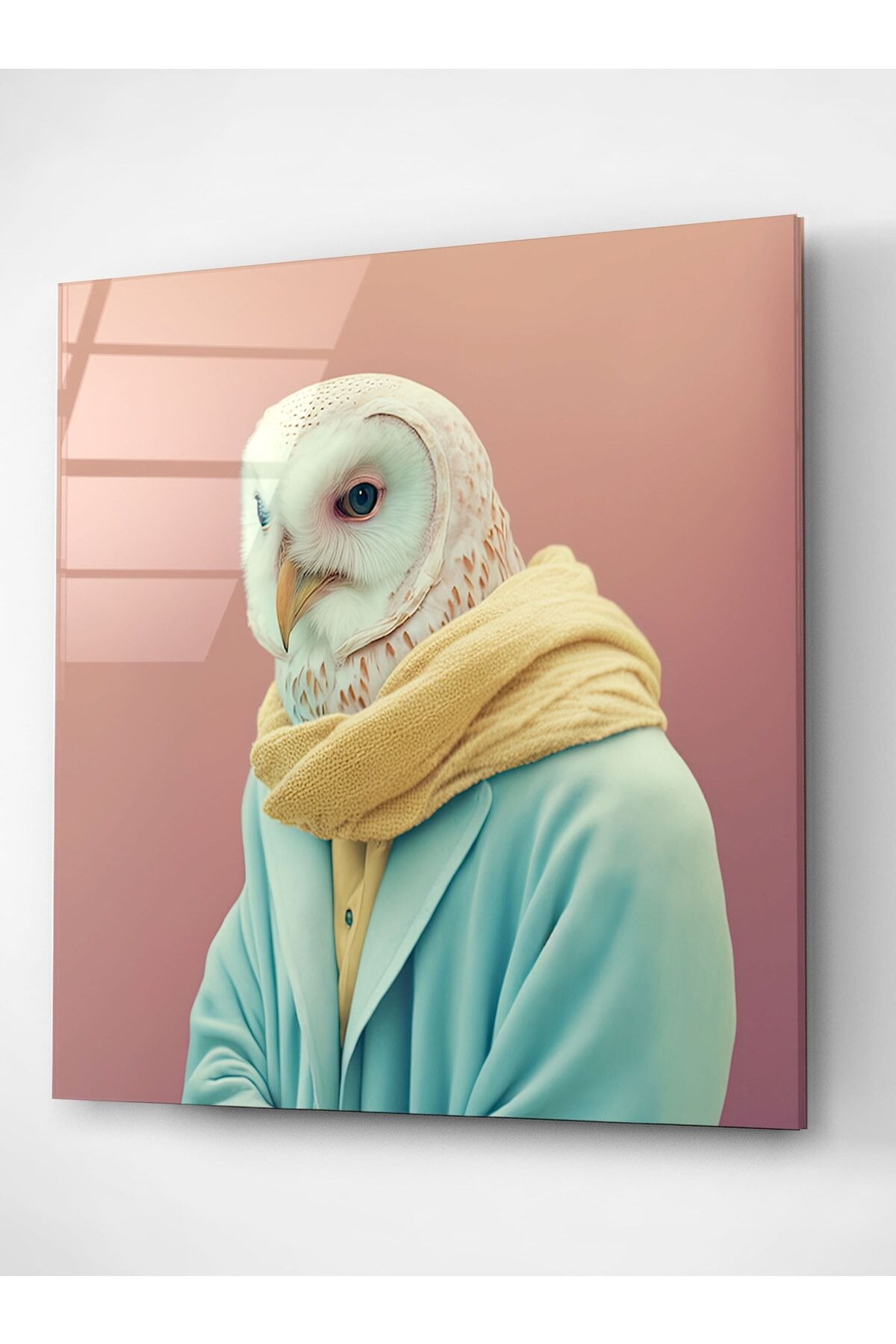 Baykuş Portre Cam Tablo, Dekoratif Cam Tablo