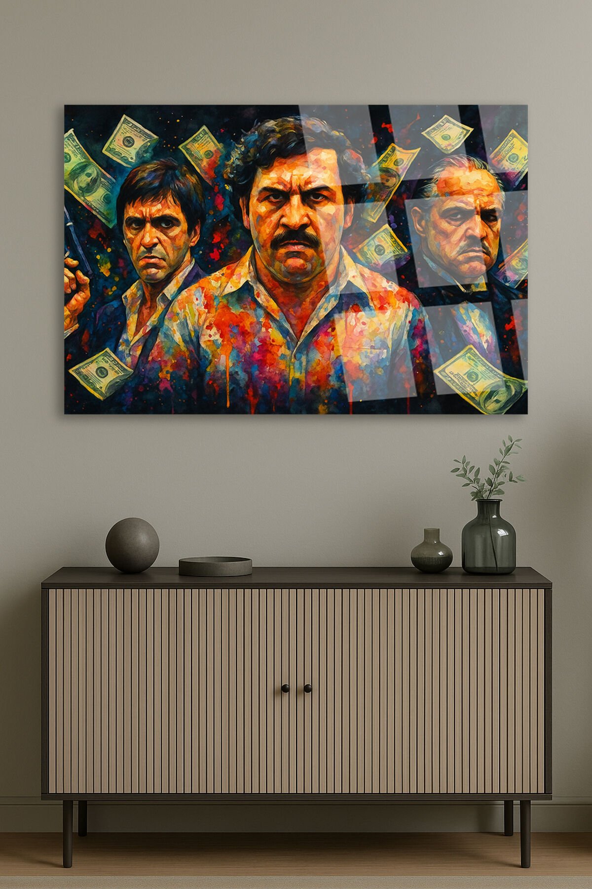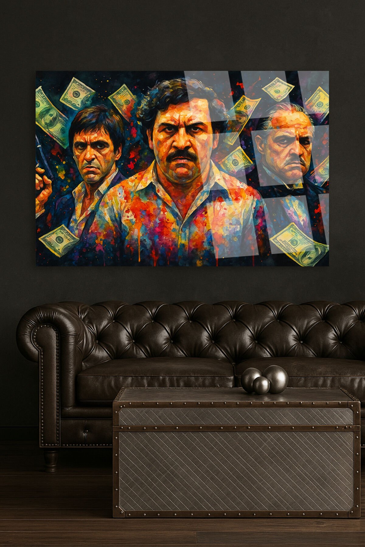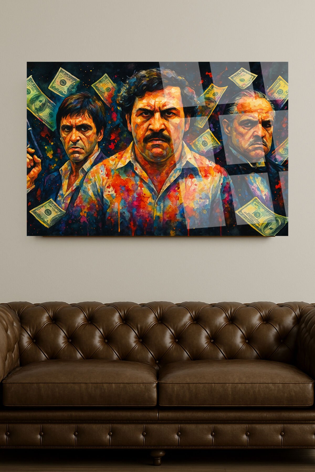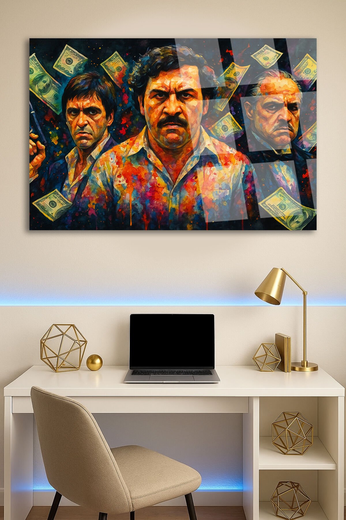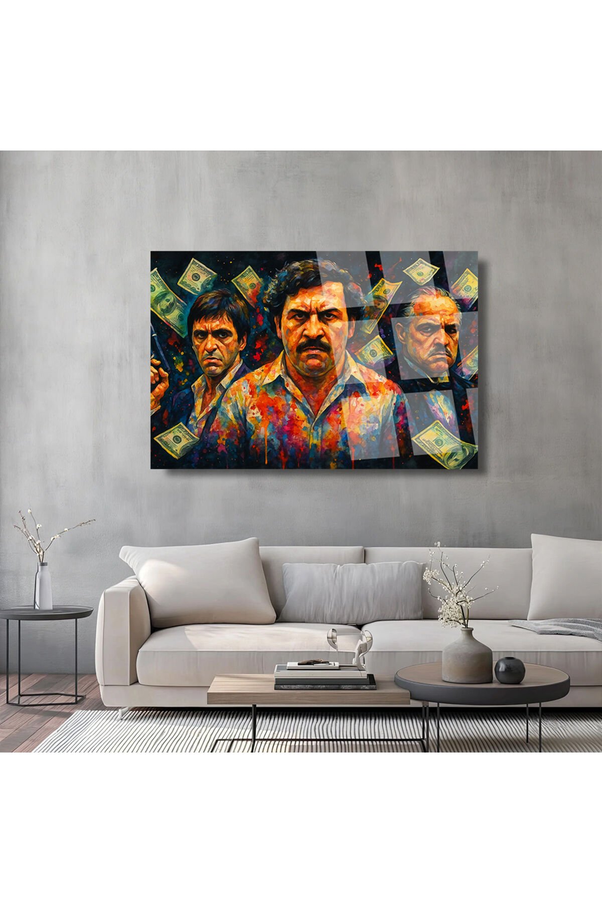 Benzersiz Tasarım Pablo Escobar, Al Pacino, Vito Corleone Kırılmaz Lüks Cam Tablo Benzersiz Hediye Lacivert