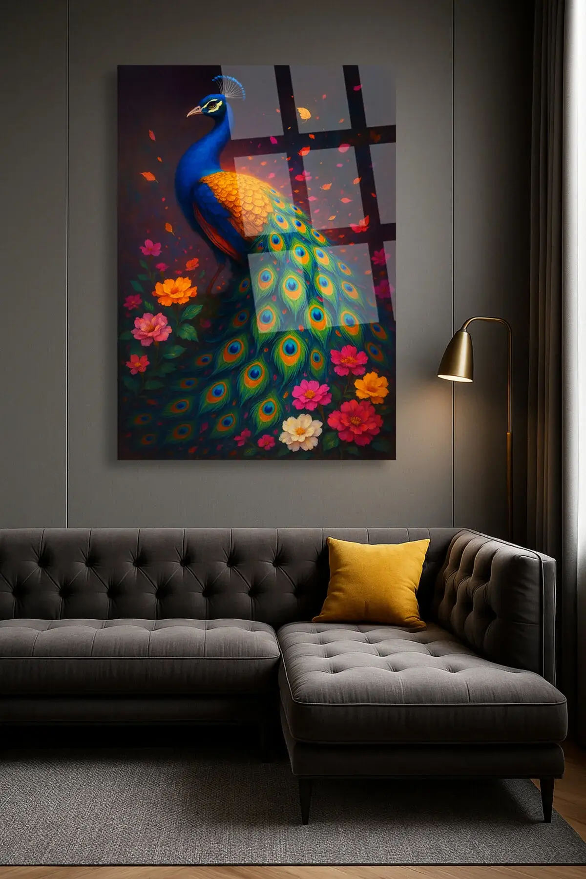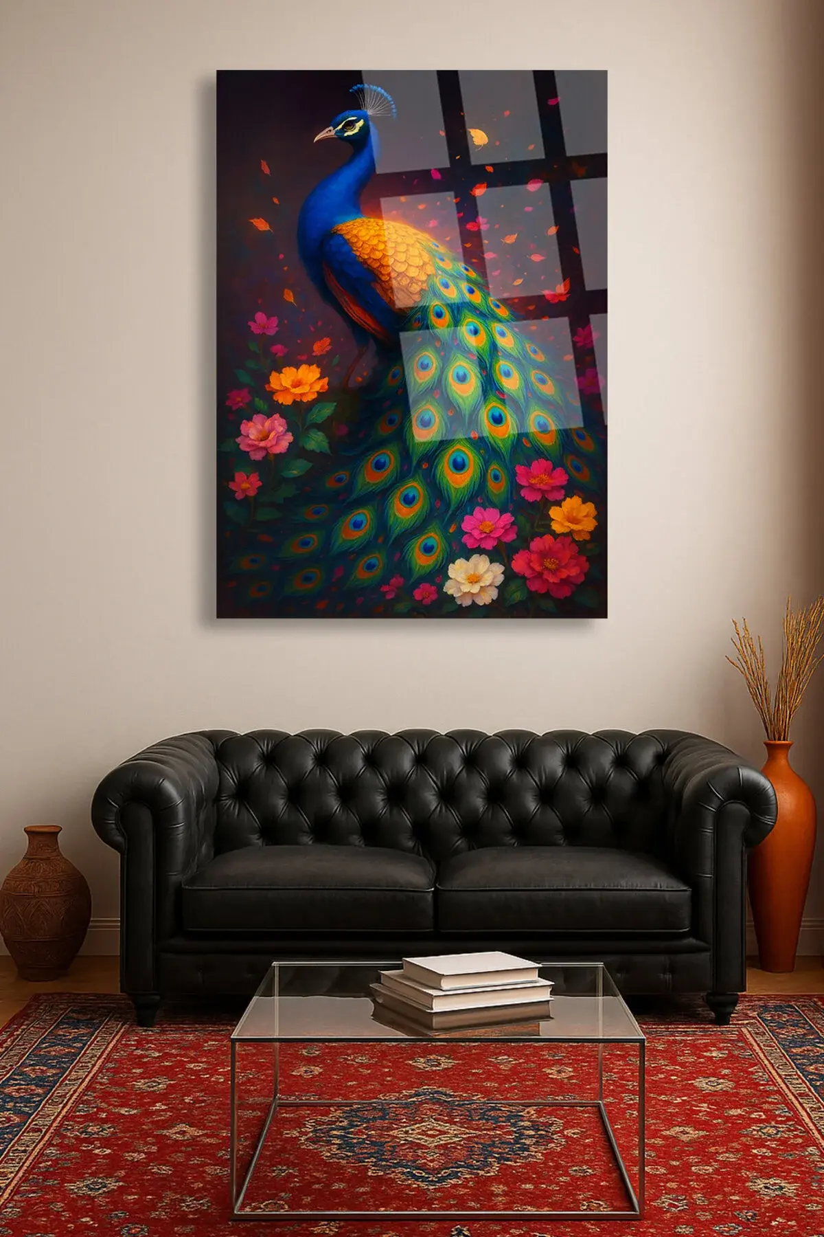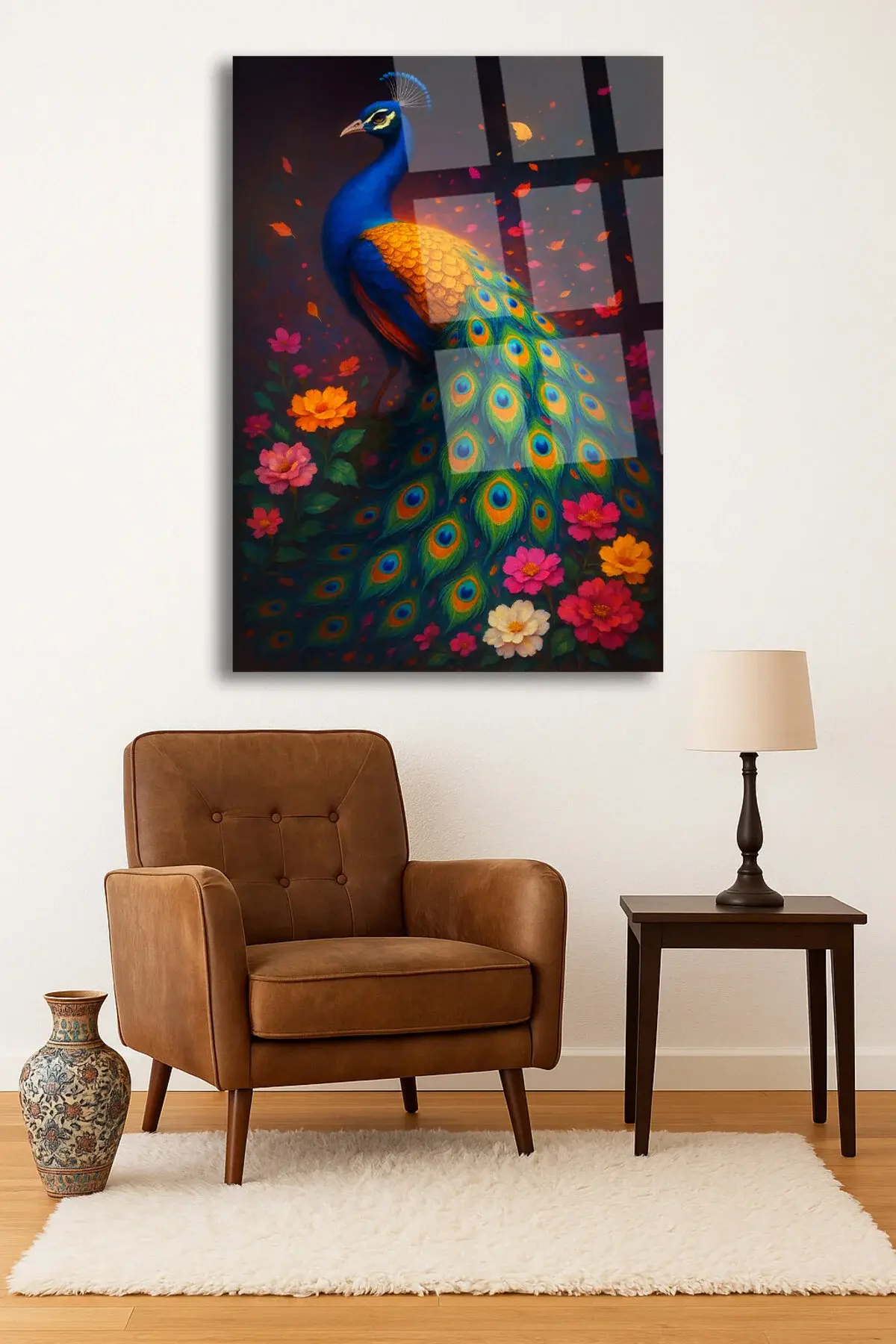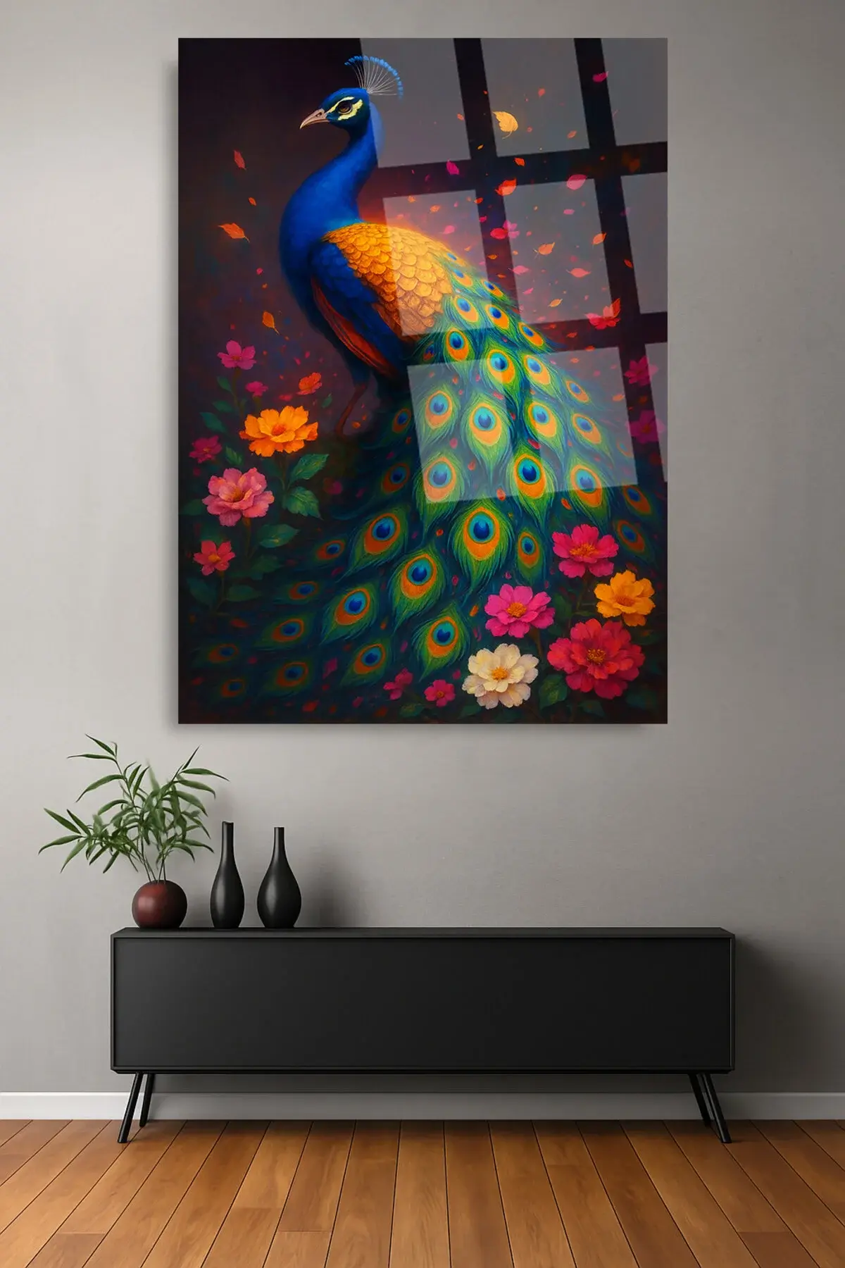 BENZERSİZ TAVUS KUŞU TASARIMI ULRTA CANLI RENKLER KIRILMAZ LÜKS MODERN CAM TABLO EV HEDİYESİ Çok Renkli