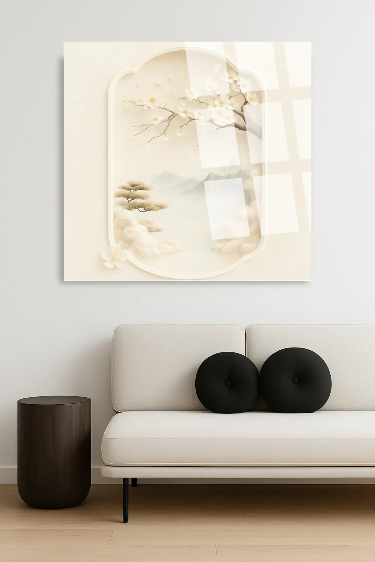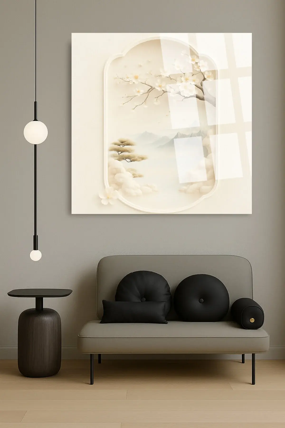 BEYAZ BASKIN RENK DOĞA MANZARASI CAM TABLO TASARIMI KIRILMAZ MODERN KARE CAM TABLO Beyaz