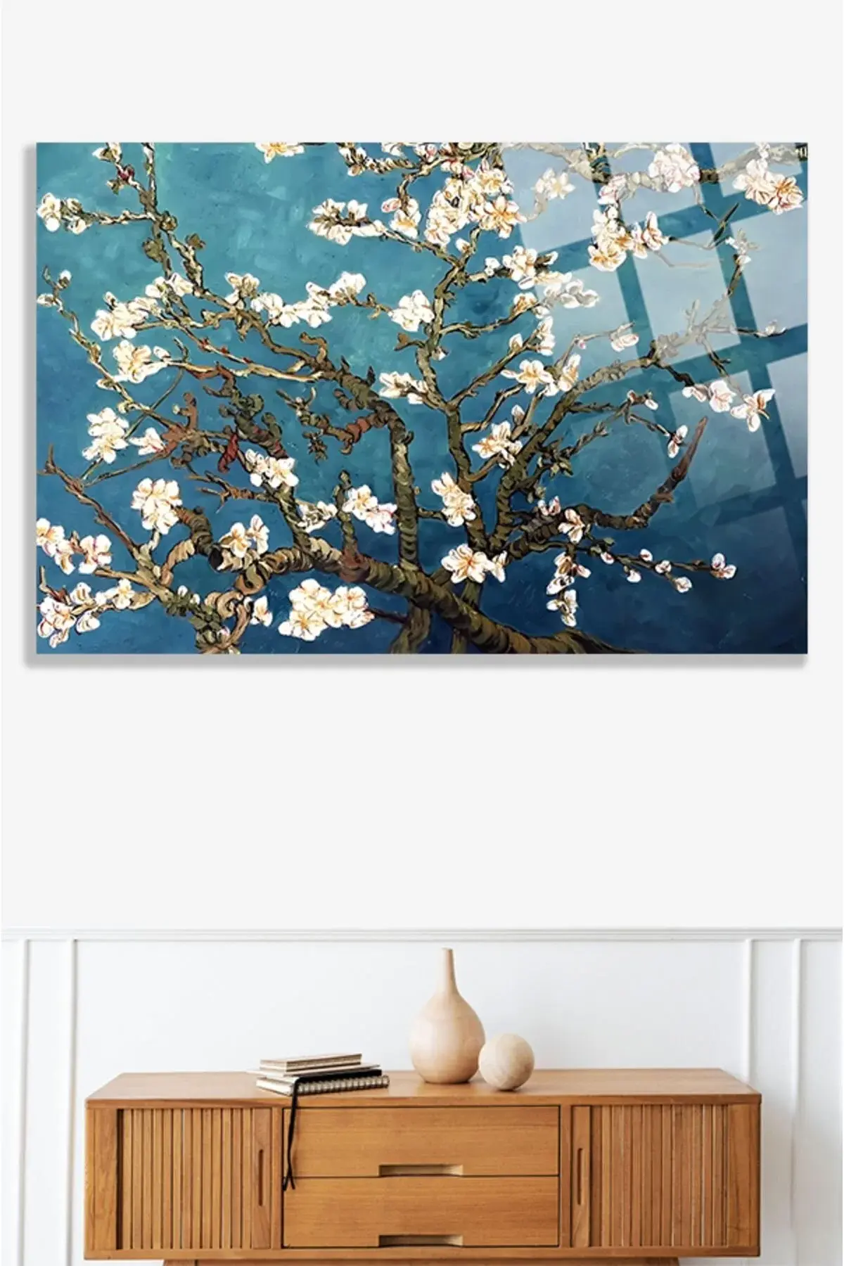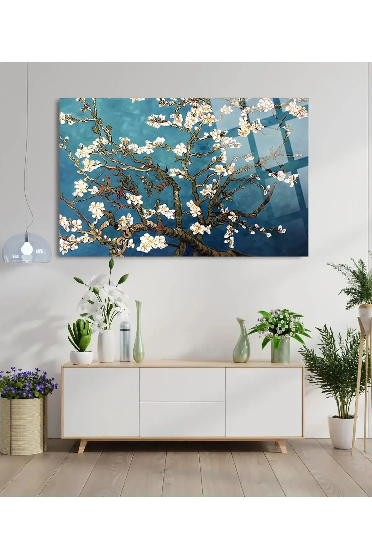 Beyaz Çiçekler Canlı Renkli Cam Tablo, Ev Ve Ofis Hediyesi Yüksek Çözünürlüklü 4mm Lüks Tablo