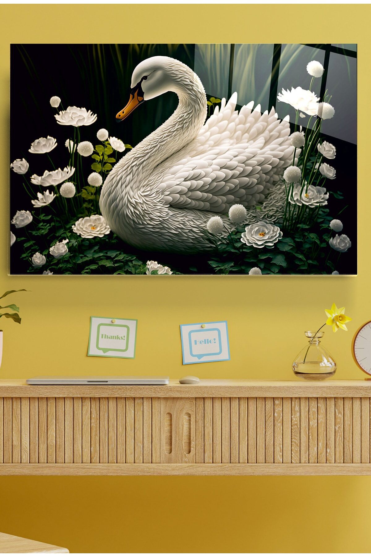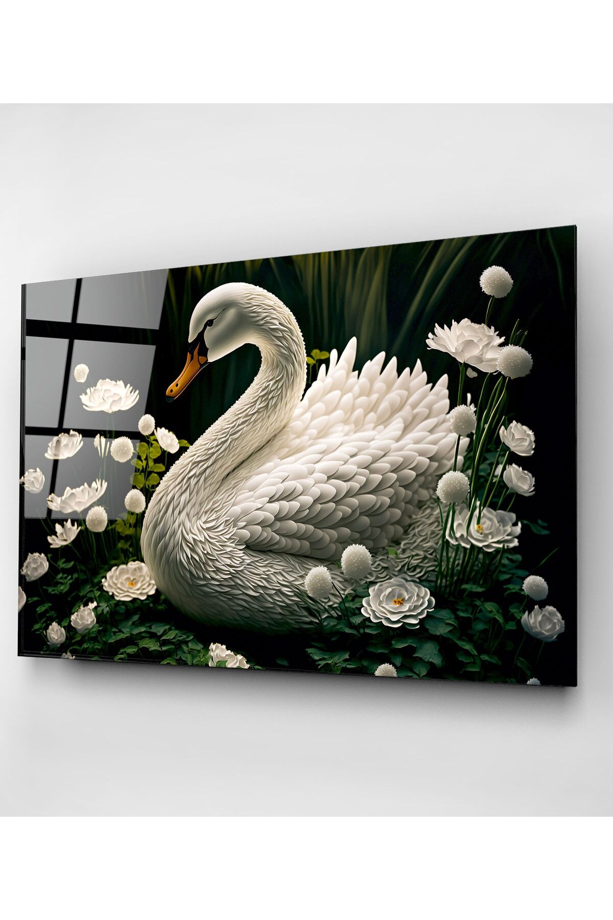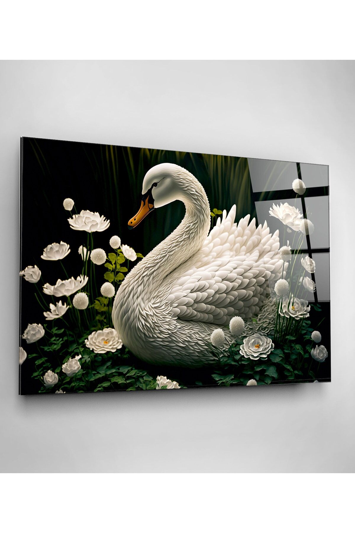 Beyaz Kuğu Cam Tablo, Dekoratif Tablo