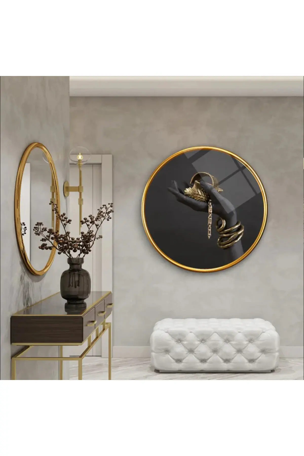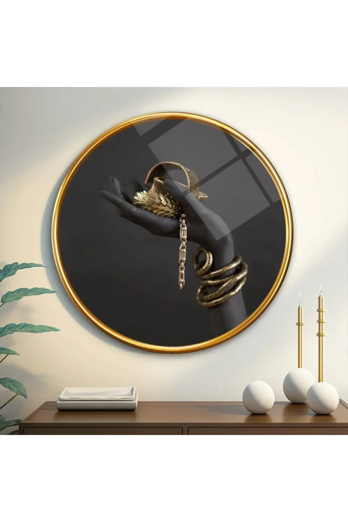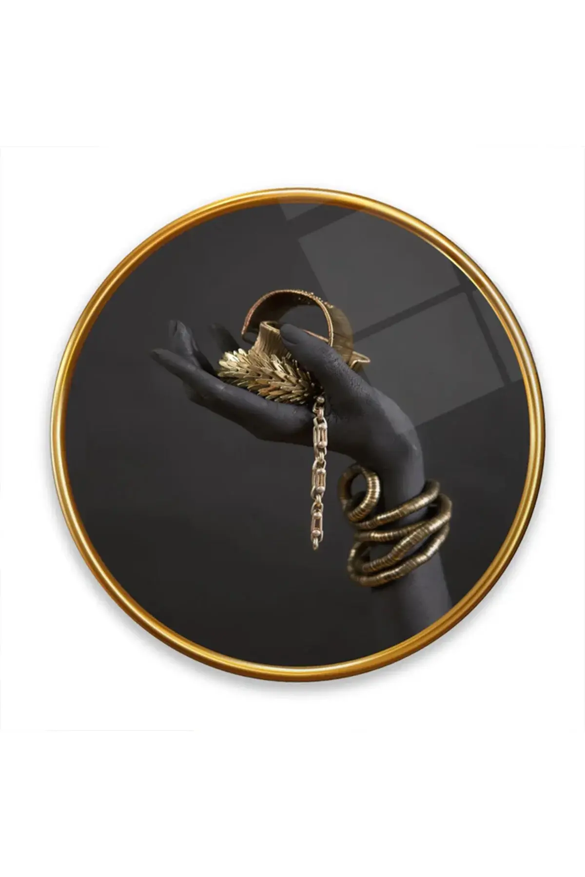 BİLEZİKLİ KOL TASARIMI YUVARLAK KIRILMAZ MODERN CAM TABLO EV HEDİYESİ LÜKS ODA TABLOSU Siyah