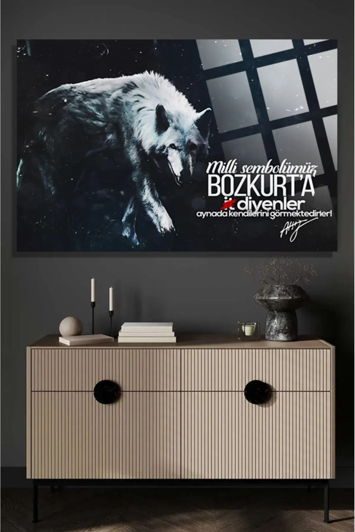 Bozkurt Türk Türkçülük Ülkücülük Lüks 4mm Kırılmaz Temperli Yüksek Çözünürlüklü Cam Tablo